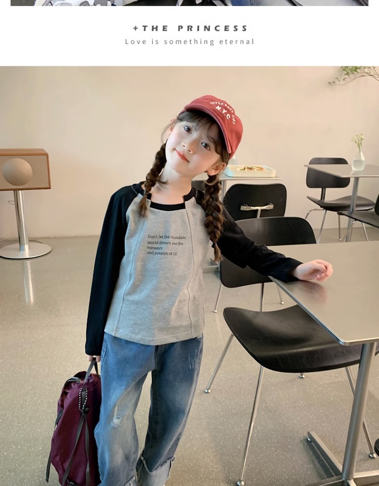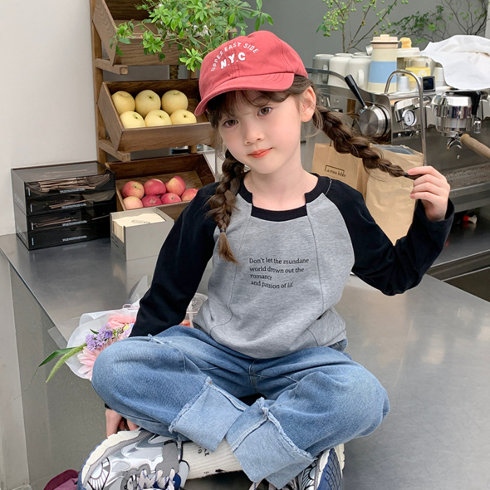소녀 티셔츠 긴 소매 봄과 가을 2025 새로운 어린이 가을베이스 셔츠 소녀의 세련된 가을 최고 트렌디스토어 가기