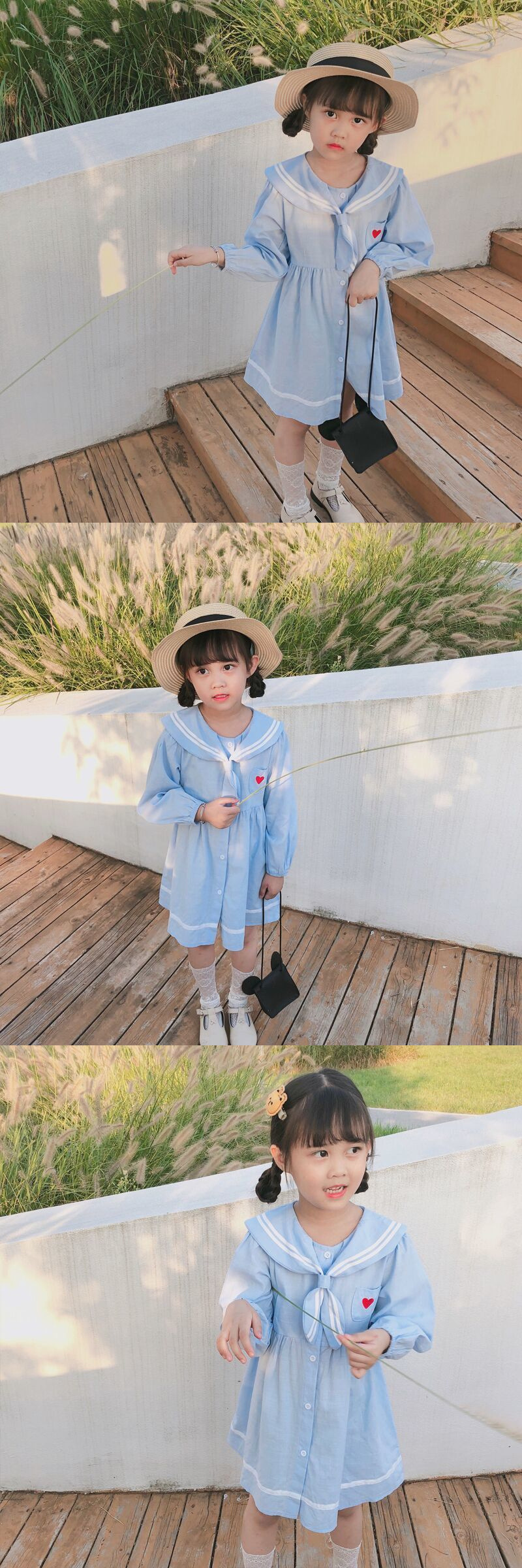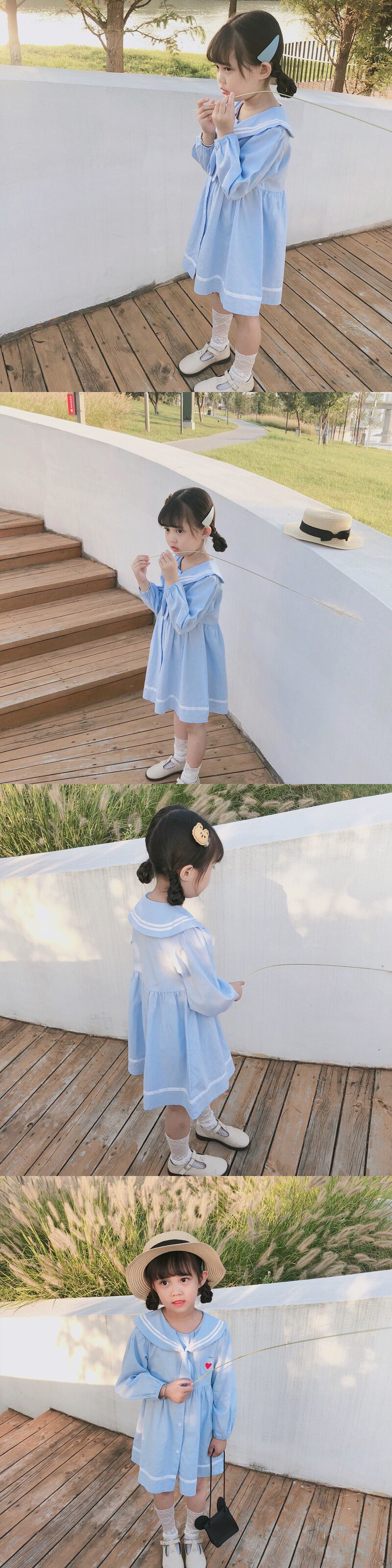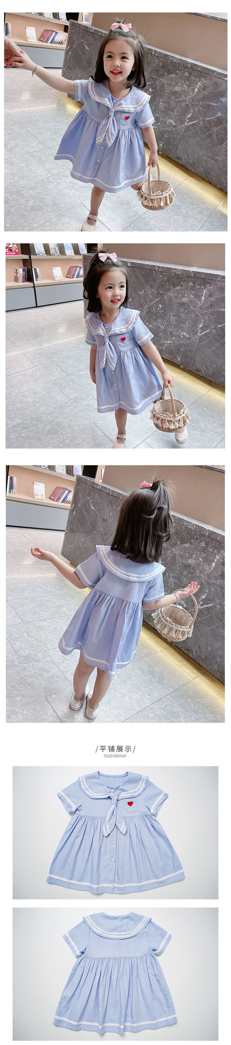 소녀의 2025 년 새 여름 원피스 소녀의 해군 스타일 스커트 소녀의 여름 한국 스타일 웨스턴 스타일 스커트스토어 가기