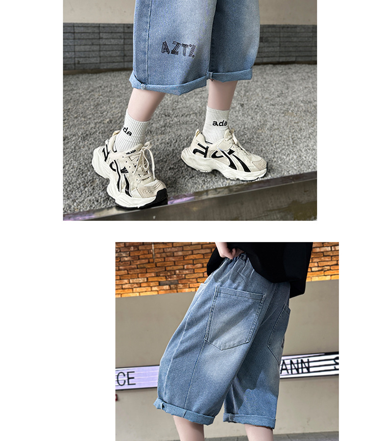 소년의 여름 데님 반바지 새로운 도착 중간 길이 바지 잘 생긴 아이들의 여름 캐주얼 트렌디 바지