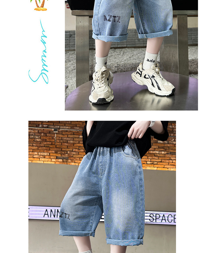 소년의 여름 데님 반바지 새로운 도착 중간 길이 바지 잘 생긴 아이들의 여름 캐주얼 트렌디 바지스토어 가기