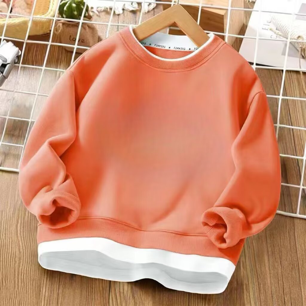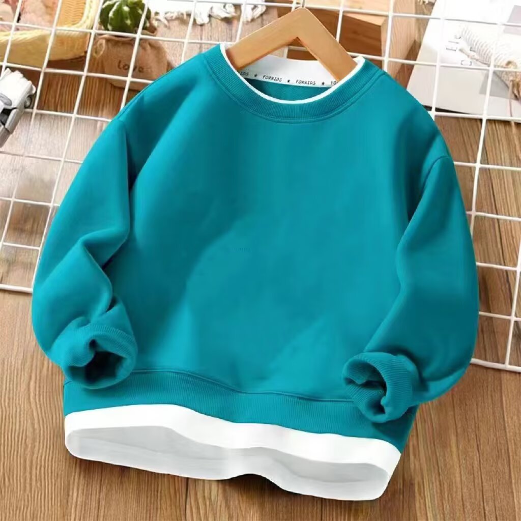 봄 매일 틈새 어린이 스웨터 2025 년 봄과 가을 새로운 스타일 큰 소년과 소녀는 어린이를위한 가짜 투피스 탑스토어 가기