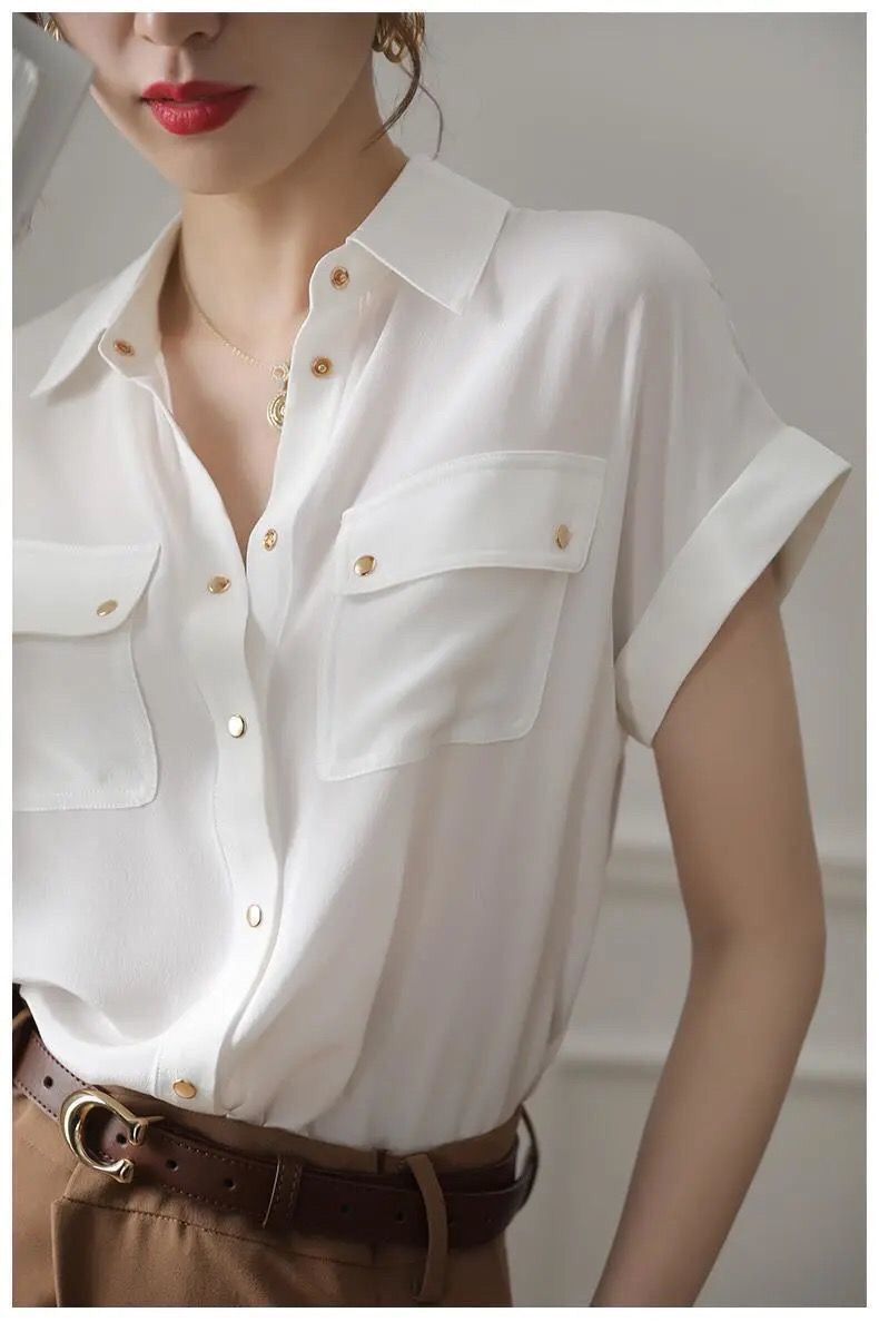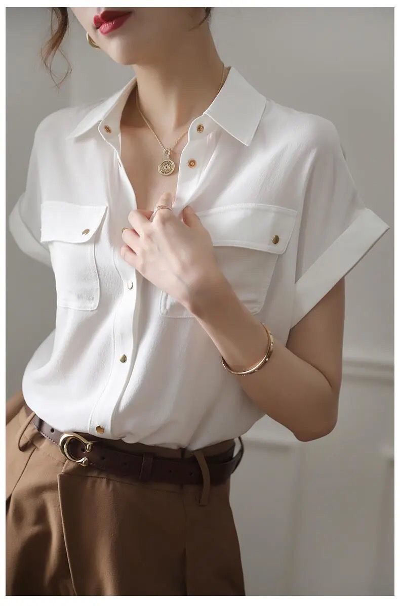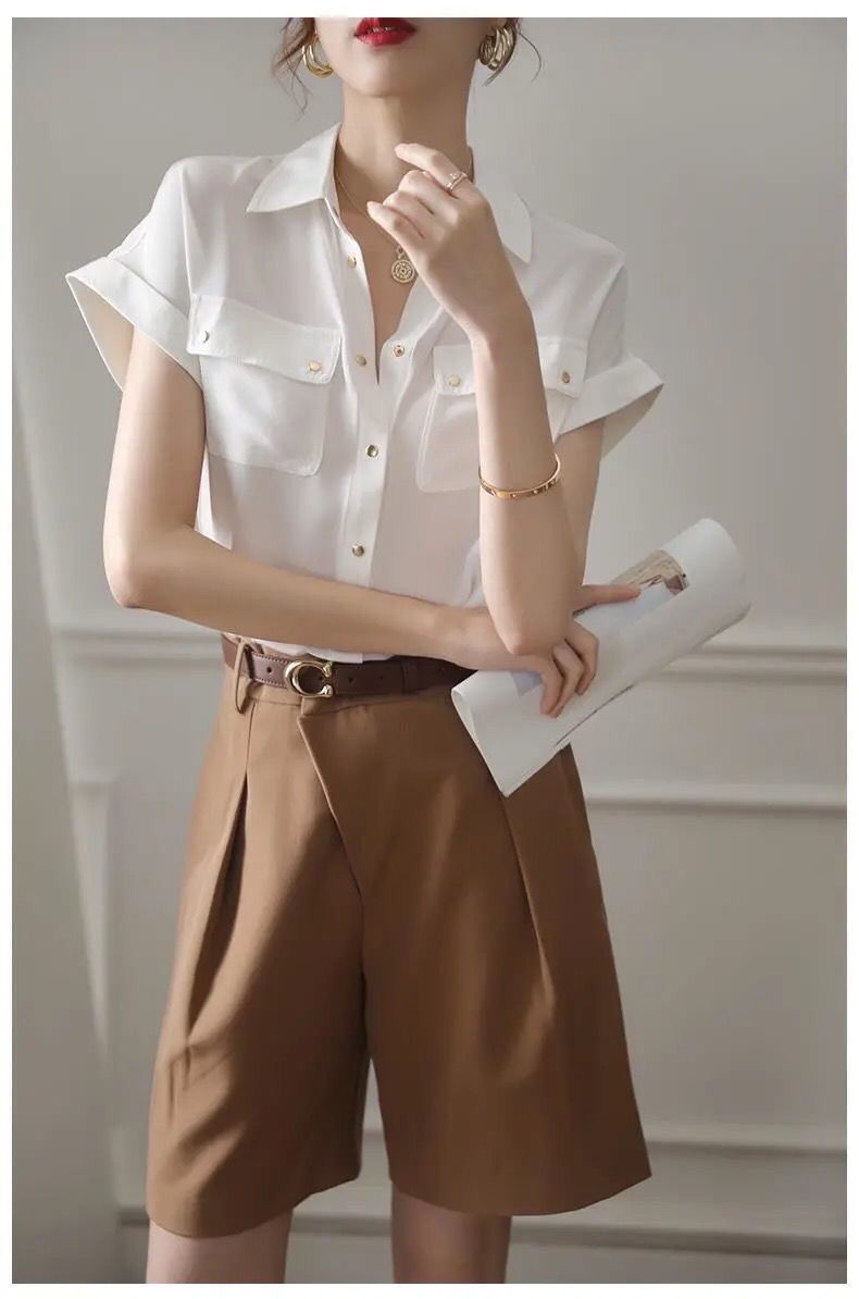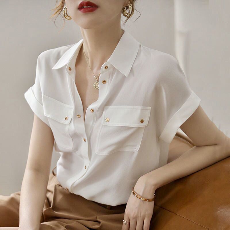 쉬폰 화이트 셔츠 여성의 여름 얇은 디자인 센스 2025 새로운 틈새 디자인 센스 우아한 한국 스타일 탑스토어 가기