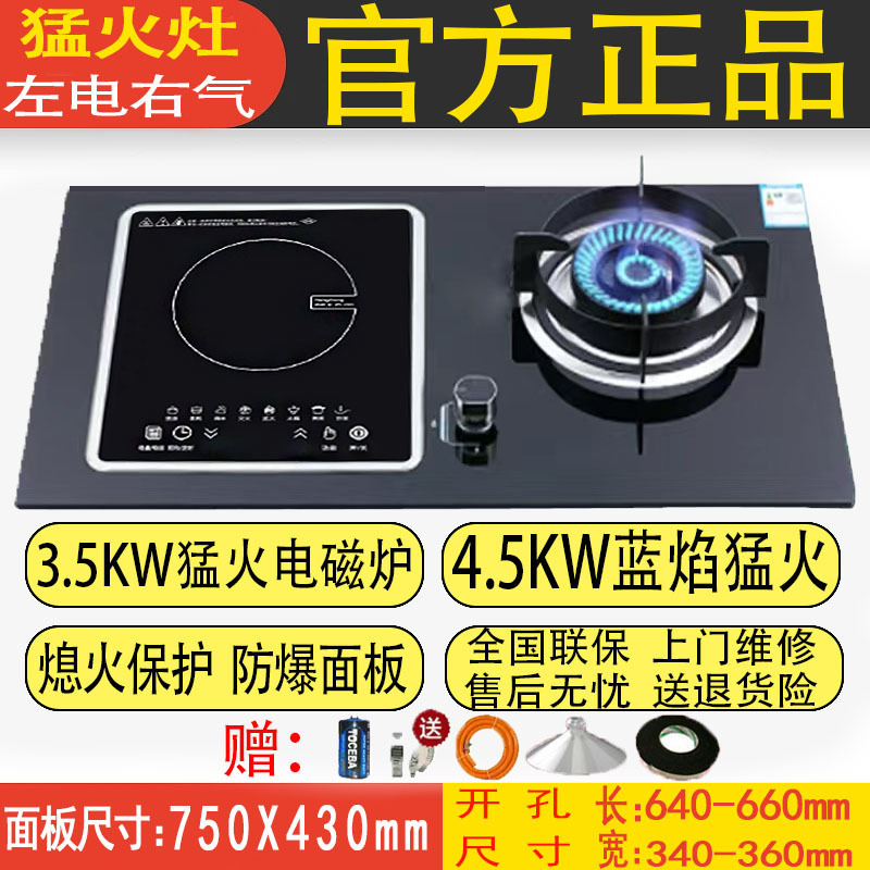 • [왼쪽 가스, 오른쪽 전기] + 9실 청색 화염 직접 분사 + 방풍 스토브 프레임 - 파이프 천연 가스