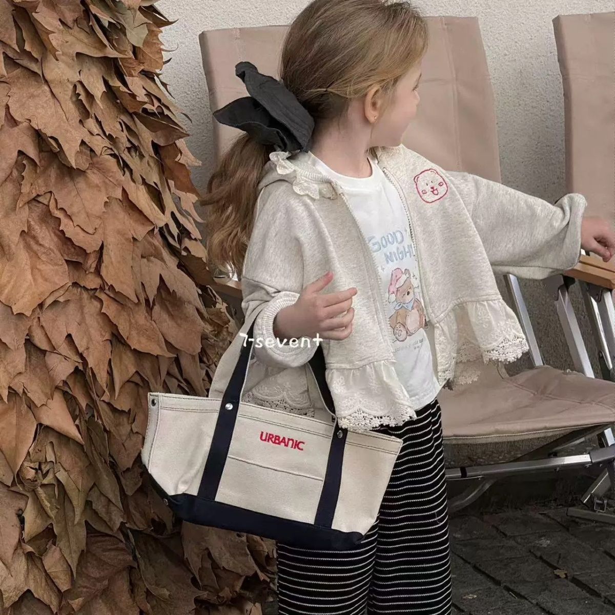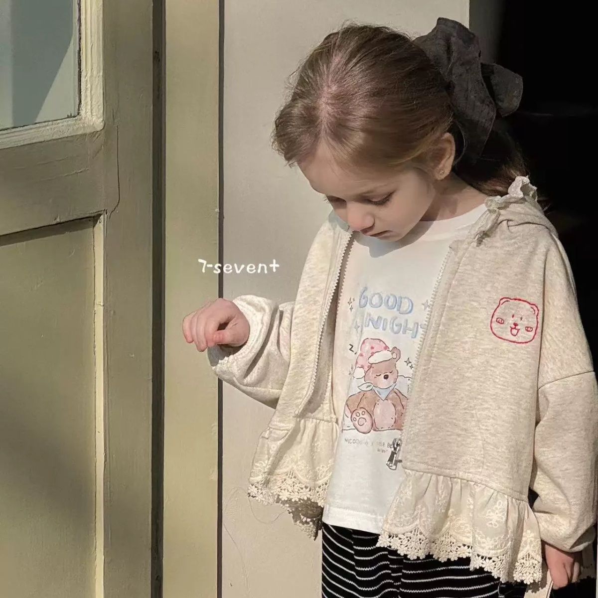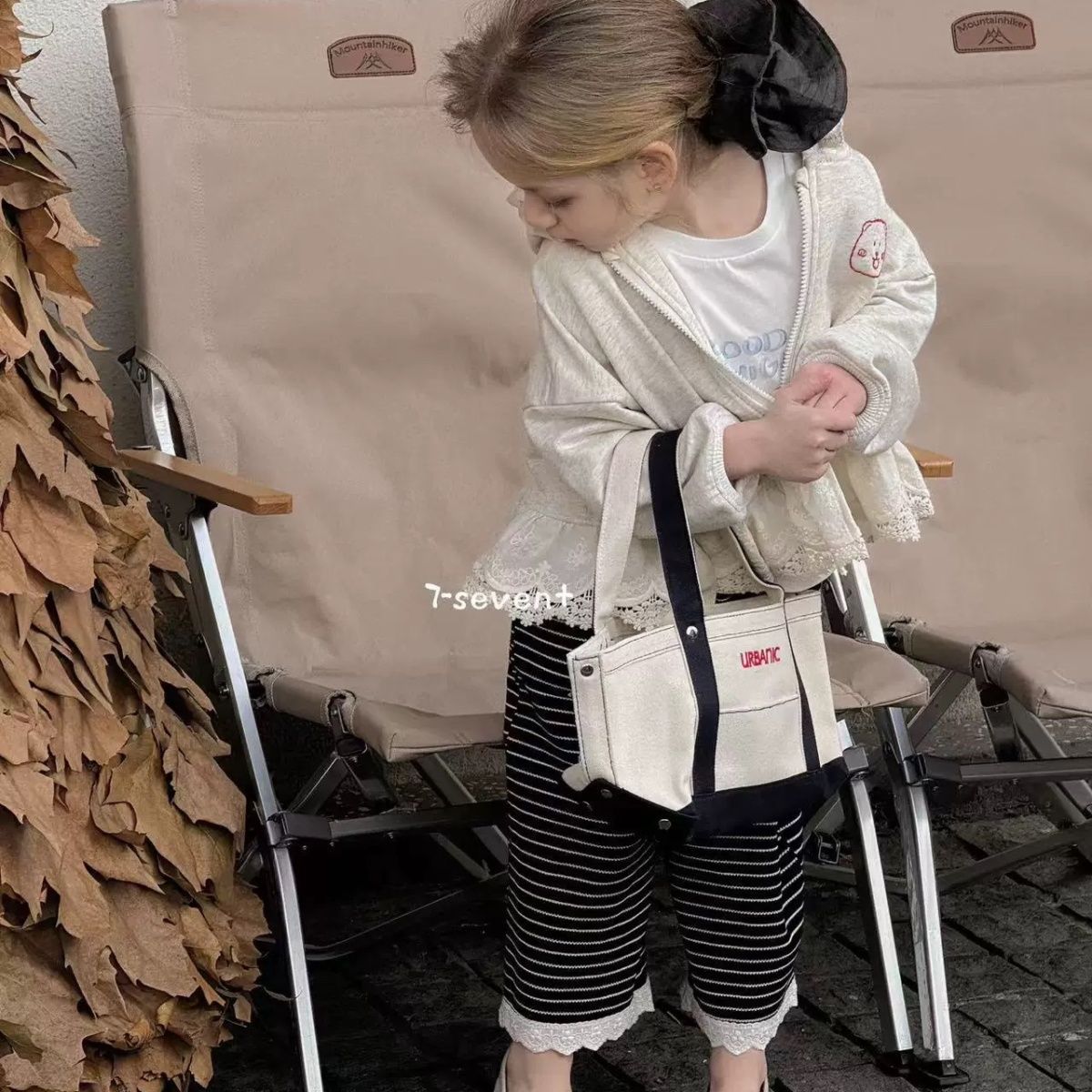 소녀 코트 봄 새 스타일 아기 소녀의 레이스 후드 스웨터 카디건 스트라이프 넓은 다리 바지 투피스 한국어스토어 가기