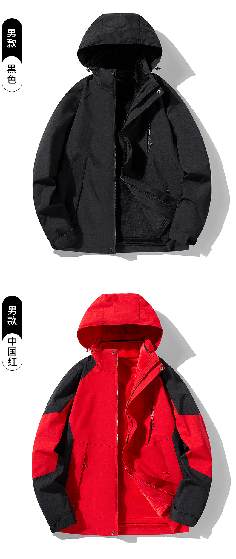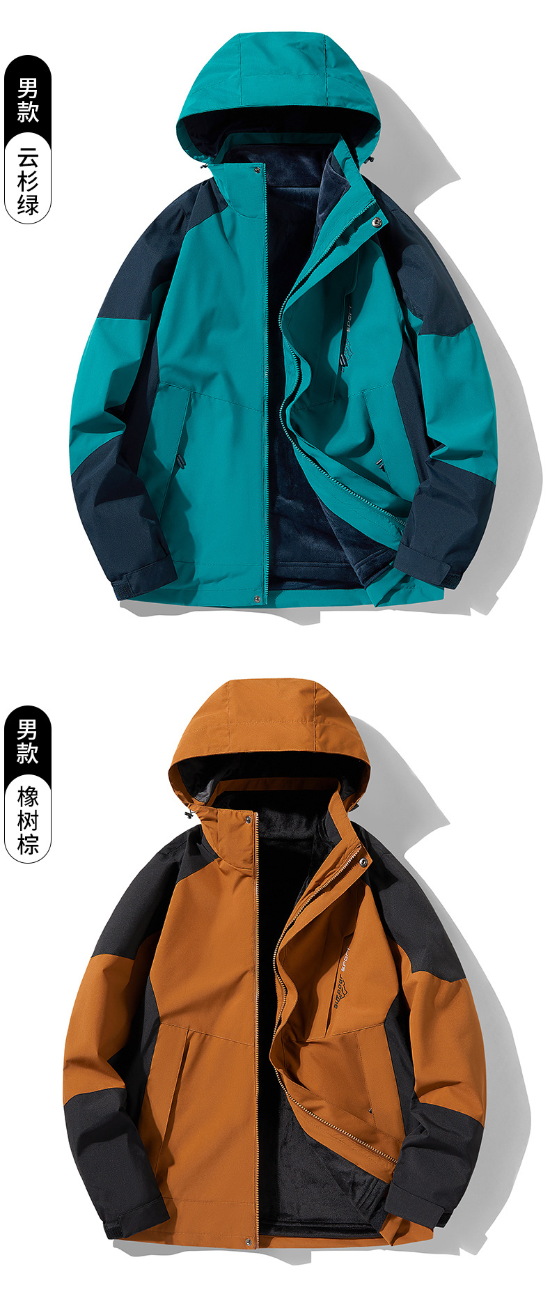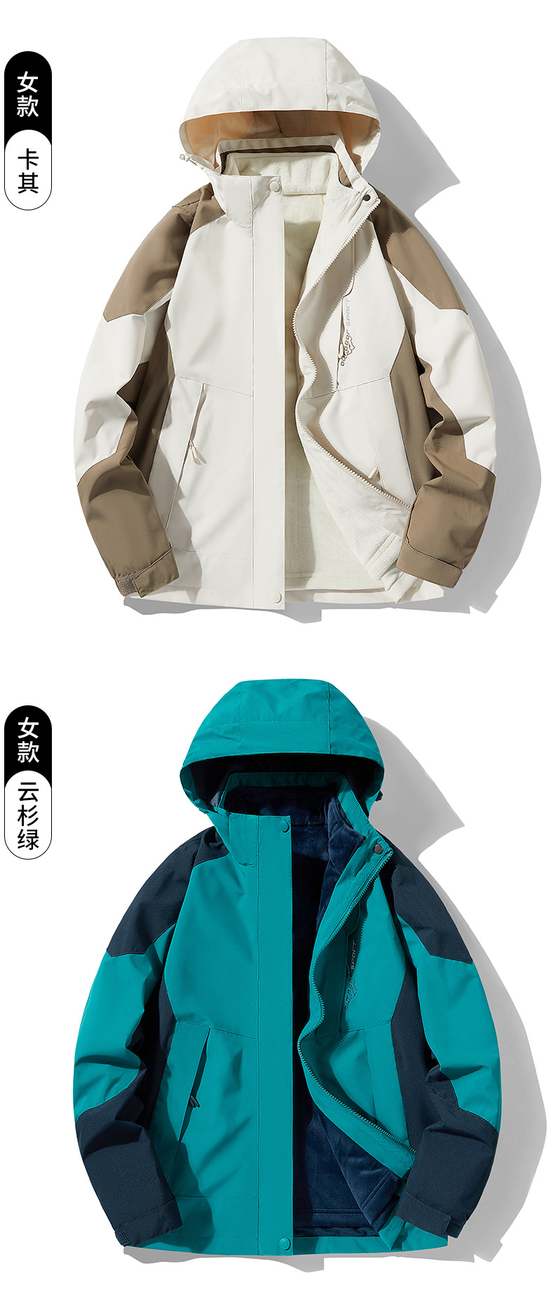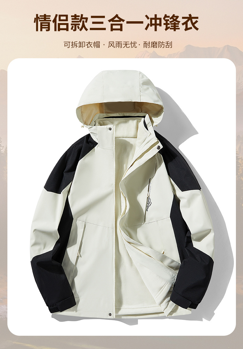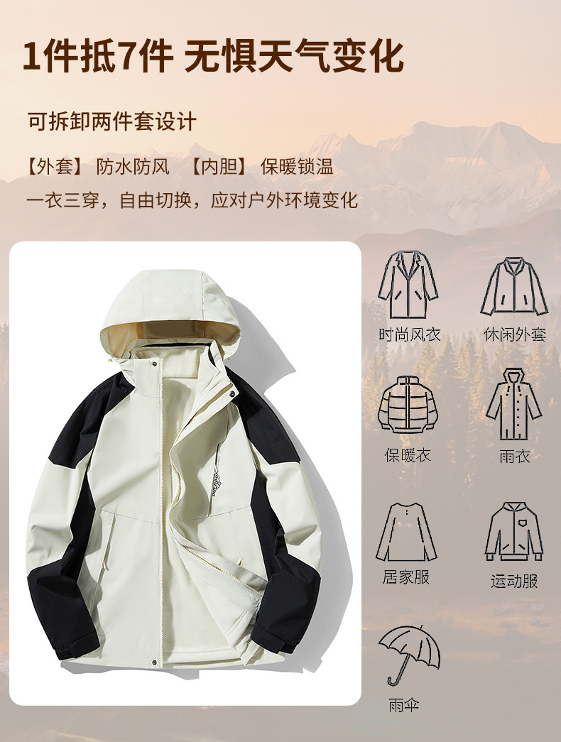 새로운 야외 패션 레저 스포츠 커플의 충전 의류 색상 매칭 이동식 캡 방수 방풍 3 대 1 재킷