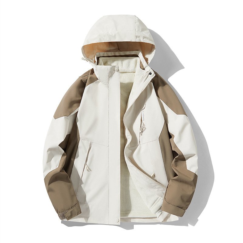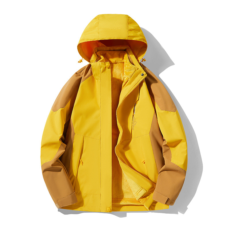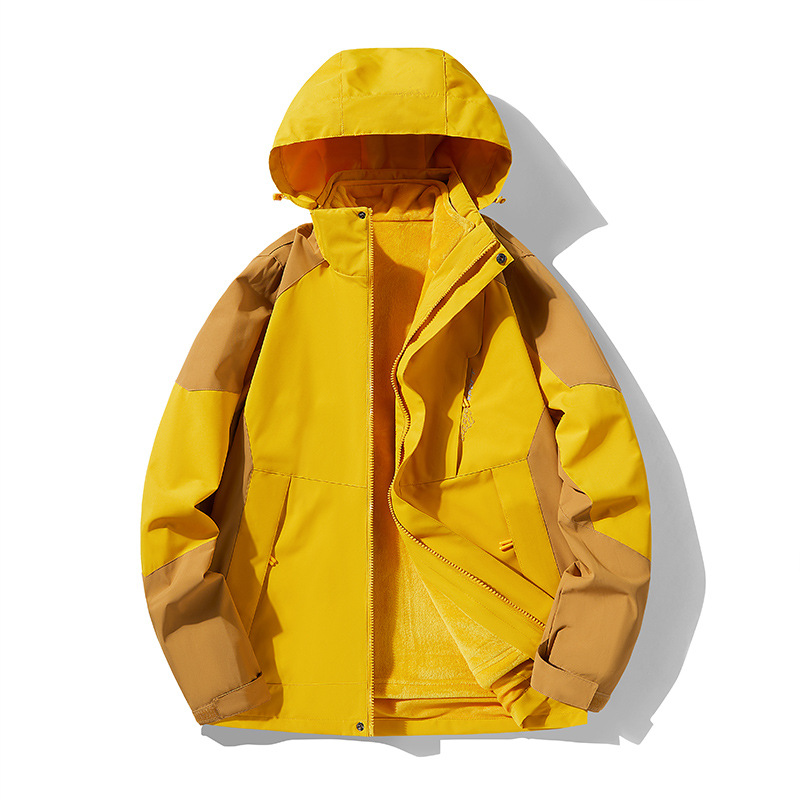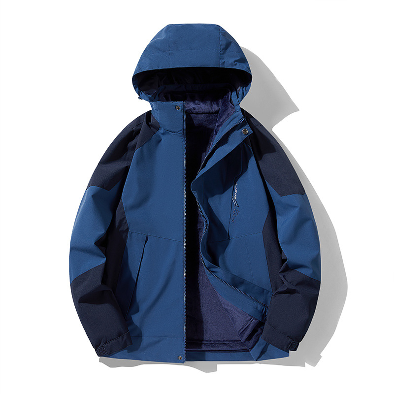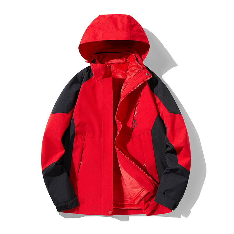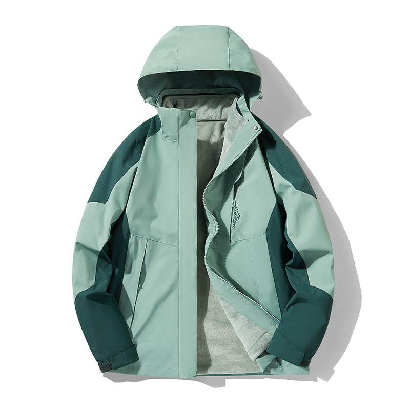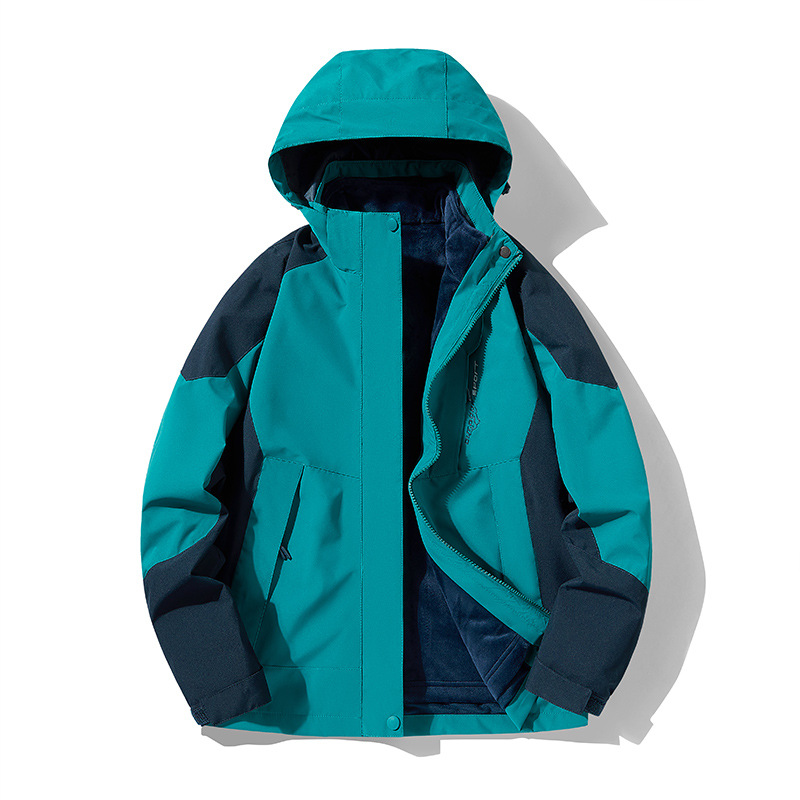 새로운 야외 패션 레저 스포츠 커플의 충전 의류 색상 매칭 이동식 캡 방수 방풍 3 대 1 재킷