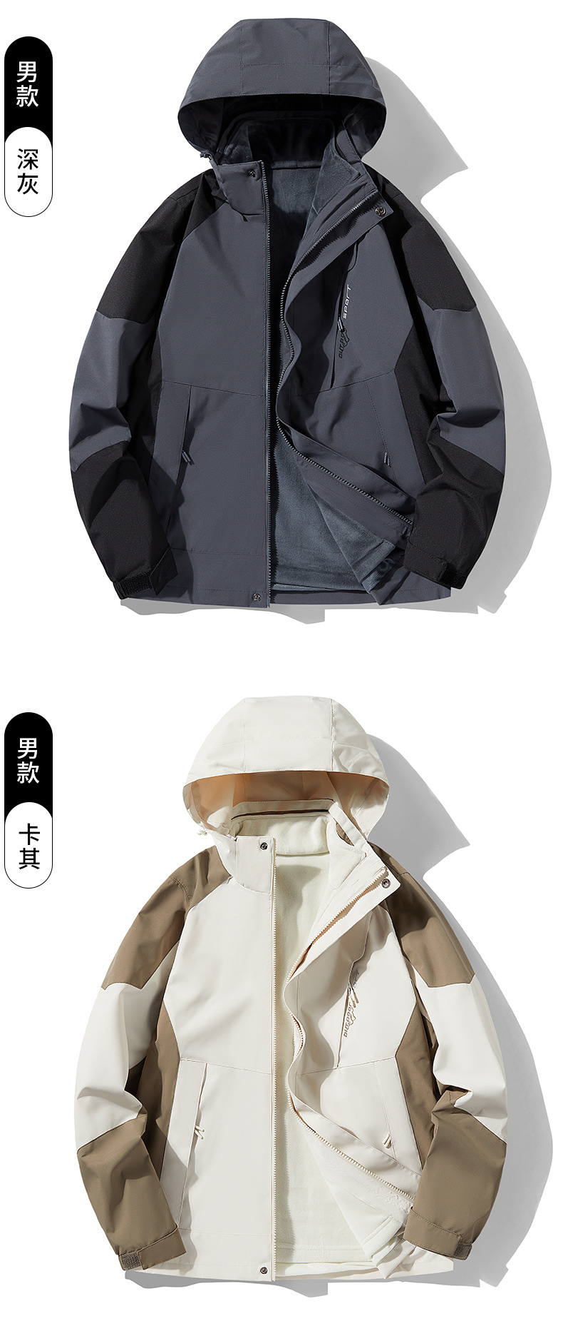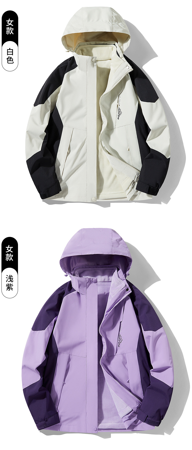 새로운 야외 패션 레저 스포츠 커플의 충전 의류 색상 매칭 이동식 캡 방수 방풍 3 대 1 재킷스토어 가기