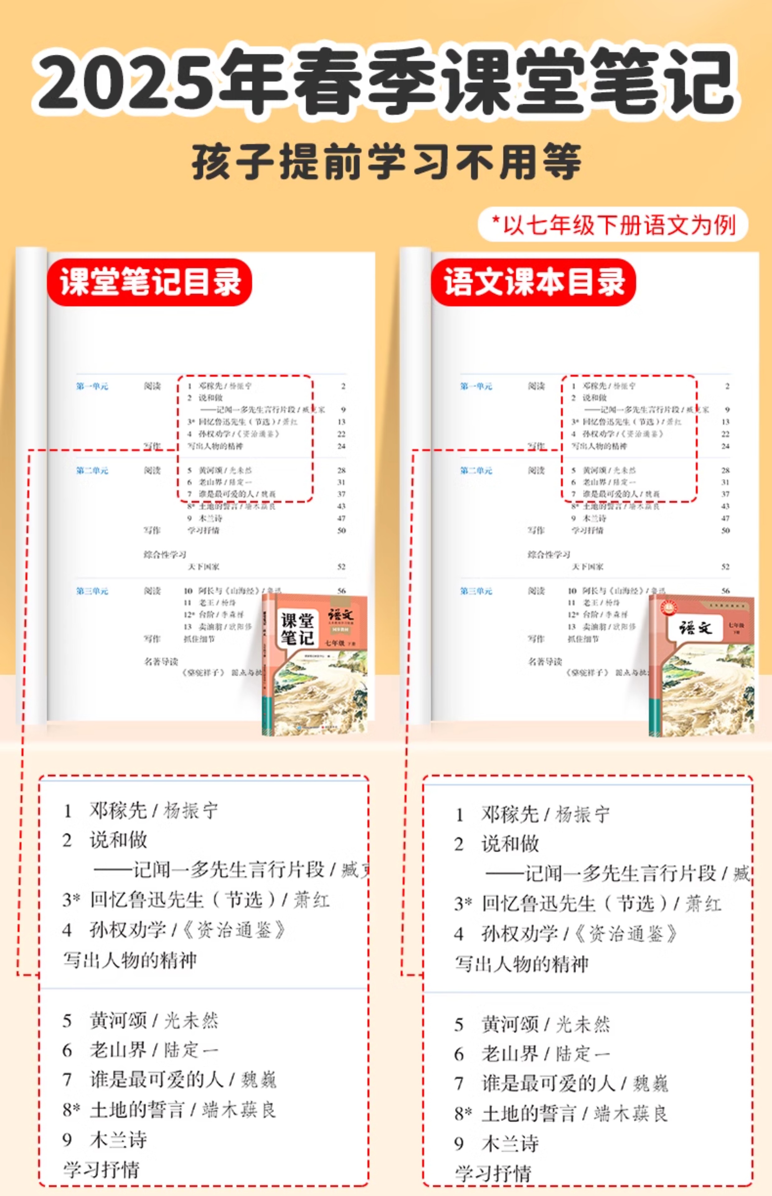 2025 New Edition 7 학년 2 등서 교실 노트 새로운 교과서 인민 교육 에디션 중학교 교과서 전체 설명 중학교에서 중학교 언어스토어 가기