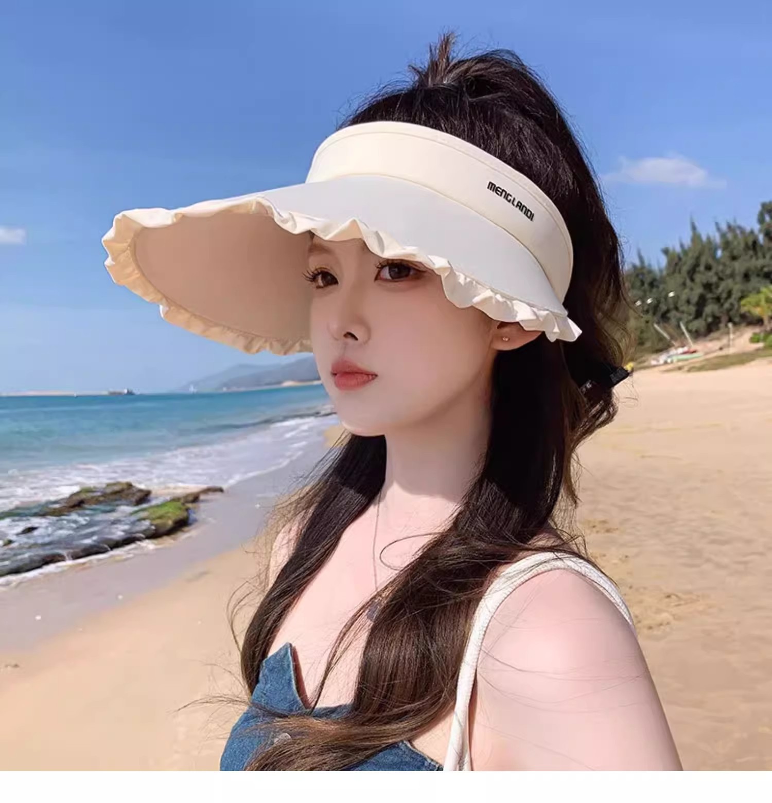 선스크린 모자 여성의 2025 새로운 여름 야외 아이스 실크 큰 Eave 통기성 헤어 후프 안티 자외선 차양 모자