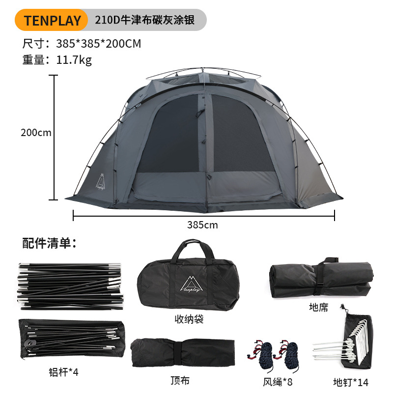 • 210D 비닐 텐트 + 달걀 껍질 캐노피 385*385*200CM