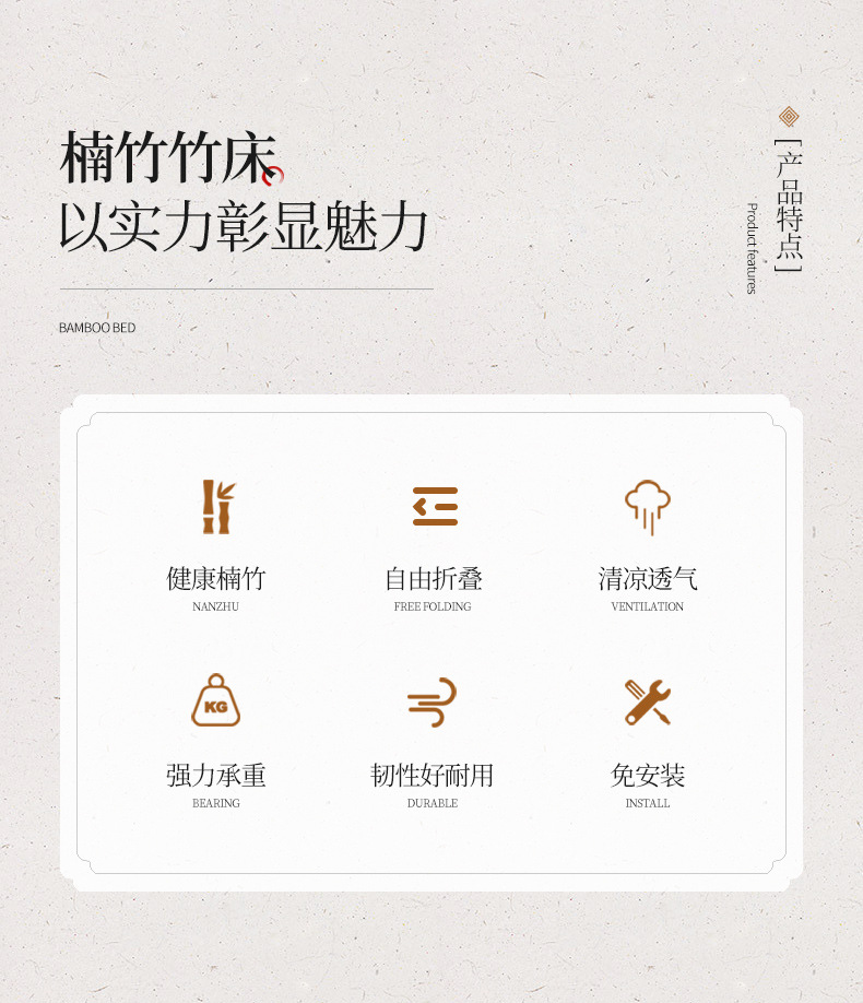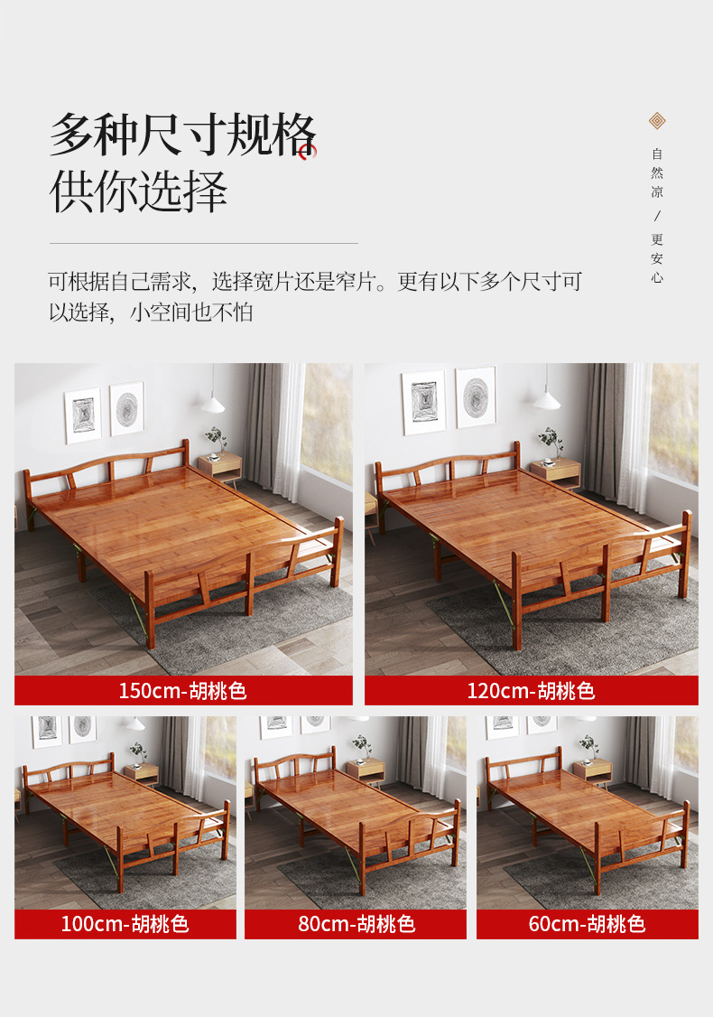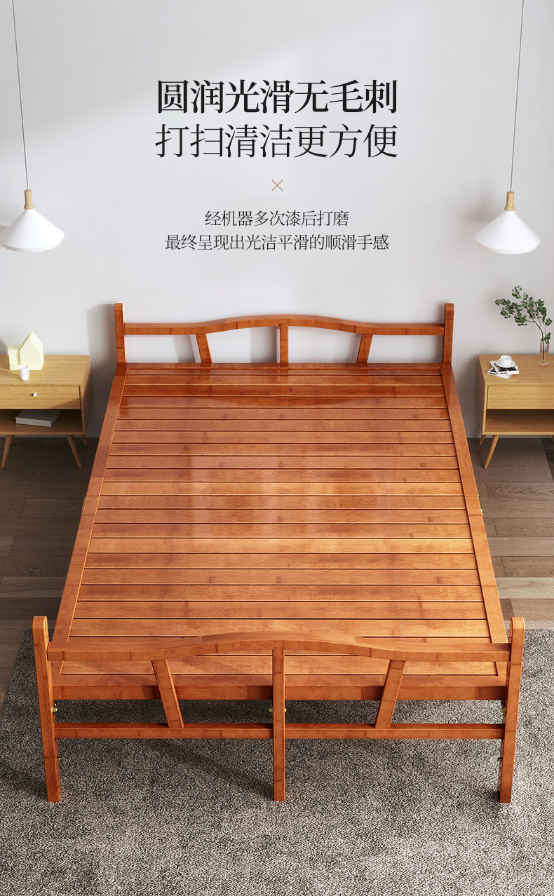 대나무 침대 접이식 침대 싱글 더블 렌탈 가구 간단한 침대 성인 점심 식사 작은 침대 대나무 단단한 나무 보드 차가운 침대