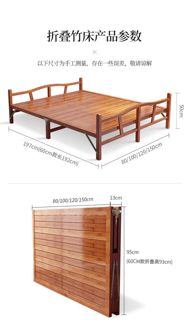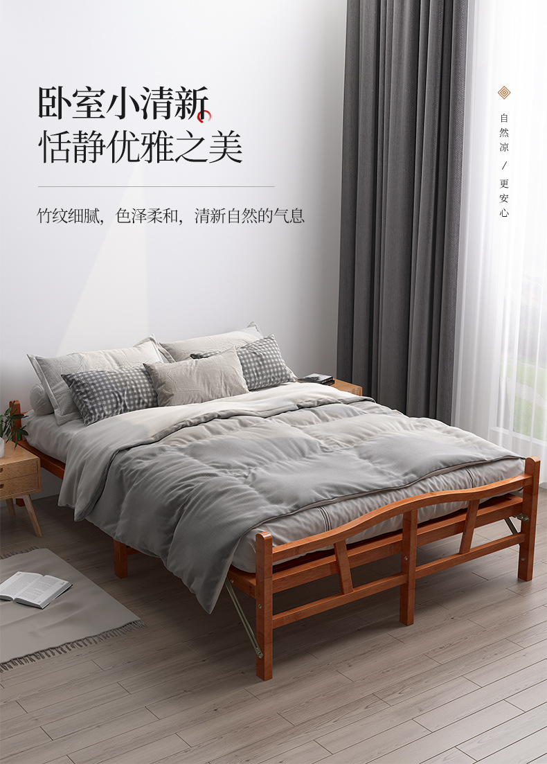대나무 침대 접이식 침대 싱글 더블 렌탈 가구 간단한 침대 성인 점심 식사 작은 침대 대나무 단단한 나무 보드 차가운 침대스토어 가기