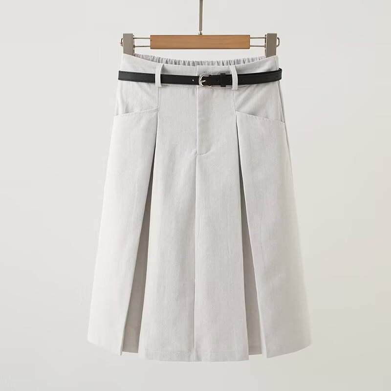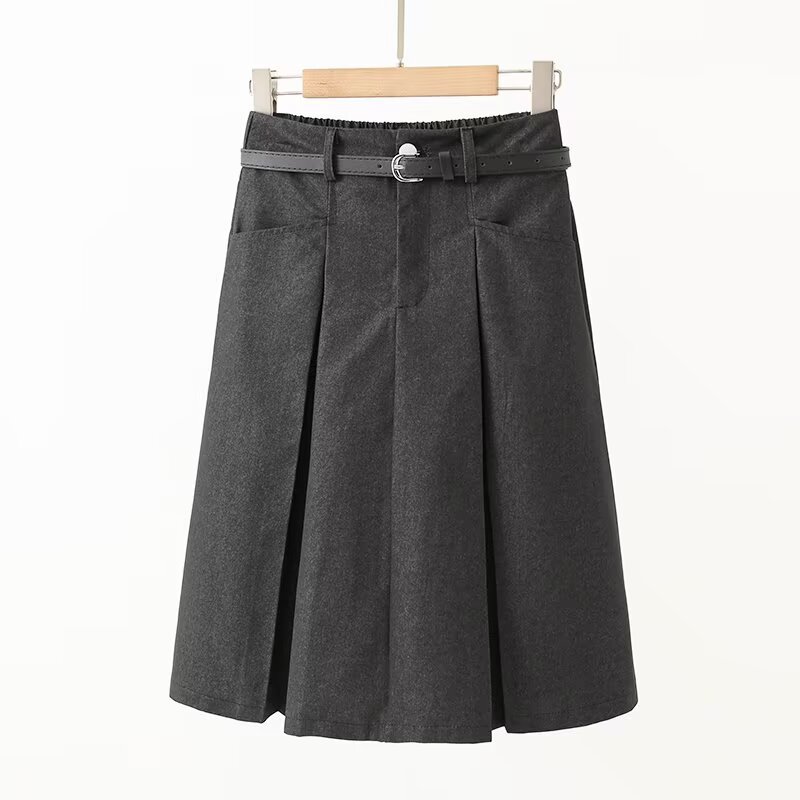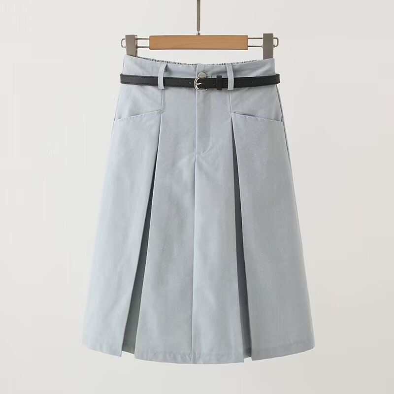 UC & ZA 국경 대외 무역 여성 2025 여름 새로운 패션 벨트 캐주얼 주름 중간 길이 스커트