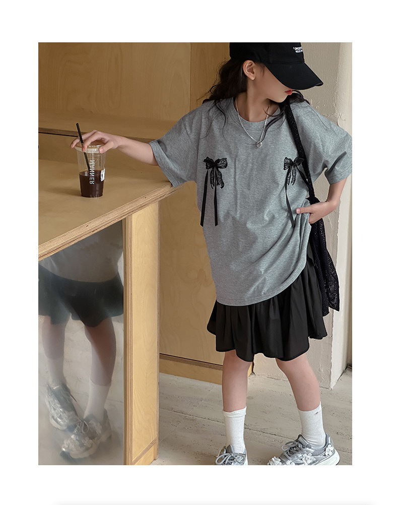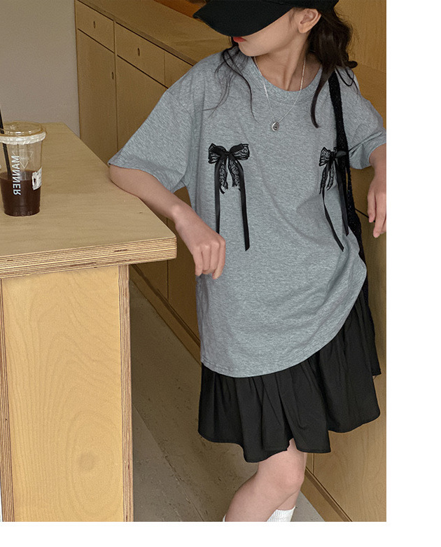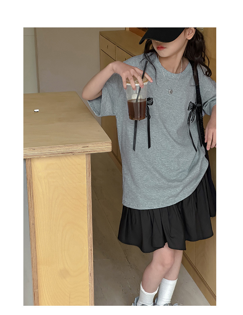 소녀 세트 여름 새로운 패션 캐주얼 짧은 소매 티셔츠 플리츠 오버 스커트 2 피스 세트스토어 가기