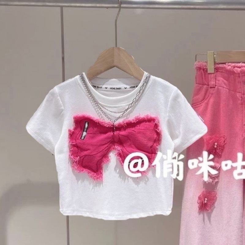 [18000 컬렉션] 여자 여름 세트 2025 폭발 어린이 반팔 찢어진 청바지 투피스 세트스토어 가기