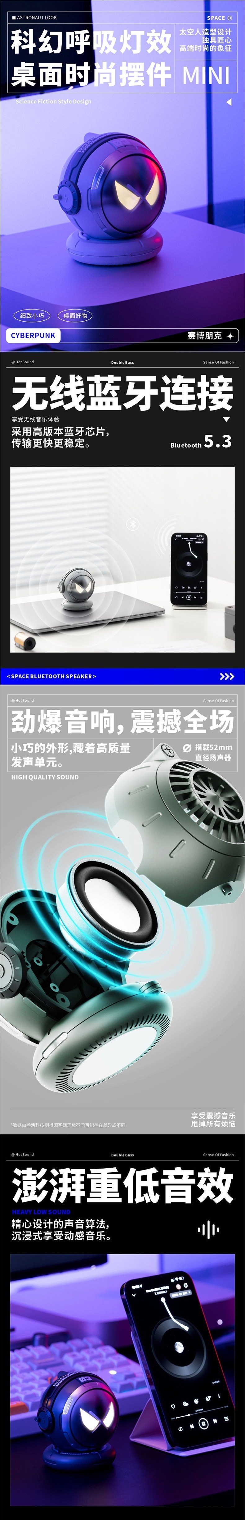 우주 비행사 블루투스 스피커 미니 휴대용 서브 우퍼 무선 충전식 소형 스피커 소년을위한 생일 선물