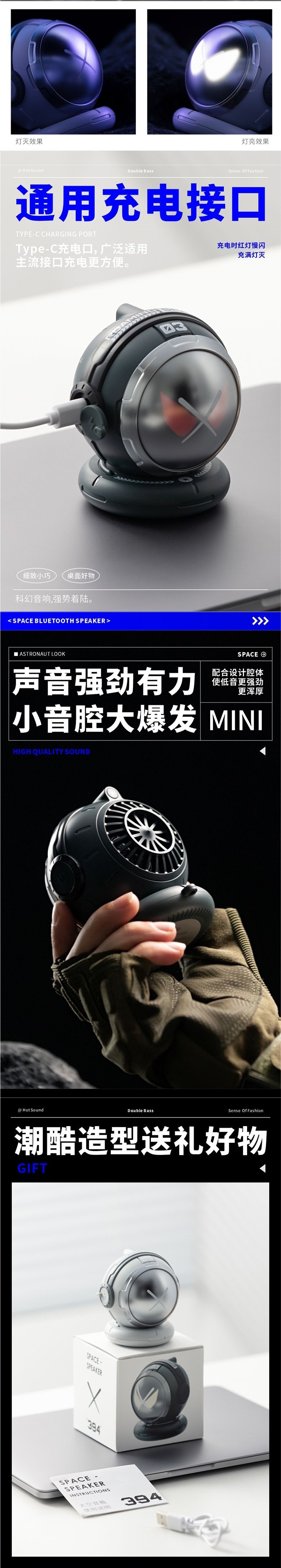 우주 비행사 블루투스 스피커 미니 휴대용 서브 우퍼 무선 충전식 소형 스피커 소년을위한 생일 선물스토어 가기