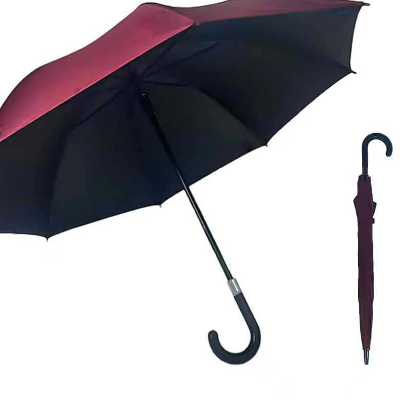 23 인치 곡선 핸들 골프 우산 광고 우산 맞춤형 로고 이중 목적 자동 스트레이트 핸들 우산 도매