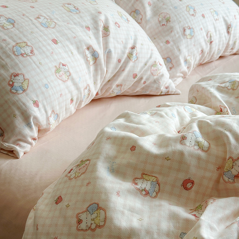 클래스 A 모성 및 유아 프렌치 레이스 코튼 단일 폭 에어로빅 더블 레이어 거즈 4 피스 세트 학생 기숙사 3 피스 세트
