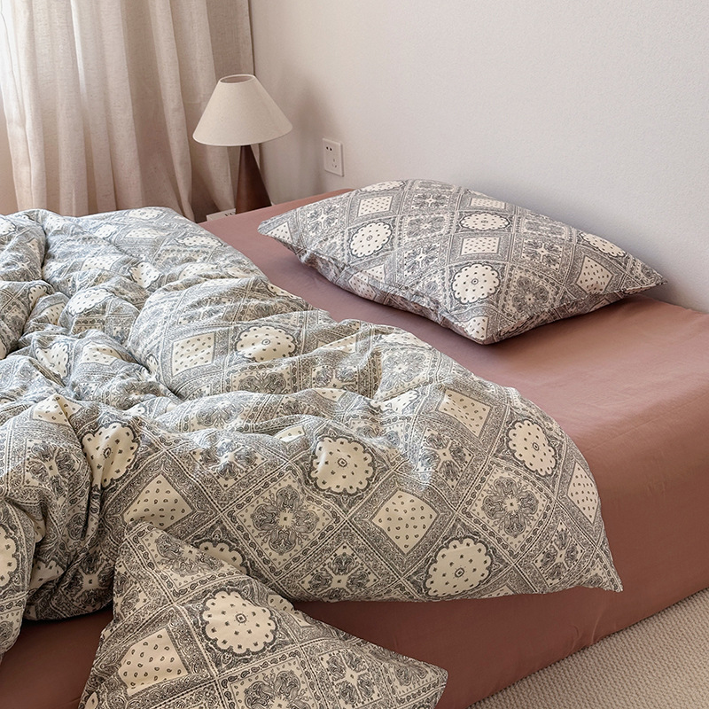 클래스 A 모성 및 유아 프렌치 레이스 코튼 단일 폭 에어로빅 더블 레이어 거즈 4 피스 세트 학생 기숙사 3 피스 세트스토어 가기