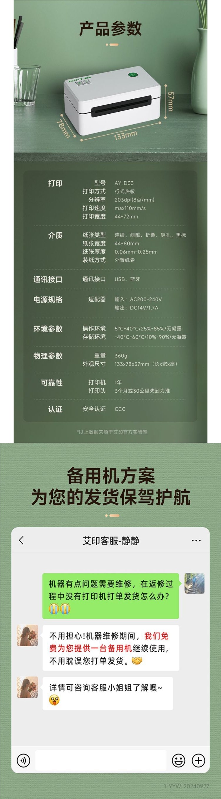 Ai Yin D33 익스프레스 싱글 프린터 3 인치 전자 상거래 포스트 전자 얼굴 단일 블루투스 열 프린터스토어 가기