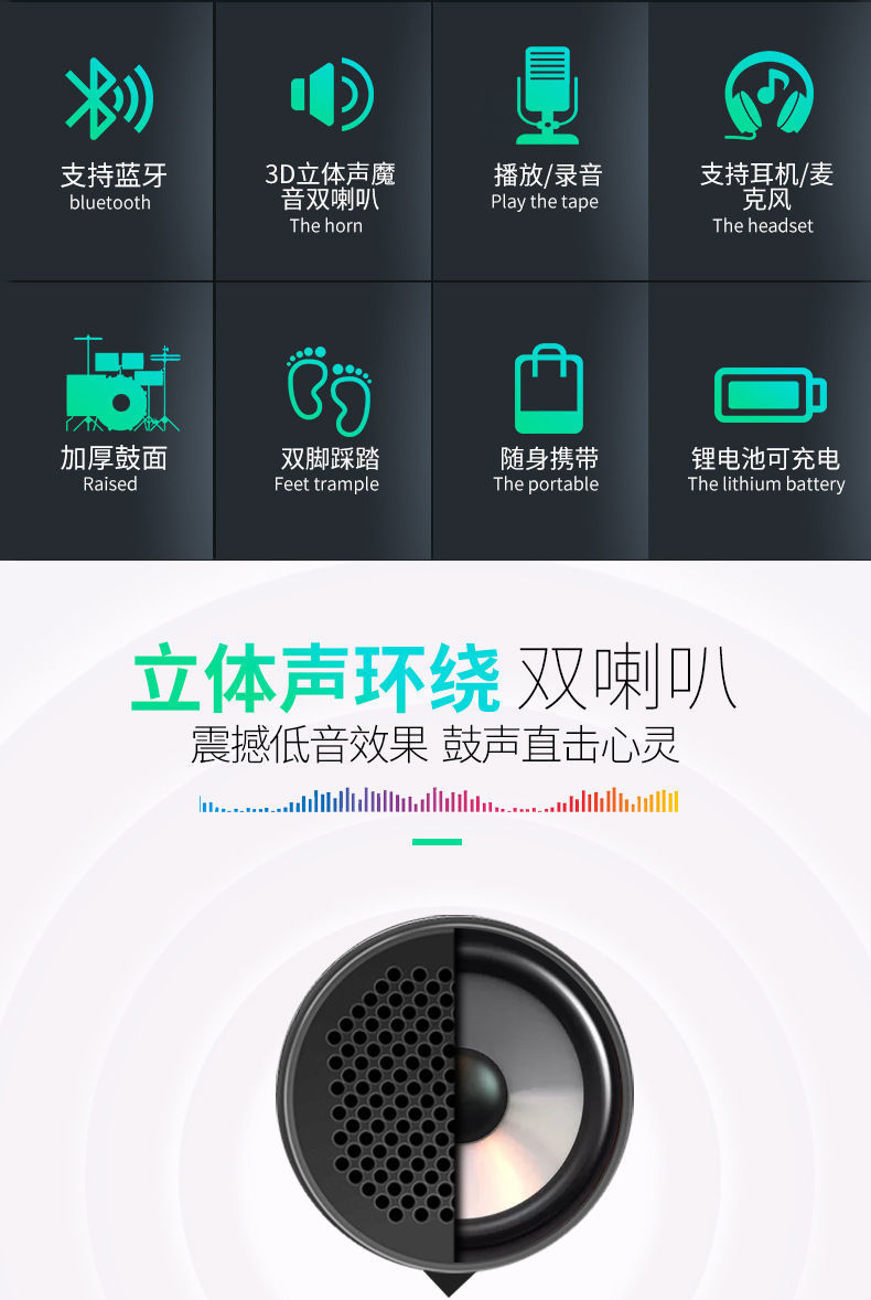 • [업그레이드 모델] 단일 스피커 리튬 배터리 대형 드럼 키트