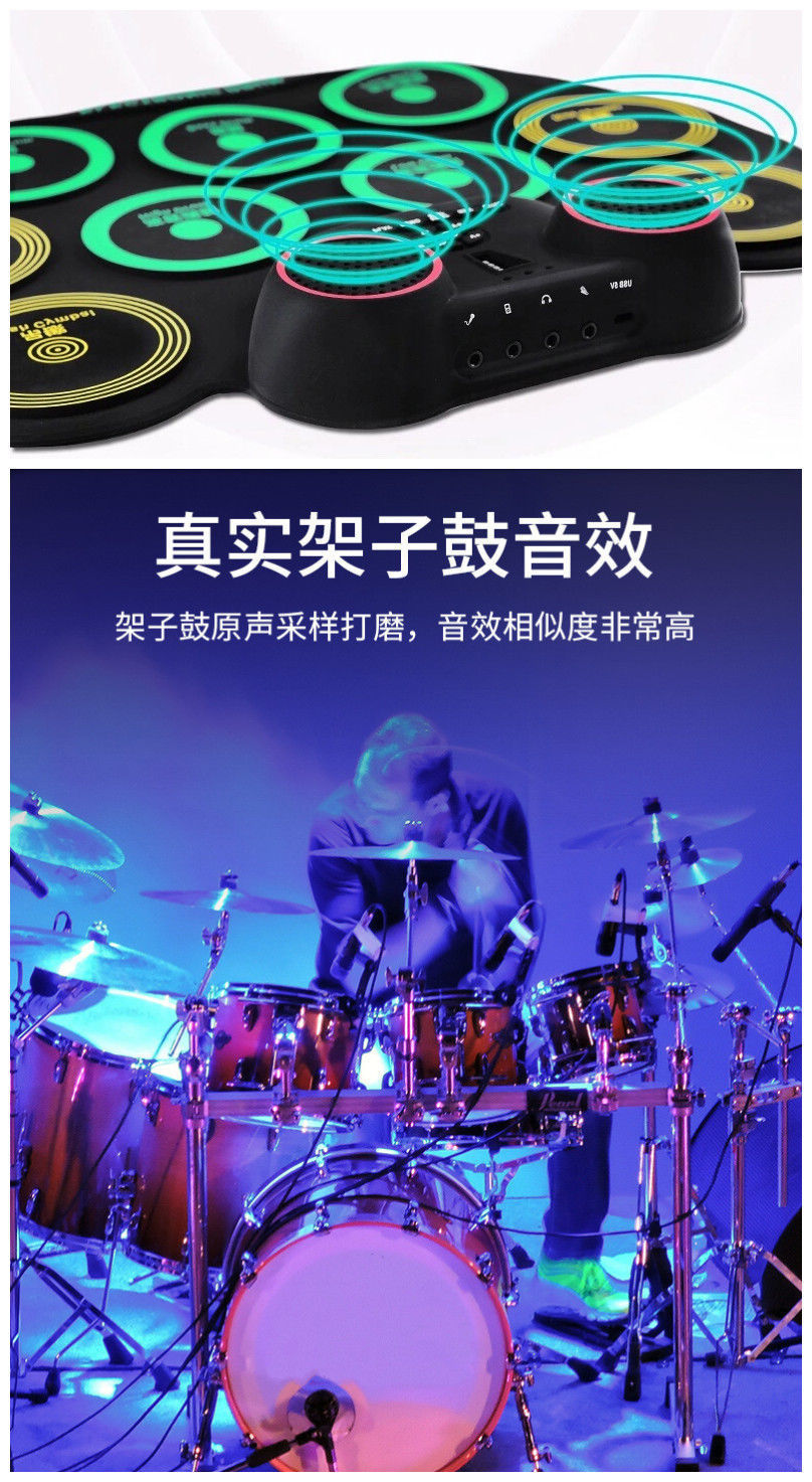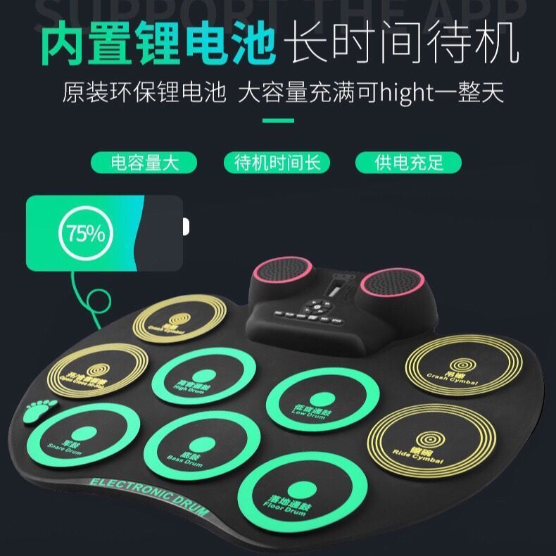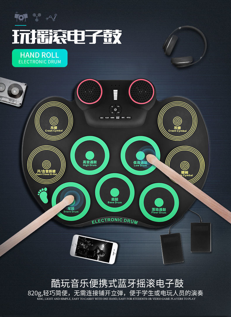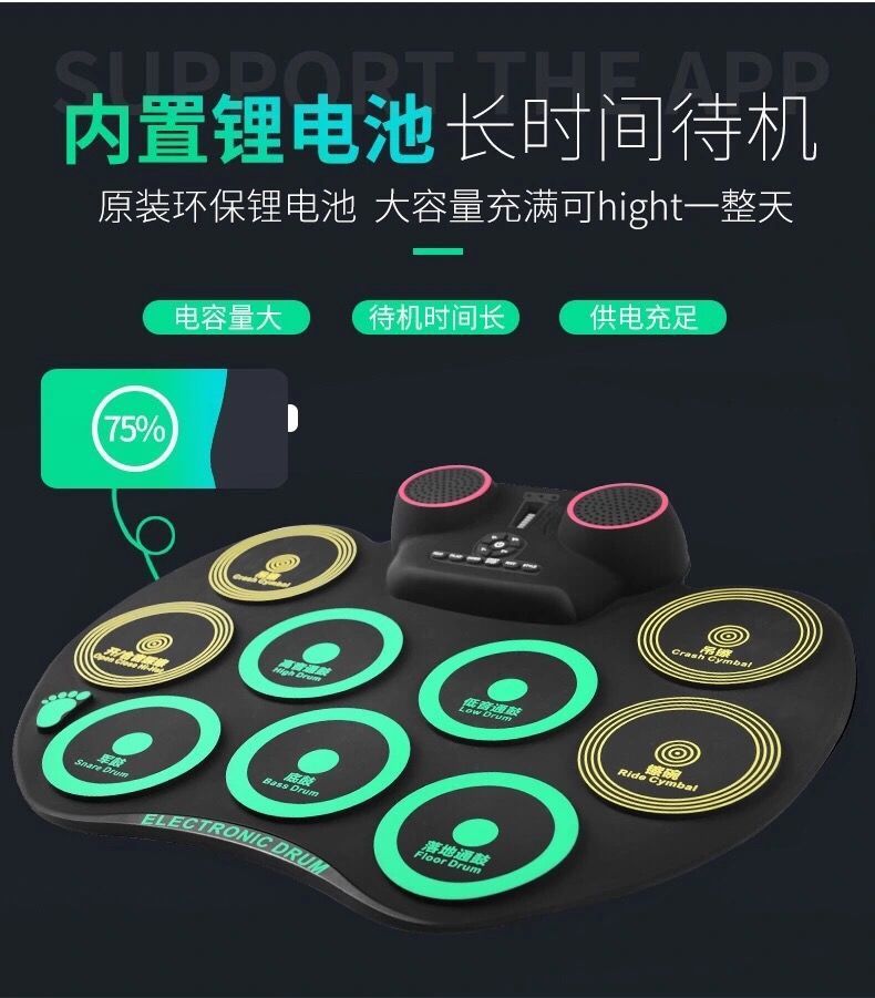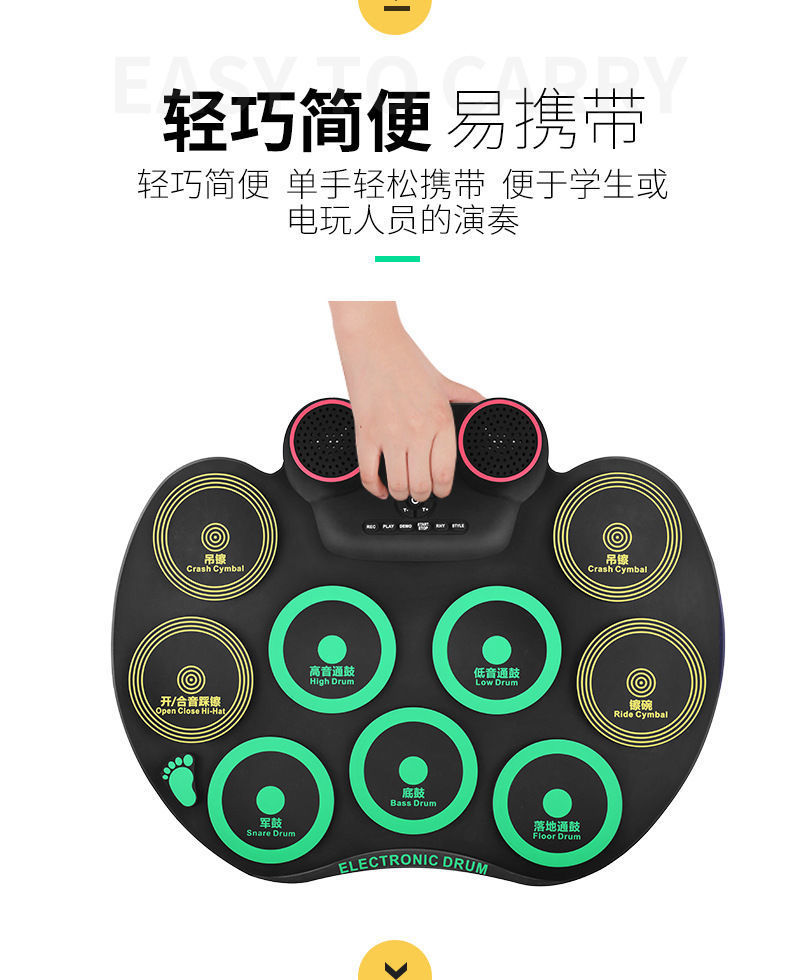 학생 및 어린이 초보자 드럼을 연습 할 수있는 편리한 성인 전문 전자 패드를 접는 손으로 굴린 전자 드럼 세트 드럼스토어 가기