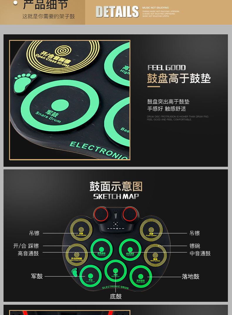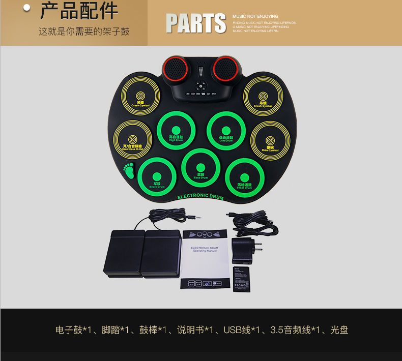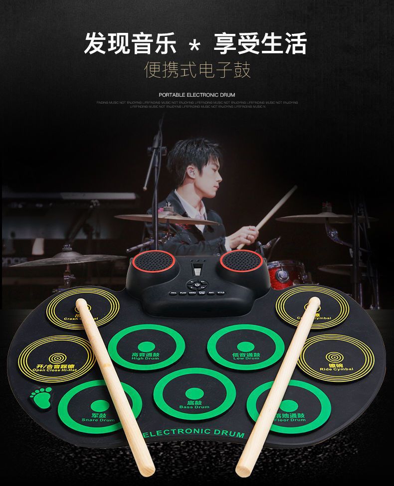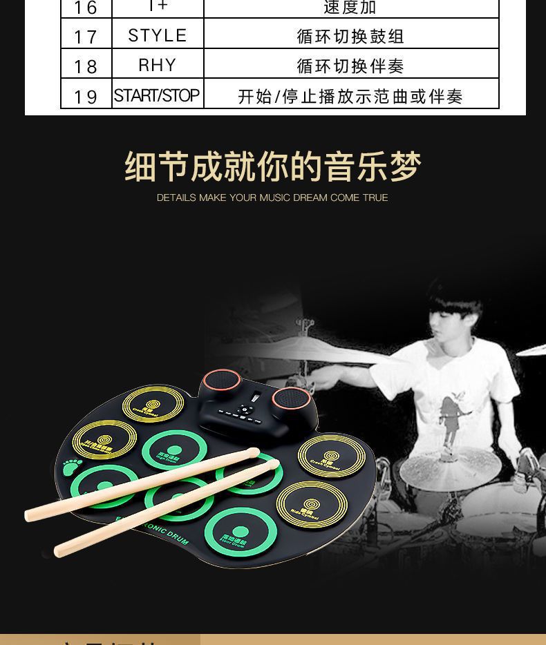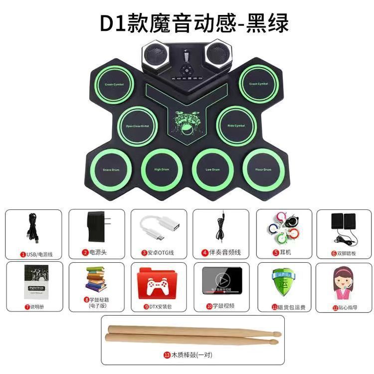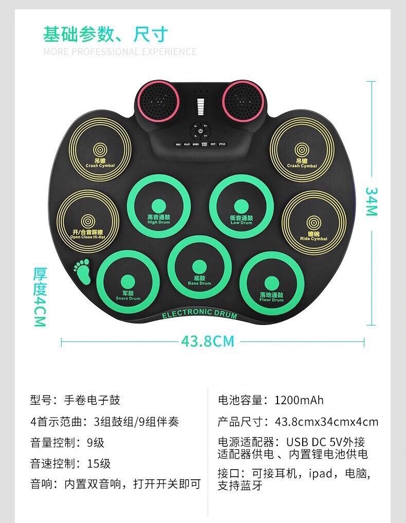 학생 및 어린이 초보자 드럼을 연습 할 수있는 편리한 성인 전문 전자 패드를 접는 손으로 굴린 전자 드럼 세트 드럼스토어 가기