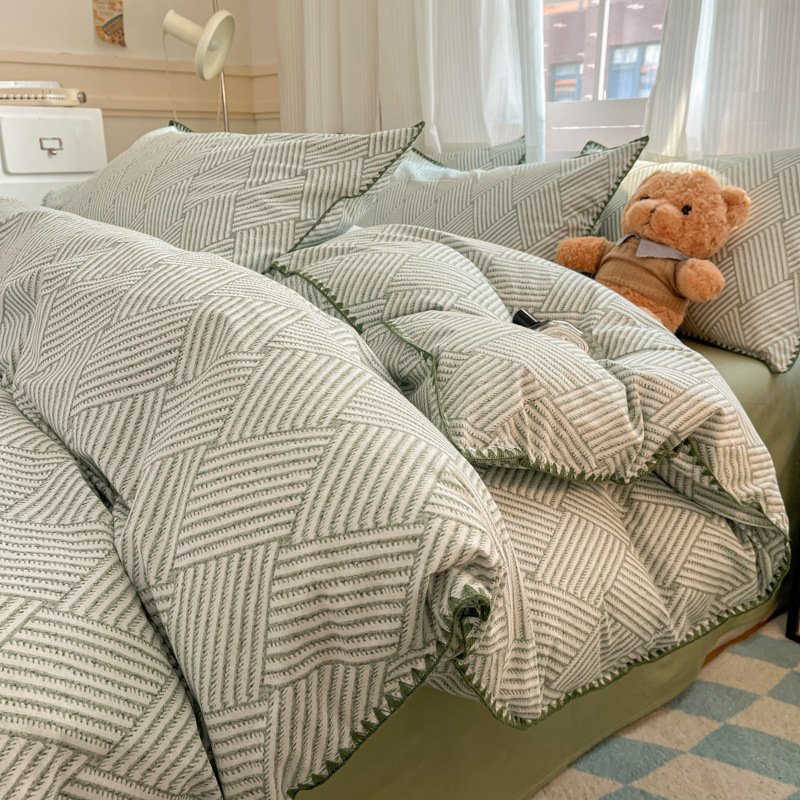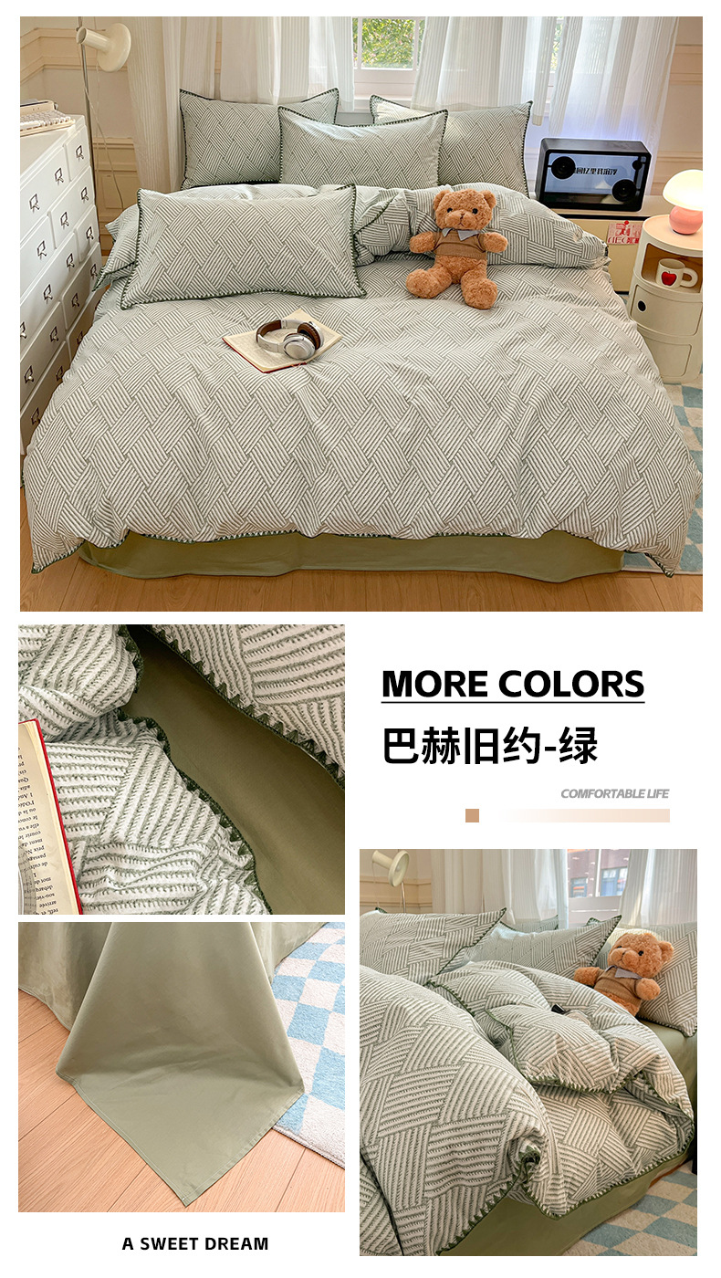 2025 새로운 봄면 4 피스 코튼 간단한 퀼트 커버 시트 3 피스 침구 더블 도매
