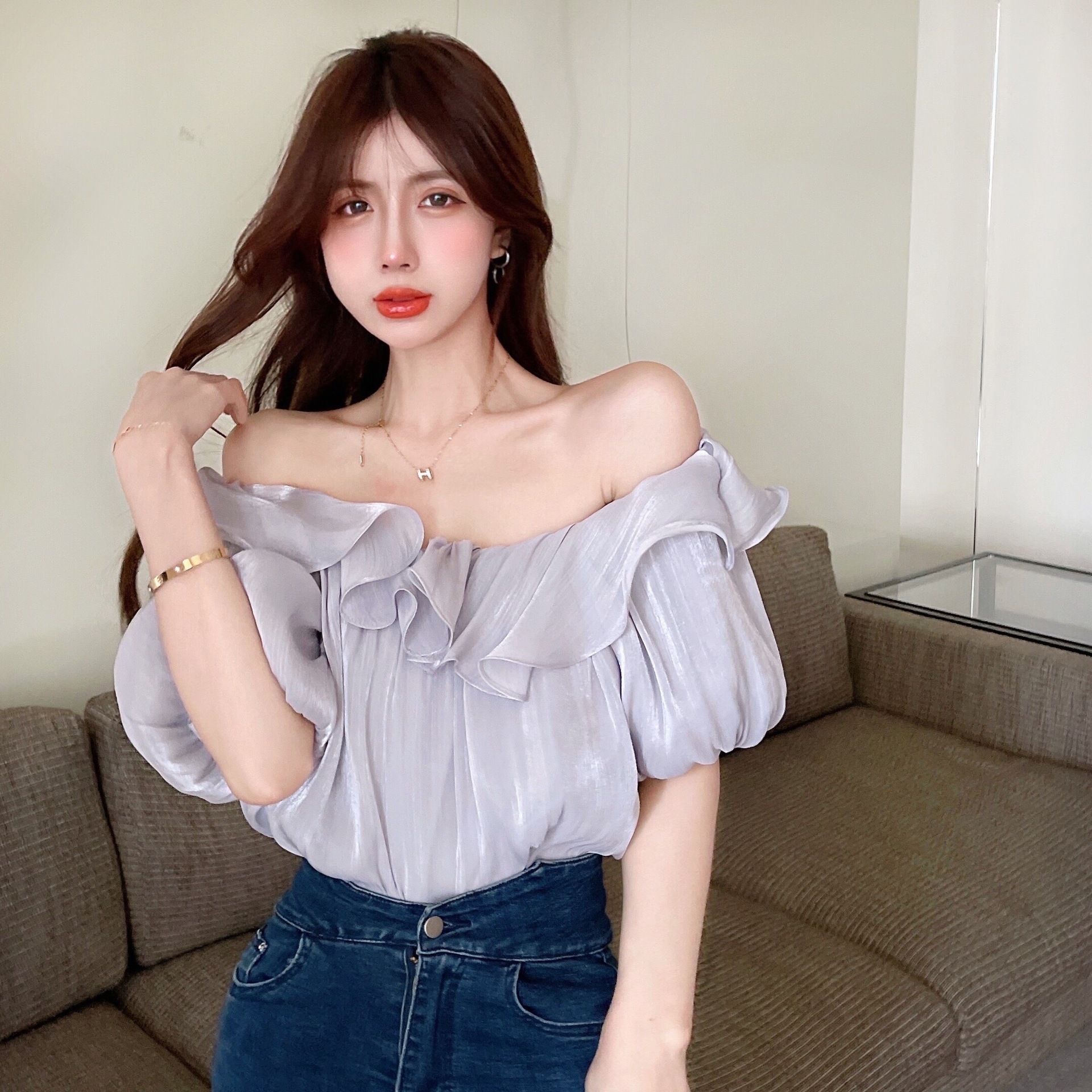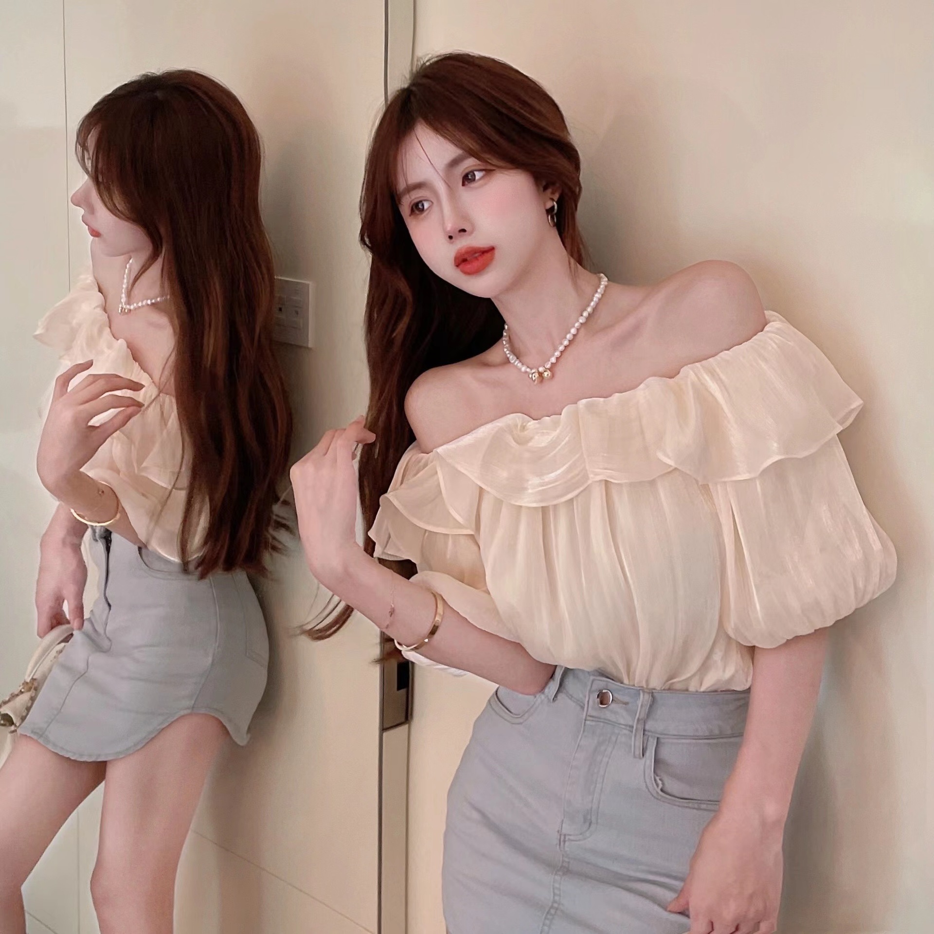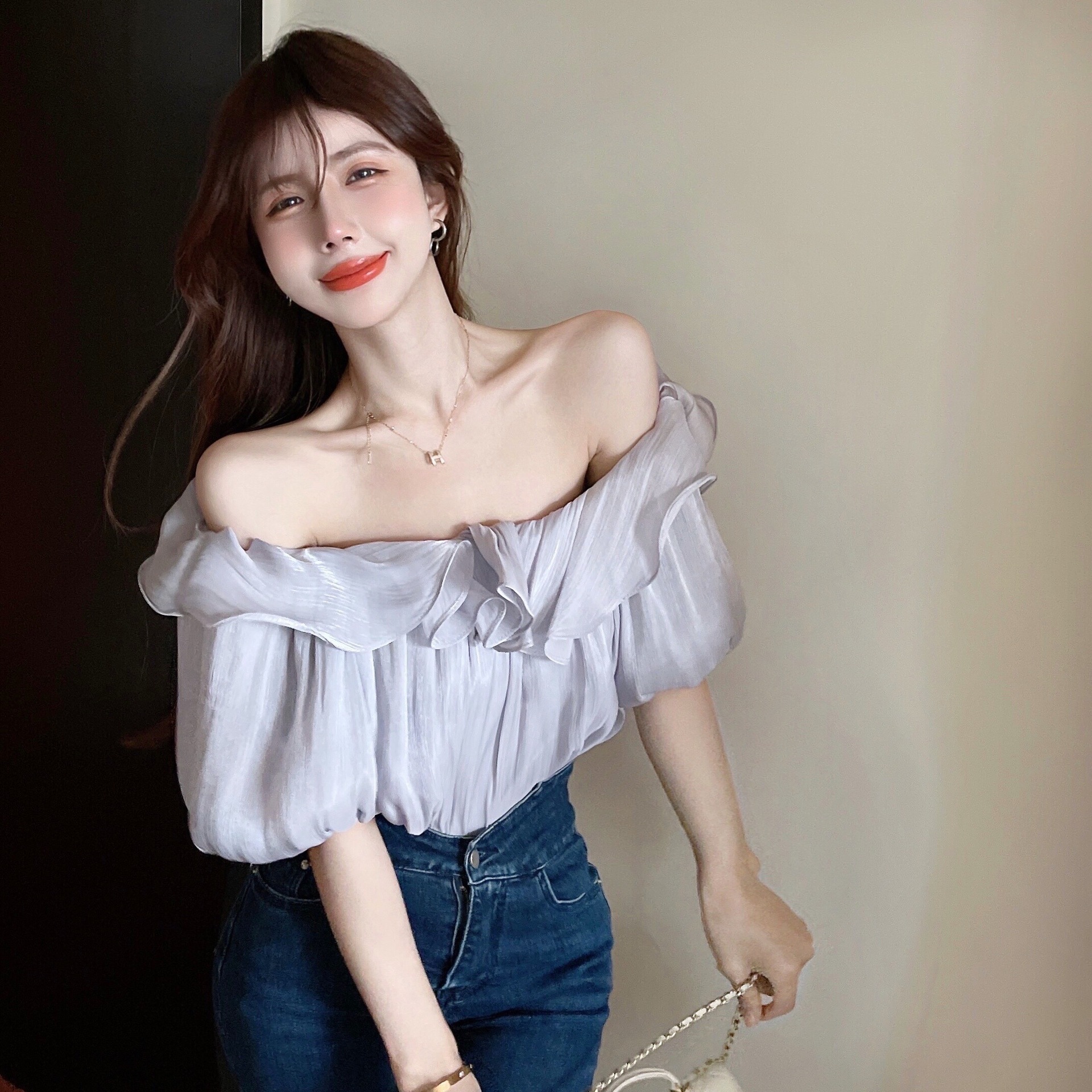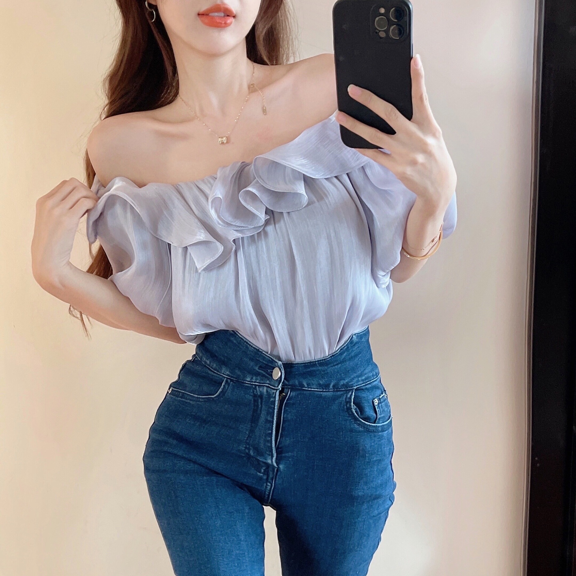 순수한 욕망 우아한 어깨 셔츠 여성 디자인 센스 니쉬 탑 러플 서양식 어깨 쉬폰 셔츠