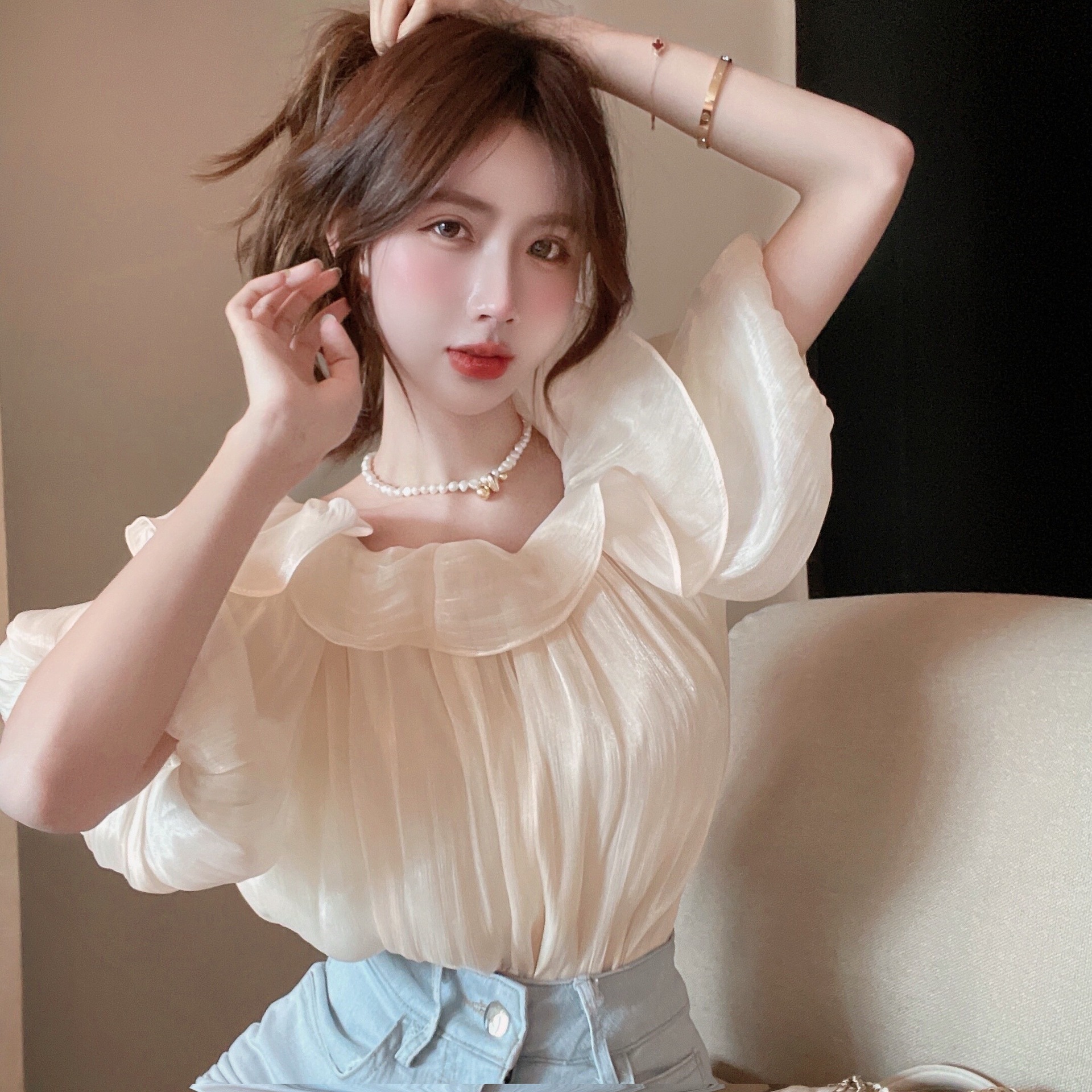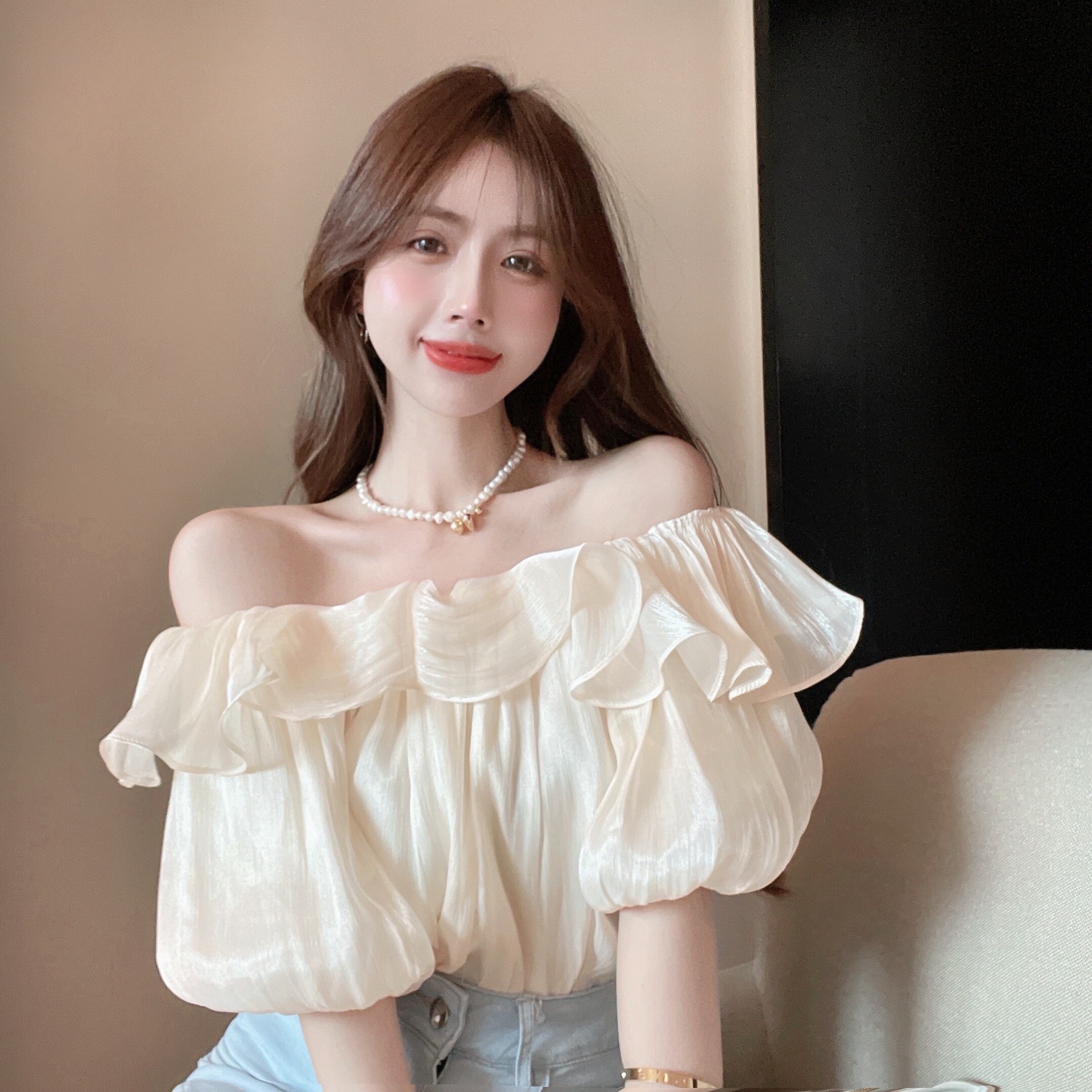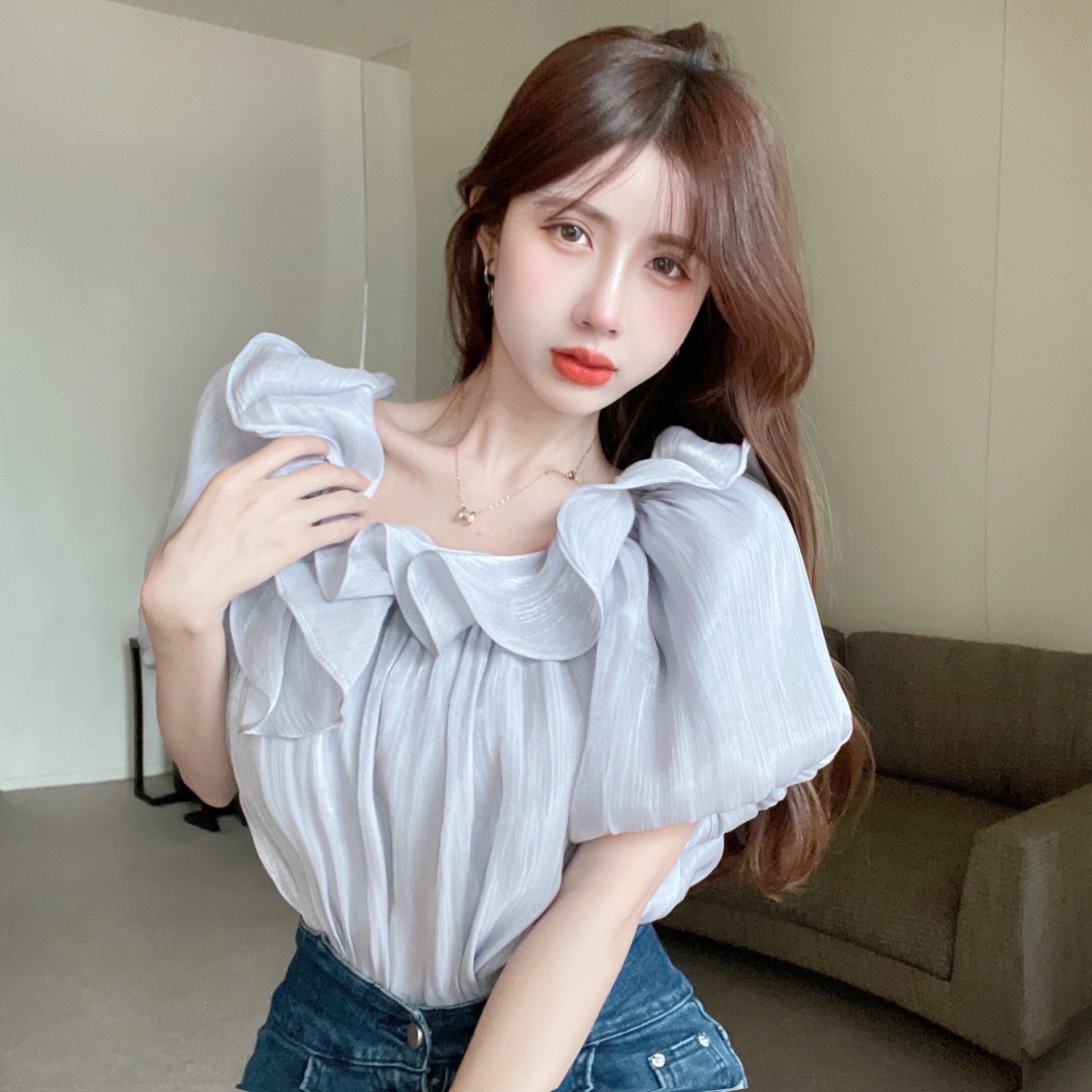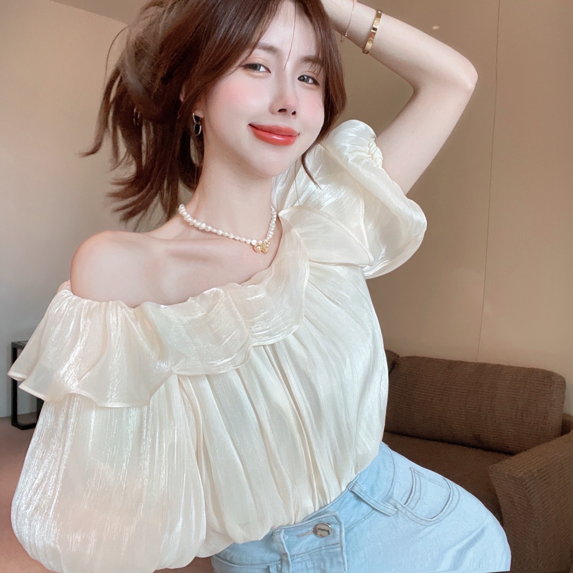 순수한 욕망 우아한 어깨 셔츠 여성 디자인 센스 니쉬 탑 러플 서양식 어깨 쉬폰 셔츠