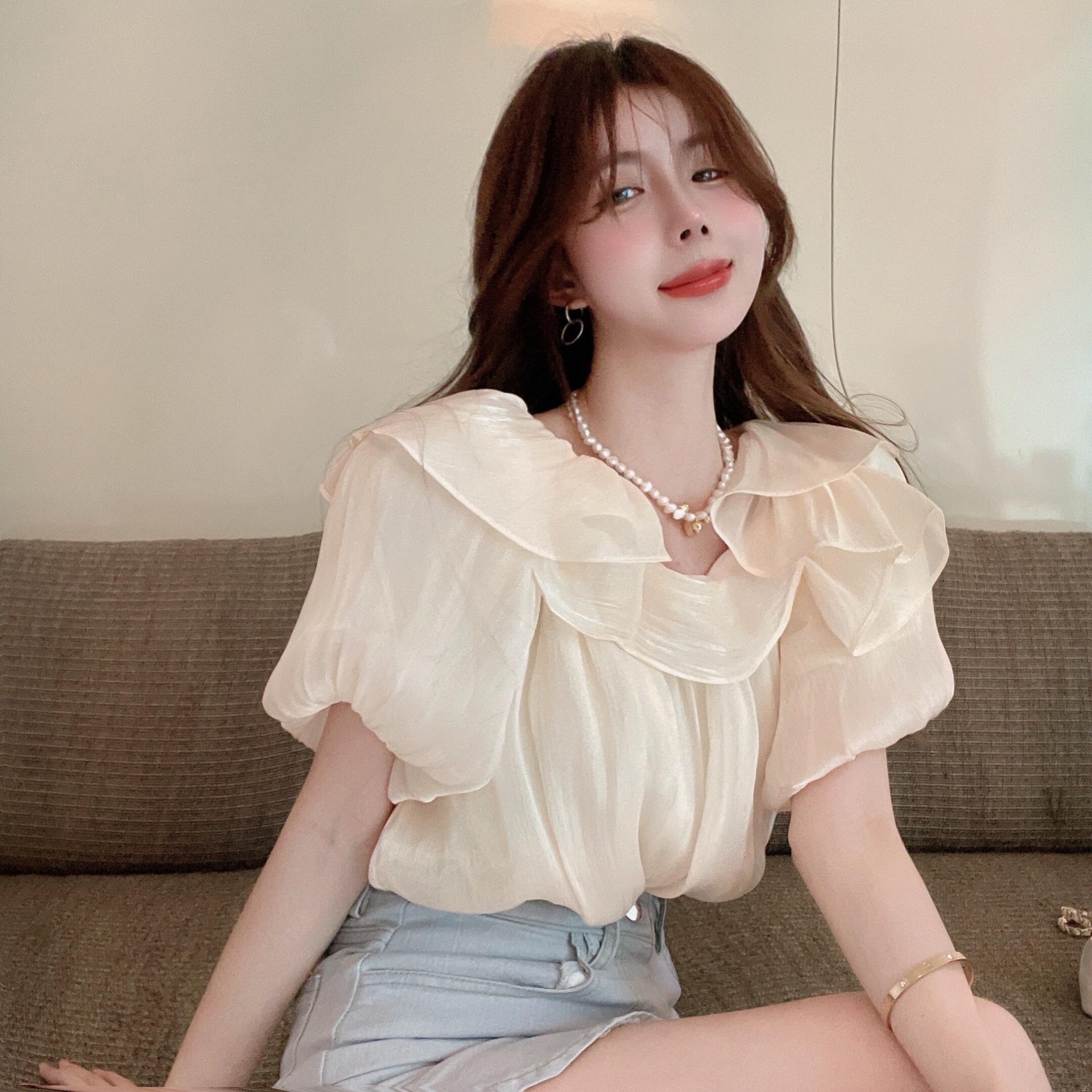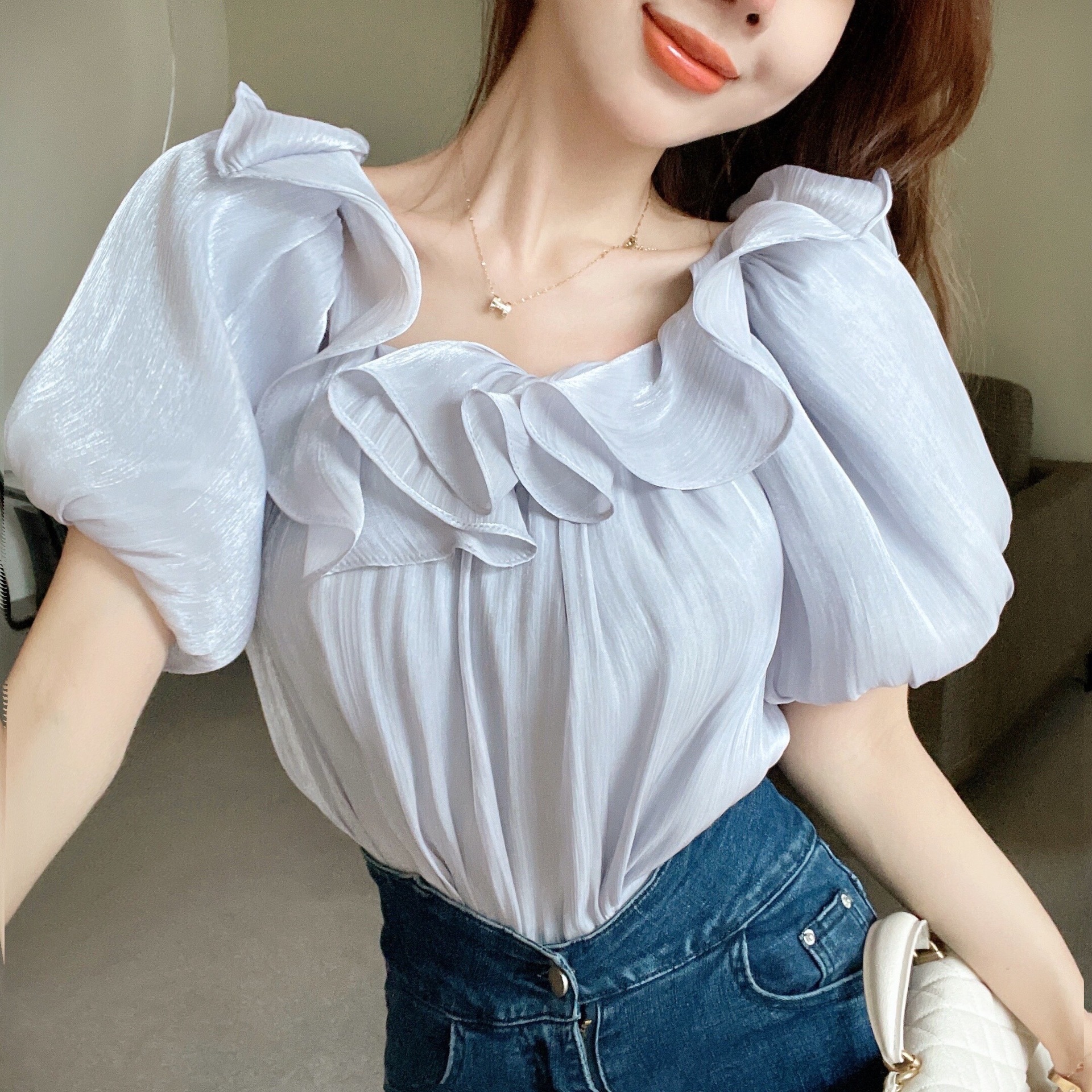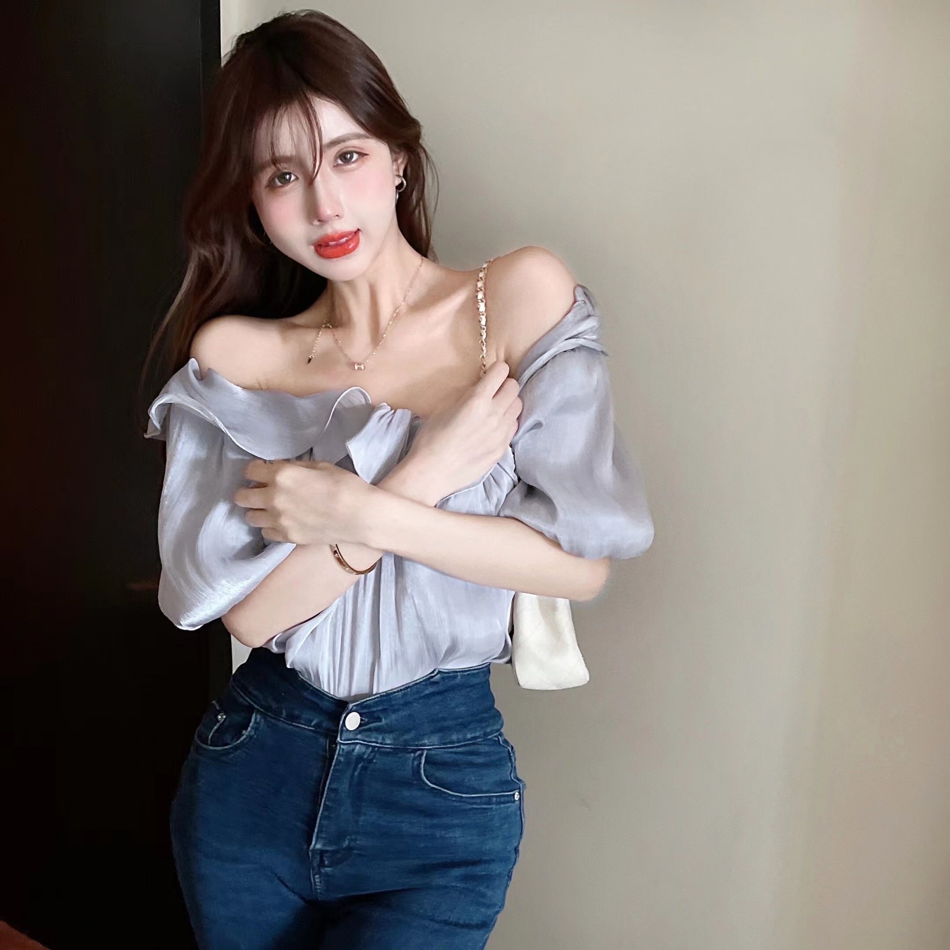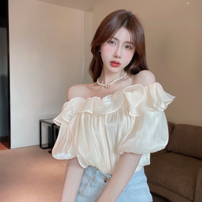 순수한 욕망 우아한 어깨 셔츠 여성 디자인 센스 니쉬 탑 러플 서양식 어깨 쉬폰 셔츠