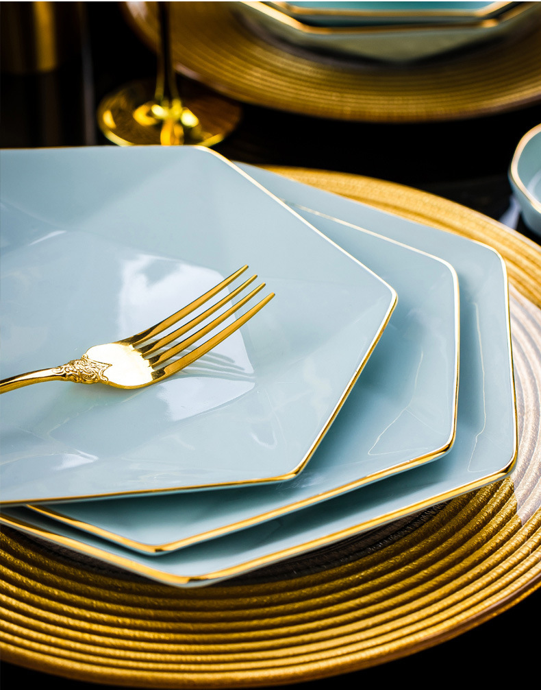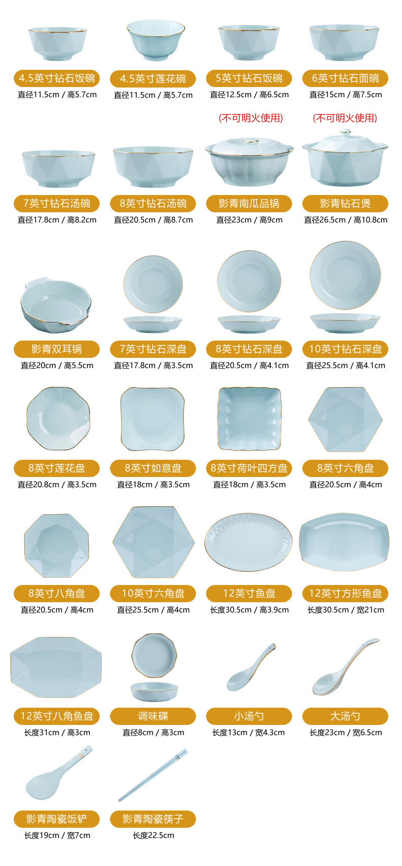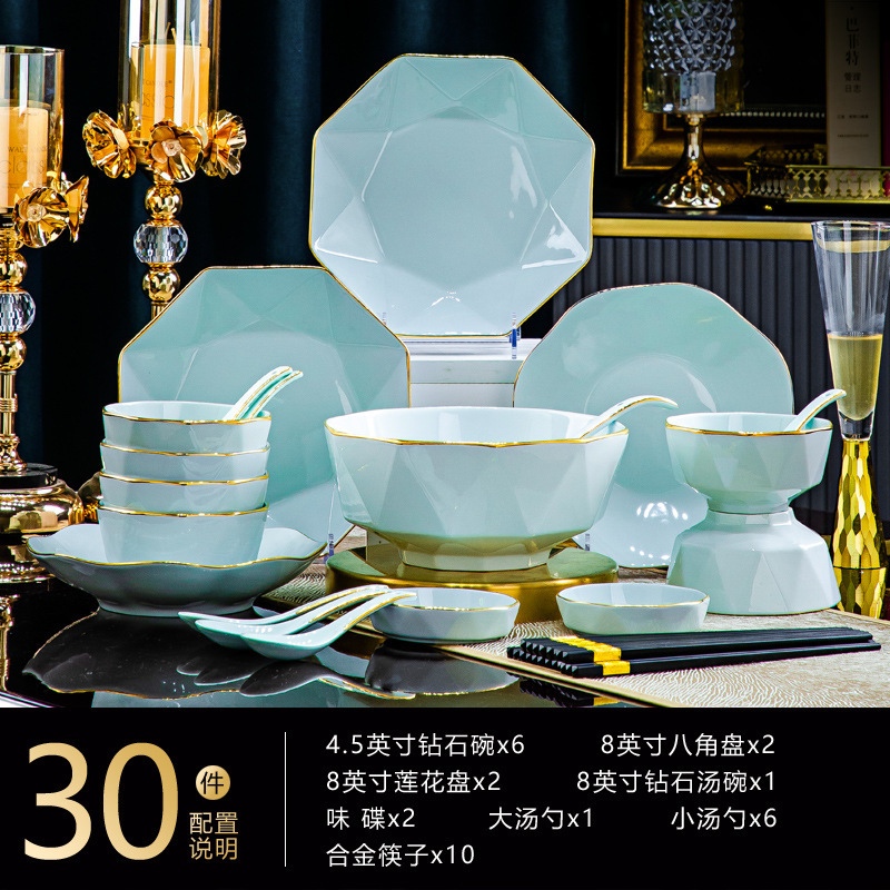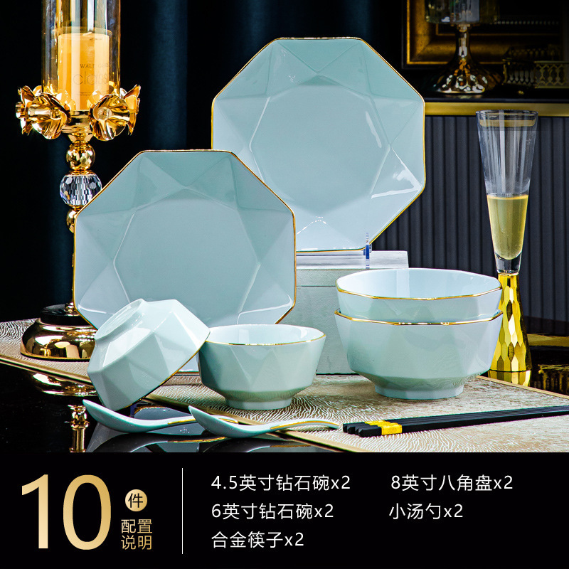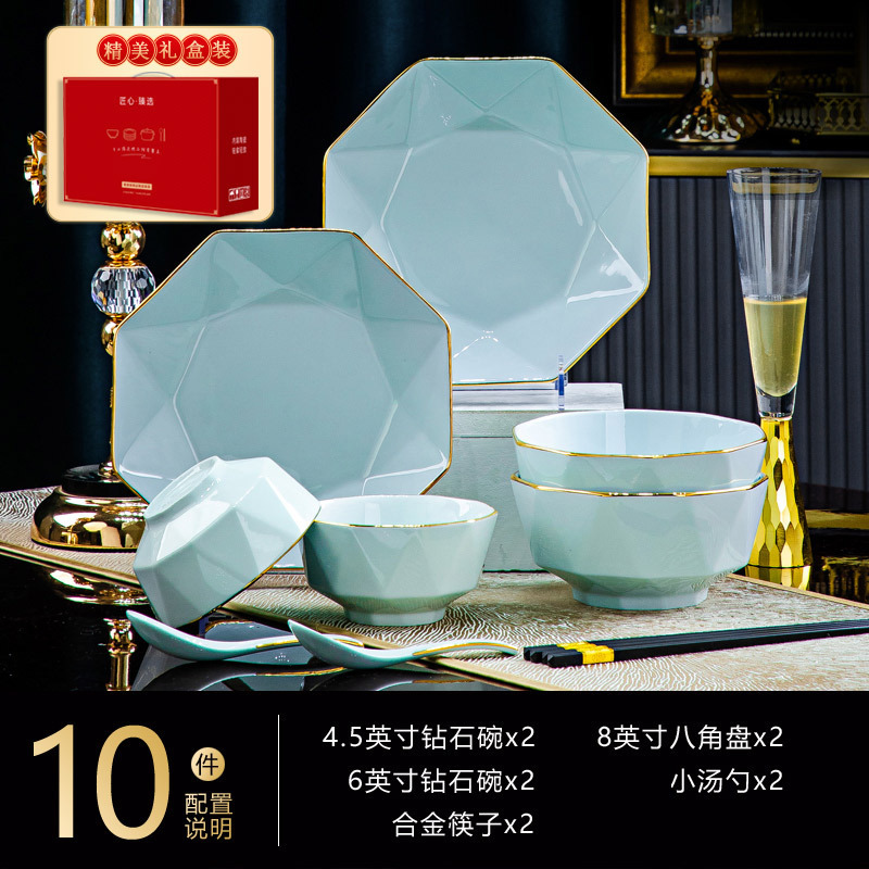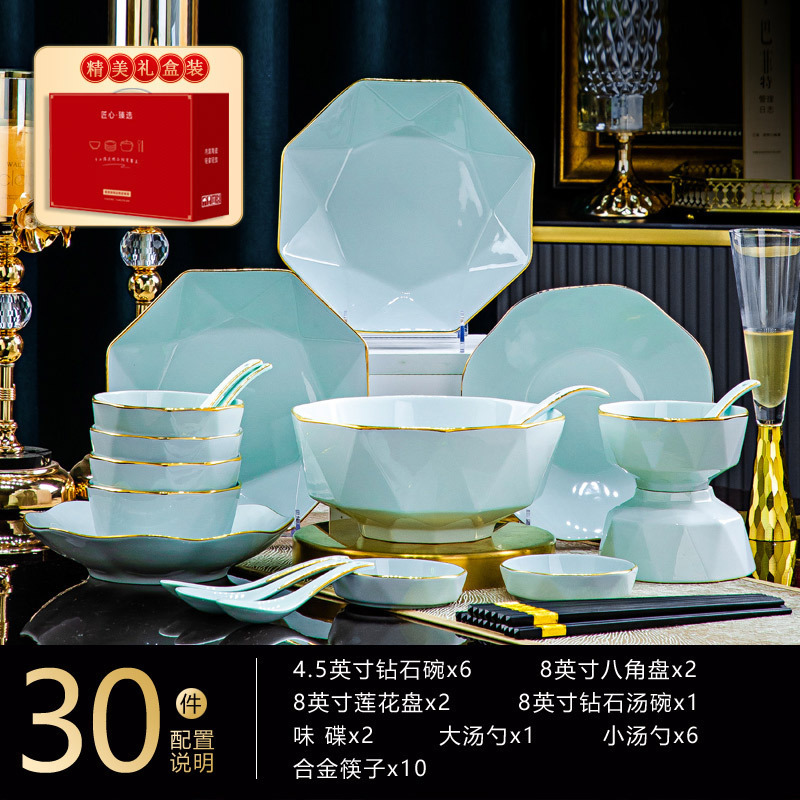 수제 골드 그린 청자 요리와 요리 세트 가정용 식기 세트 세라믹 고급 센스 보울과 집들이 선물을위한 접시 젓가락스토어 가기