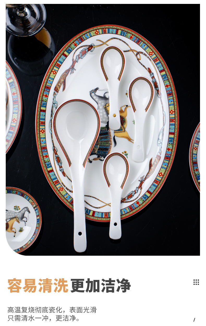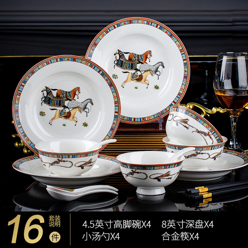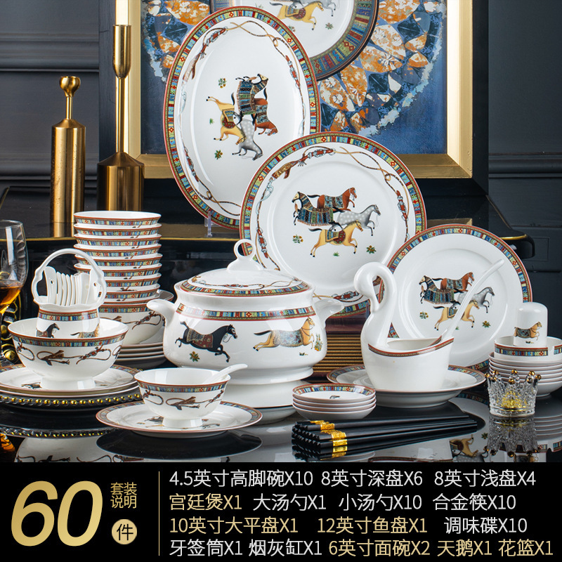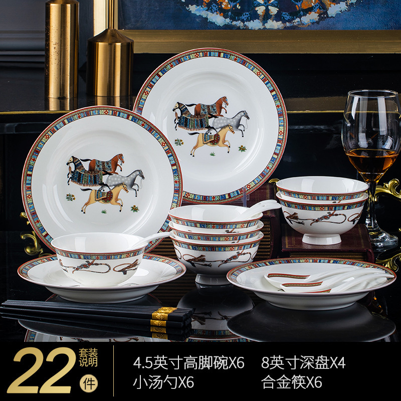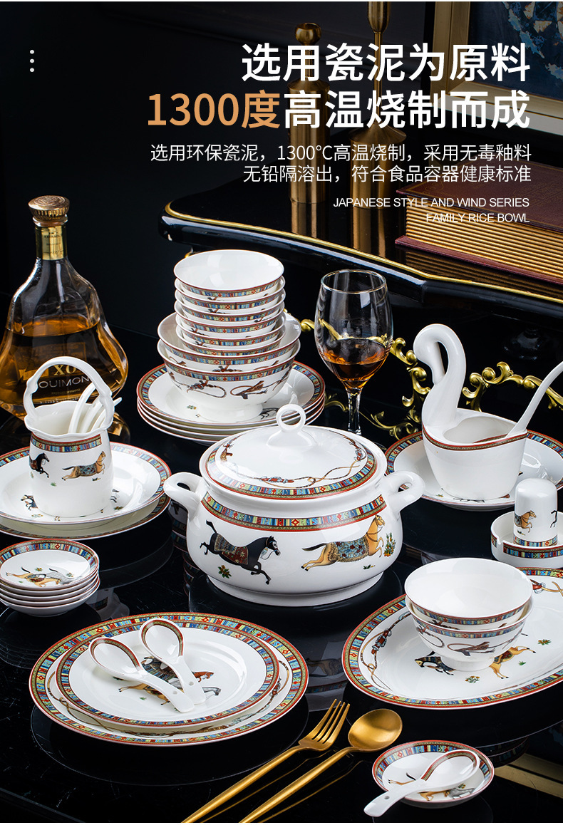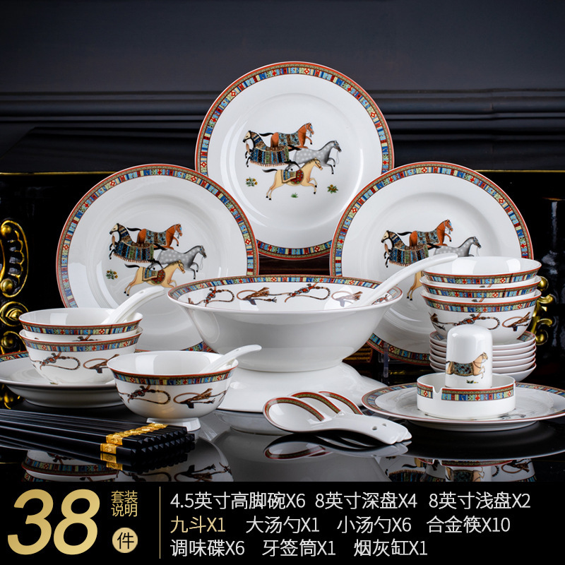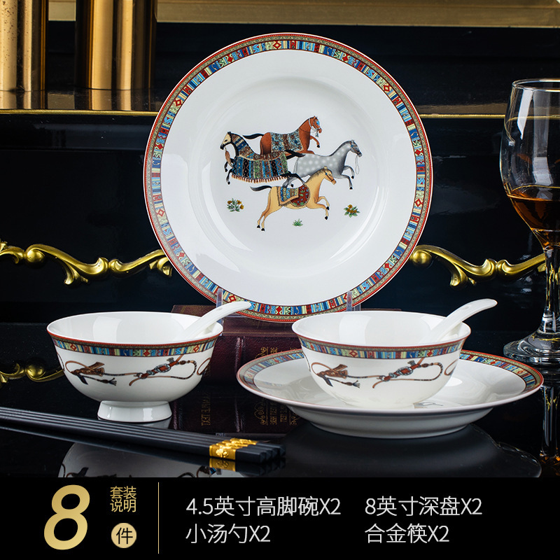 동양 말 식기 요리 세트 Jingdezhen 세라믹 가구 빛 럭셔리 뼈 중국 요리 및 요리 젓가락 선물 유럽 스타일 그릇스토어 가기