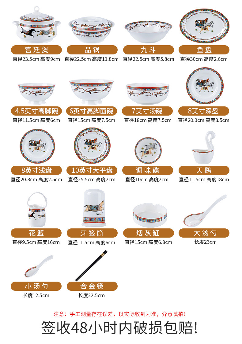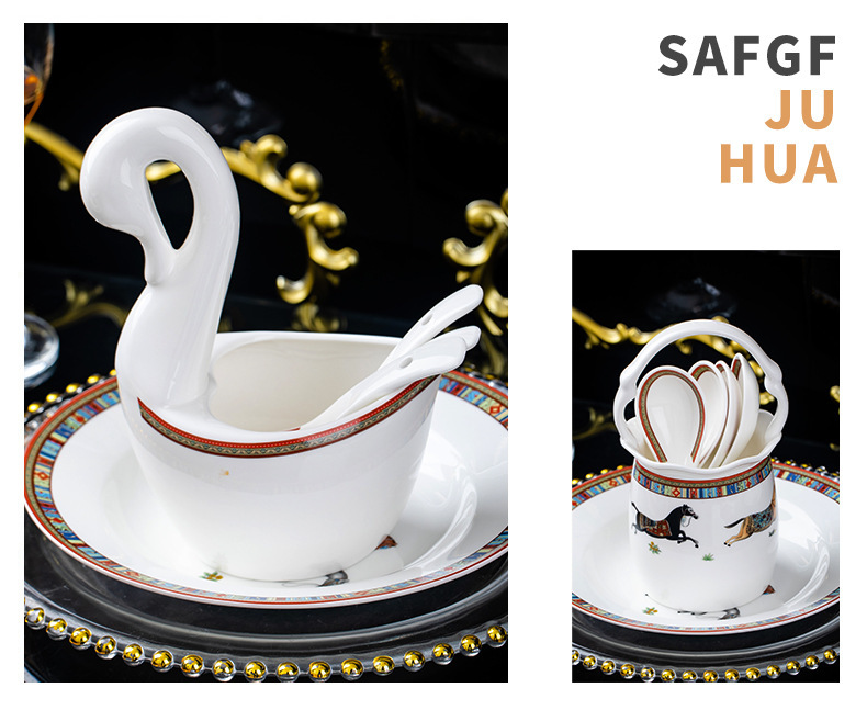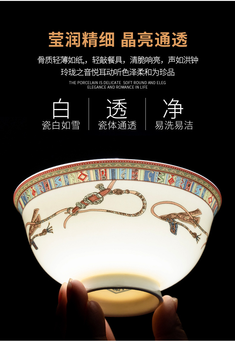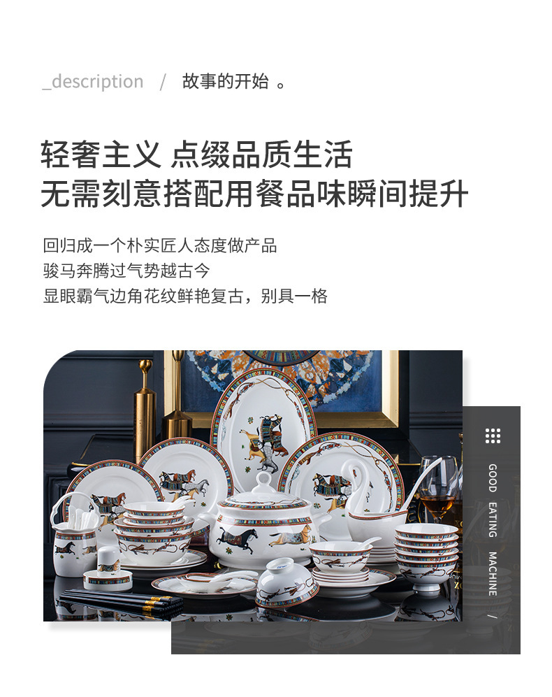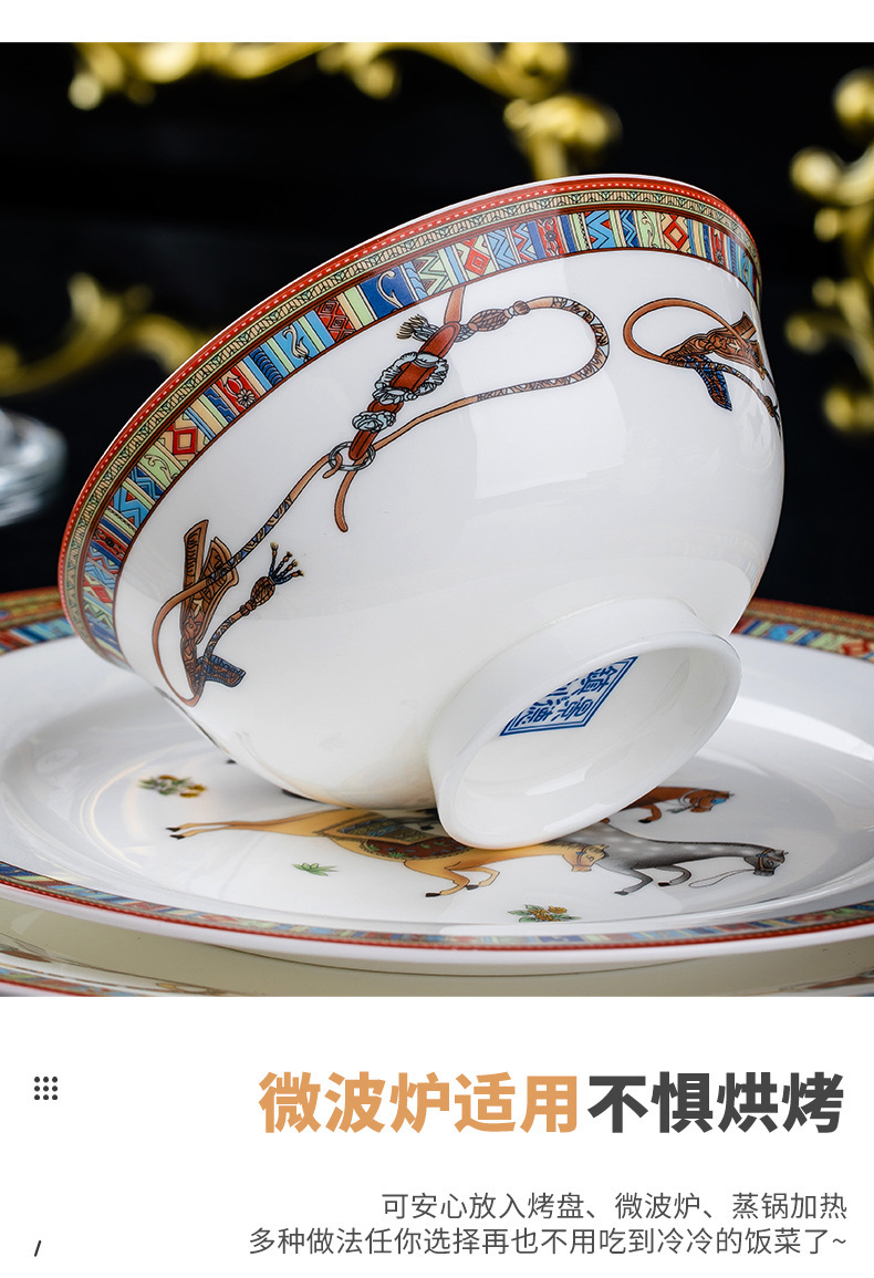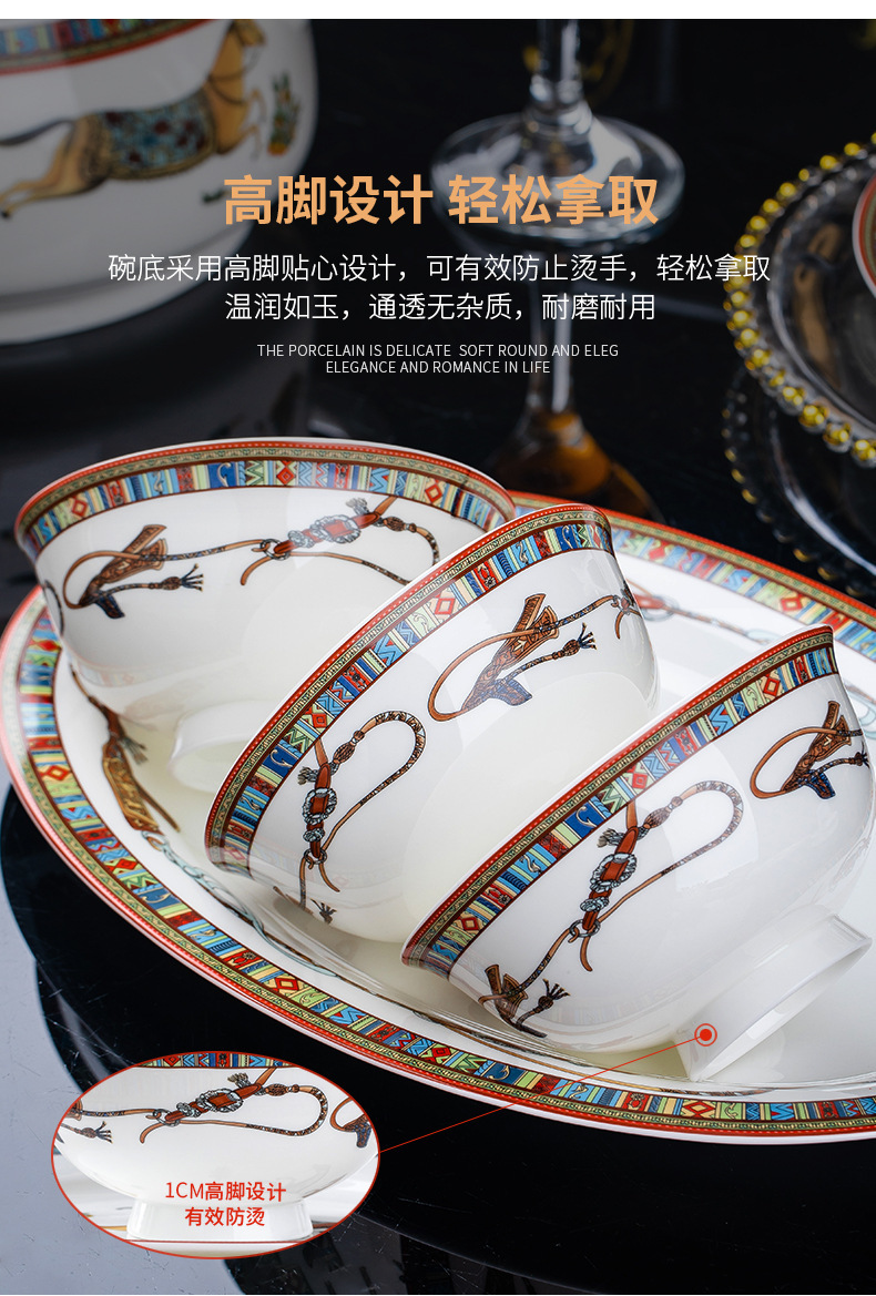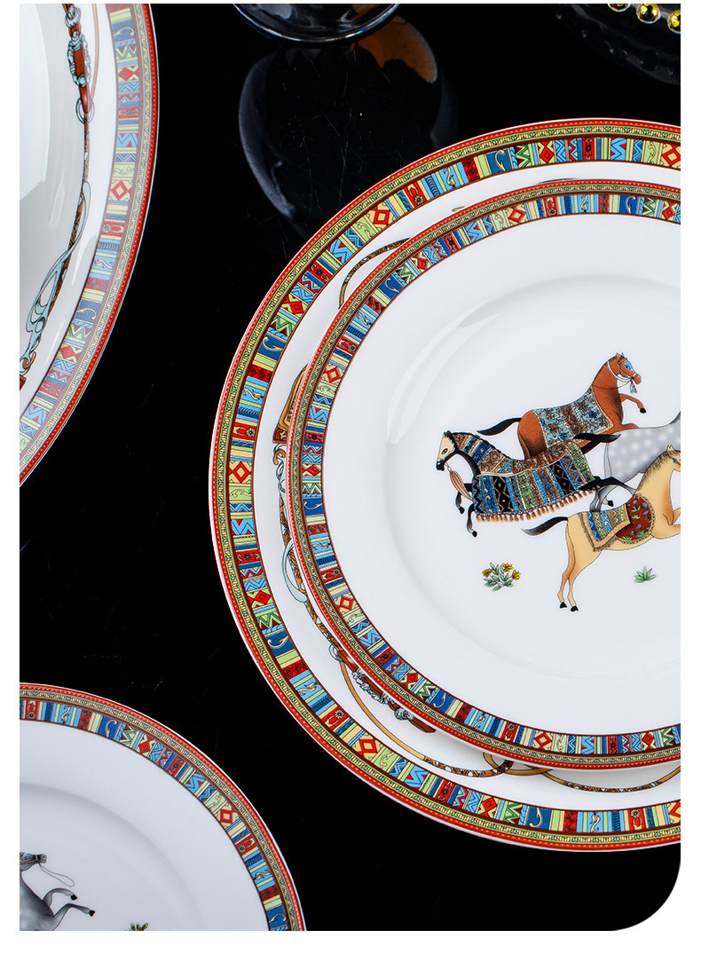동양 말 식기 요리 세트 Jingdezhen 세라믹 가구 빛 럭셔리 뼈 중국 요리 및 요리 젓가락 선물 유럽 스타일 그릇스토어 가기