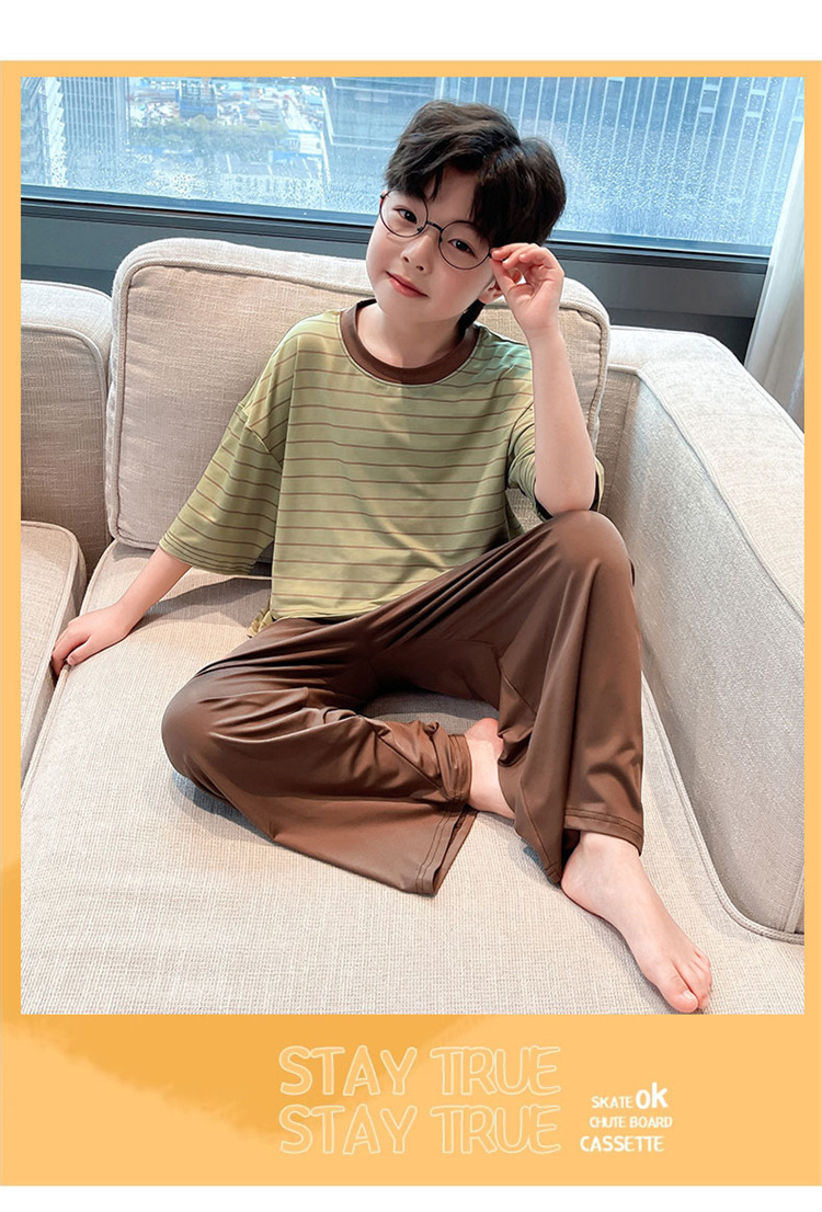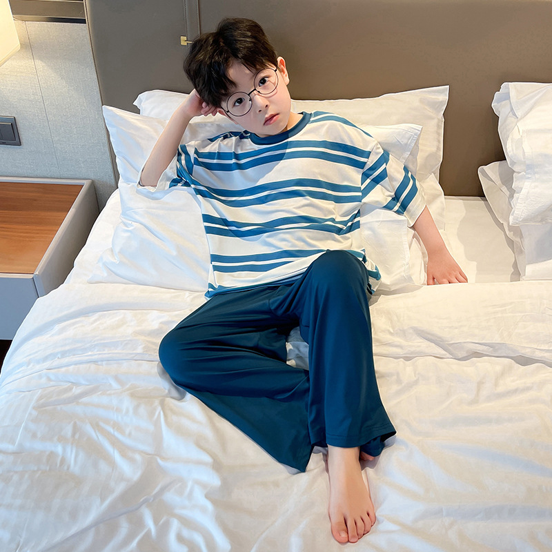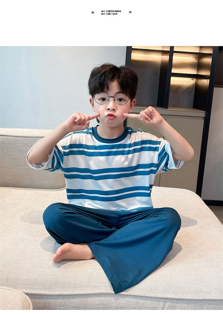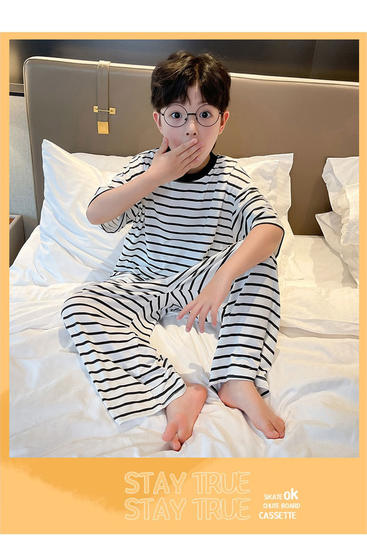 어린이 옷 소년의 여름 잠옷 홈 의류 세트 여름 얇은 순수 코튼 여름 소년을위한 에어컨 옷스토어 가기