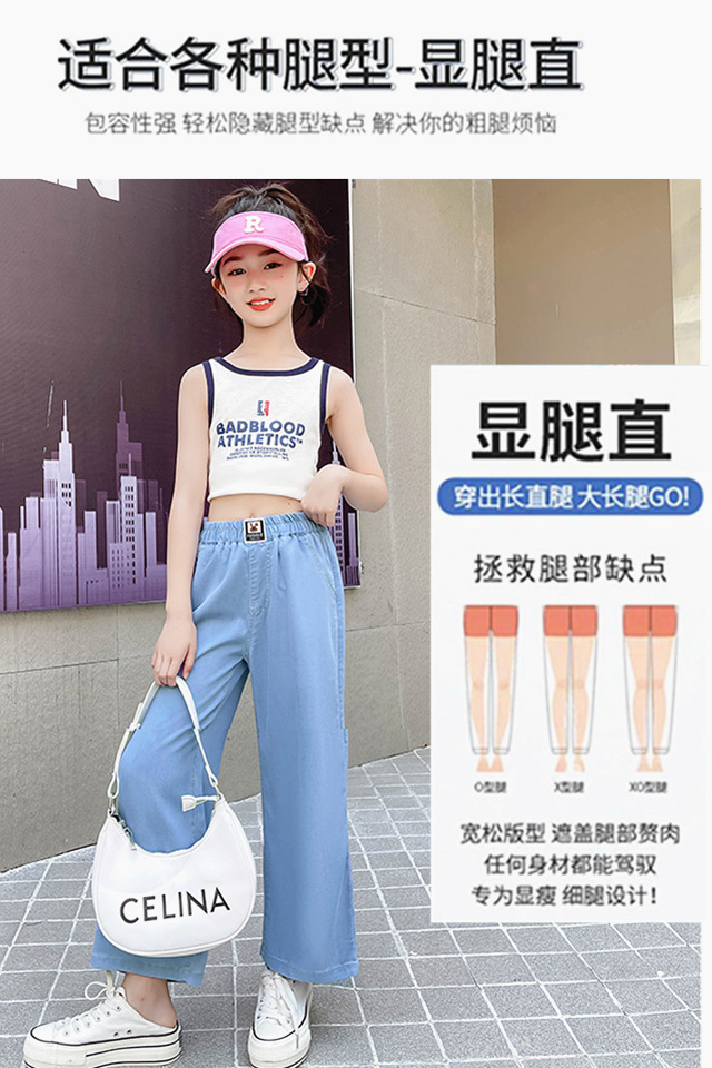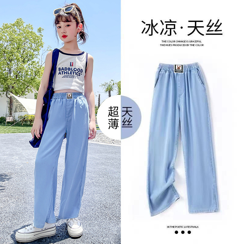 소녀 바지 여름 얇은 큰 어린이 텐셀 넓은 다리 바지 서양식 느슨한 여름 캐주얼 어린이 청바지스토어 가기