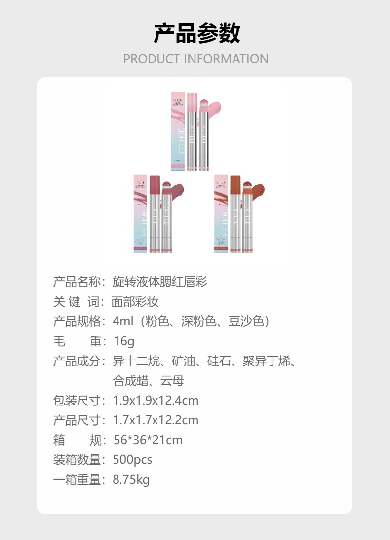 EELHOE 회전 액체 홍당무 립 광택 보습 열기 쉬운 푸쉬 다기능 고정 고광택 홍당무 액체
