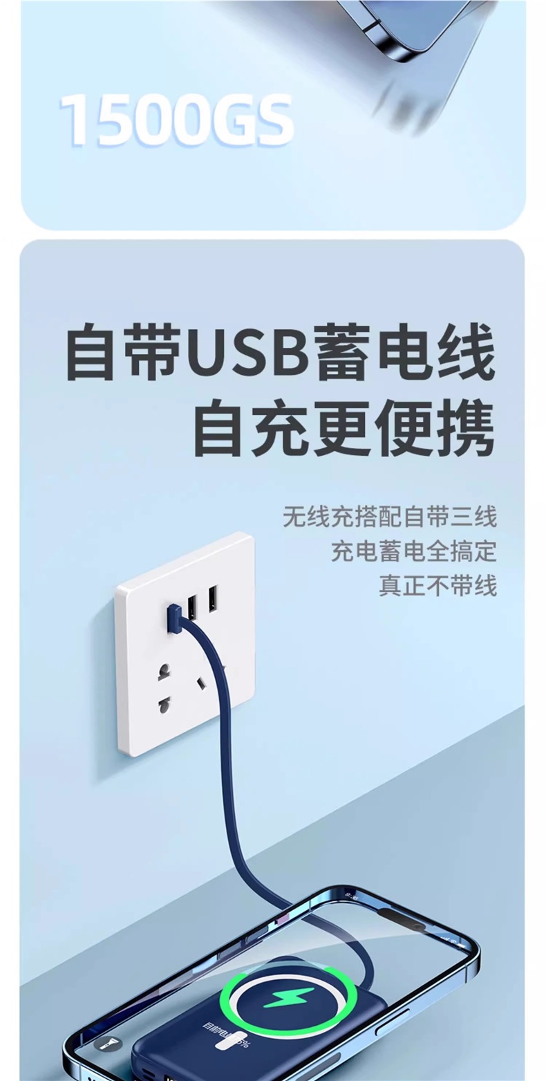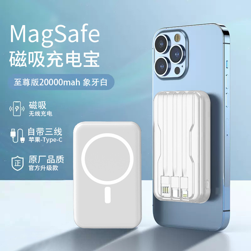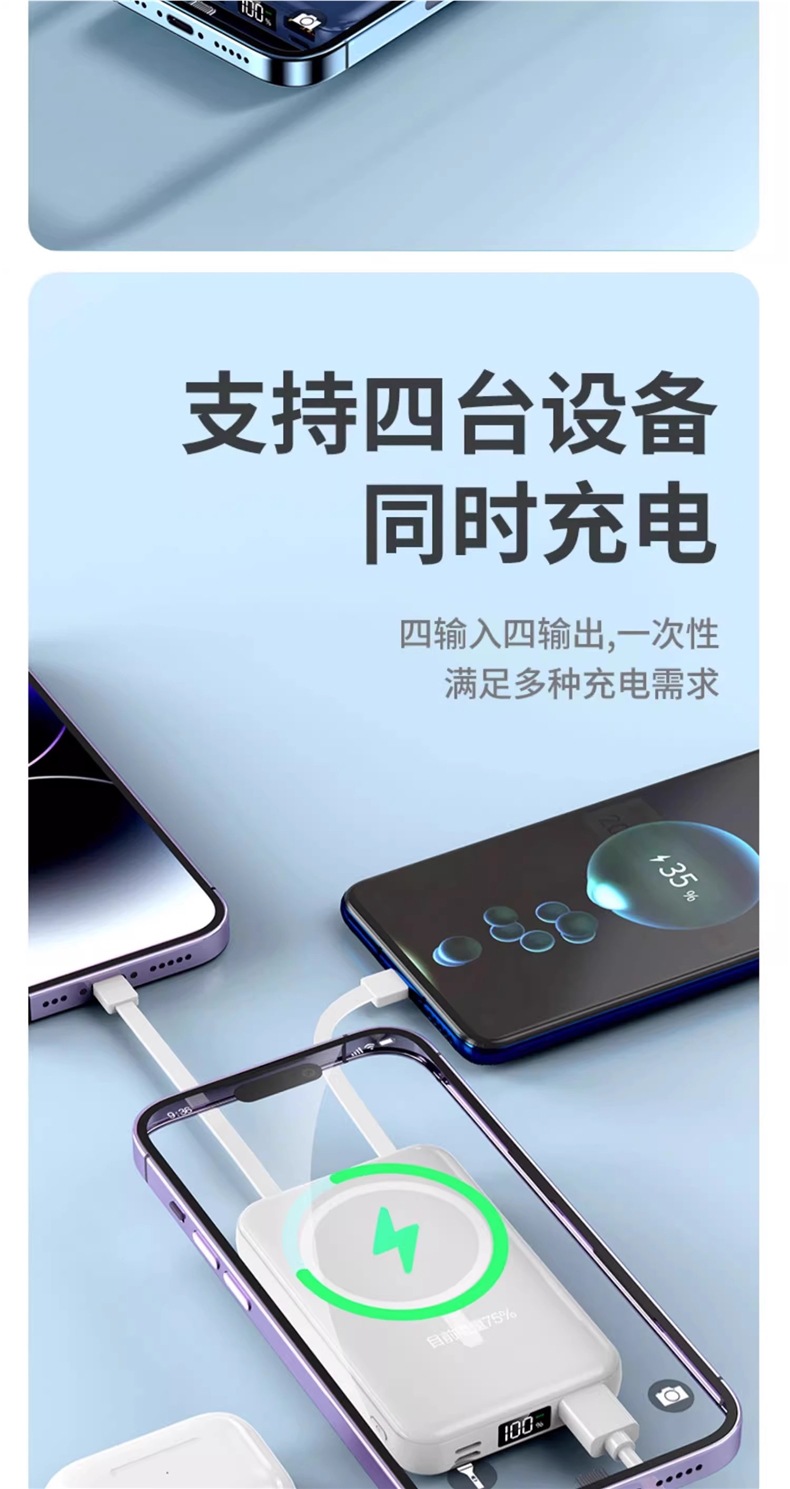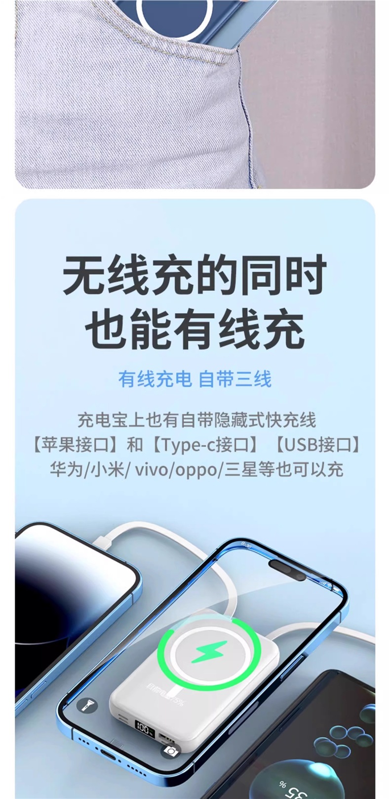 케이블이 내장된 자기 고속 충전 보조베터리 20000mAh 초박형 소형 휴대용 Magsafe 무선 Huawei에 적합스토어 가기