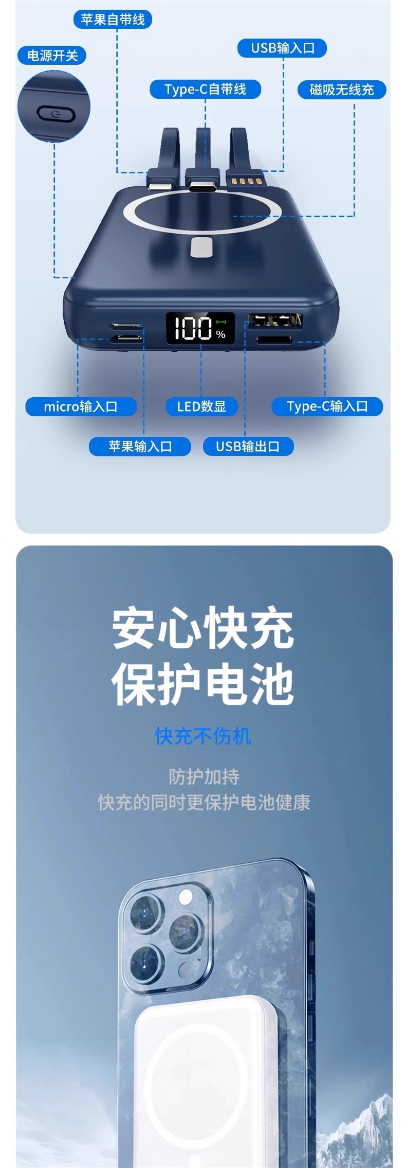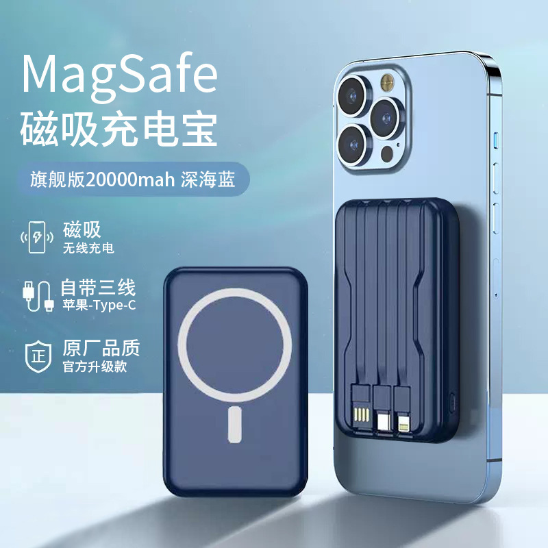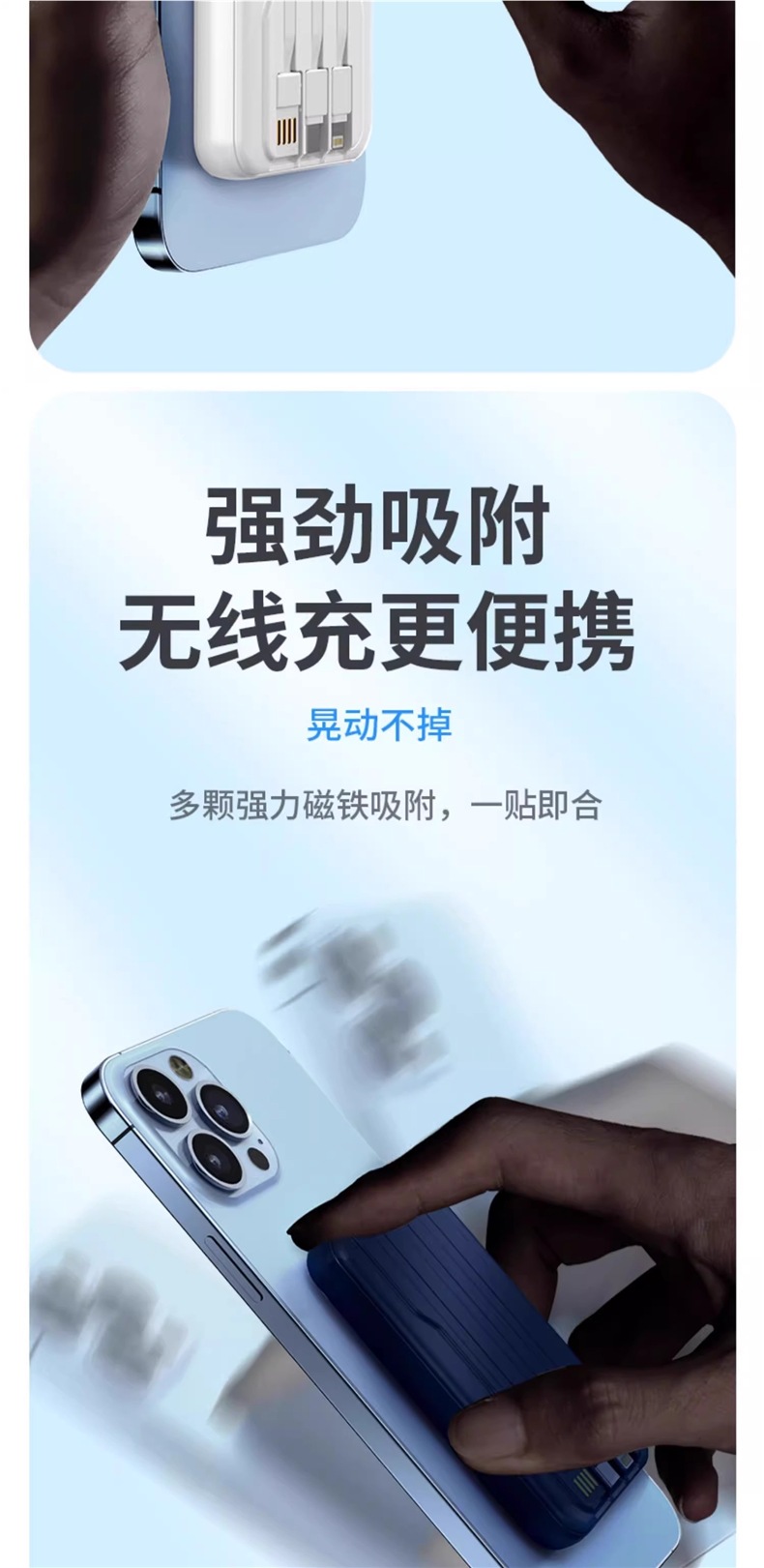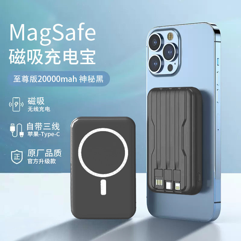 케이블이 내장된 자기 고속 충전 보조베터리 20000mAh 초박형 소형 휴대용 Magsafe 무선 Huawei에 적합스토어 가기