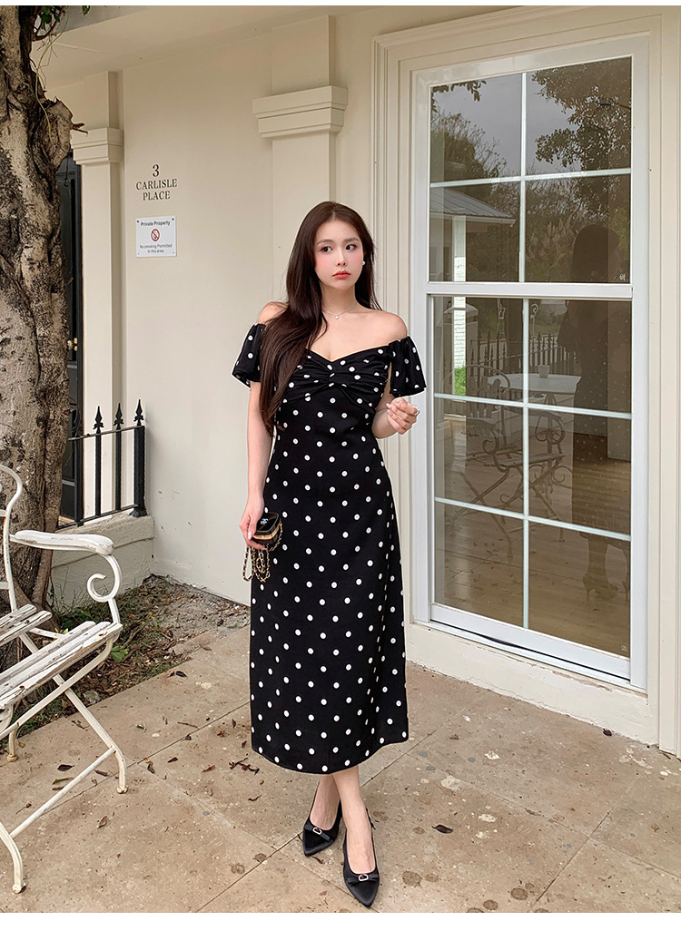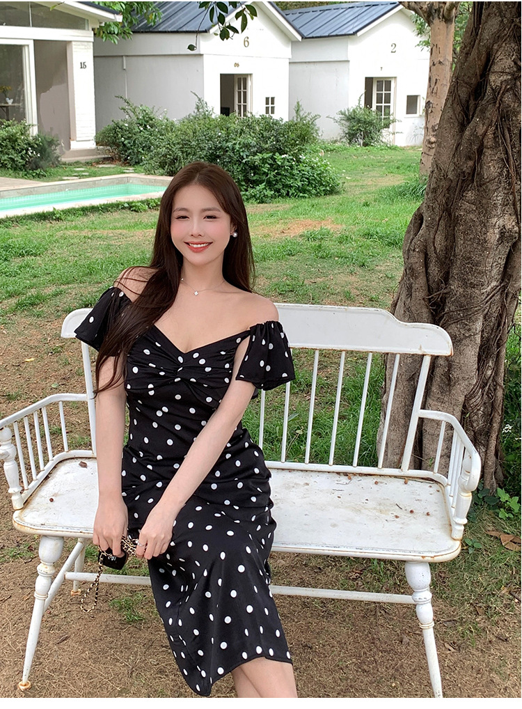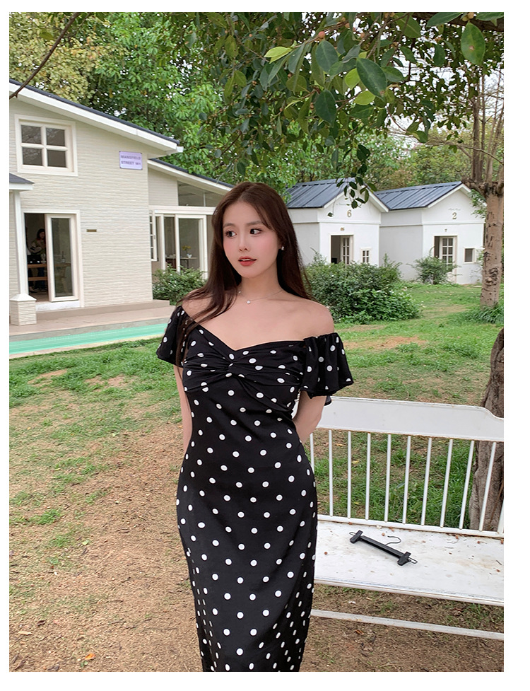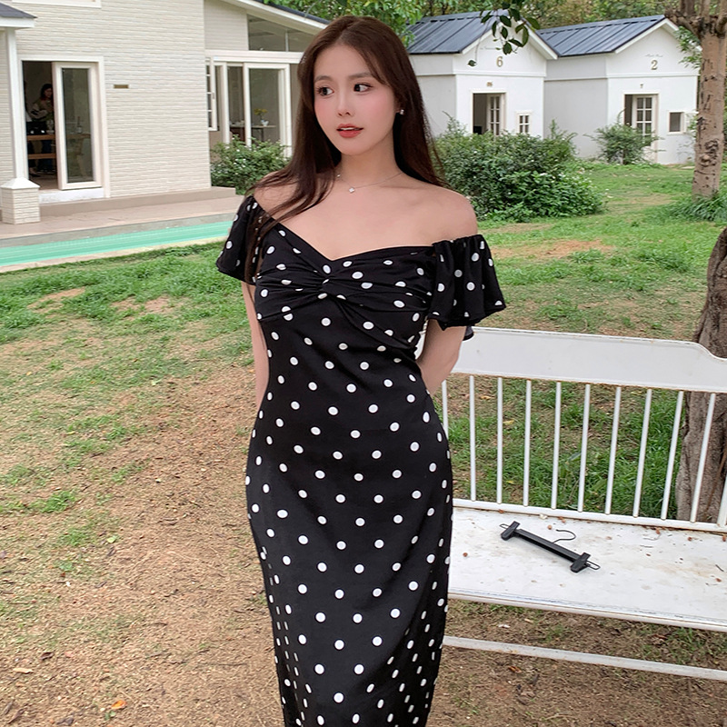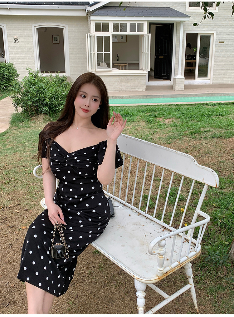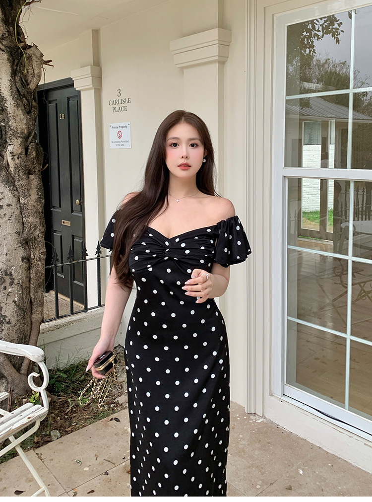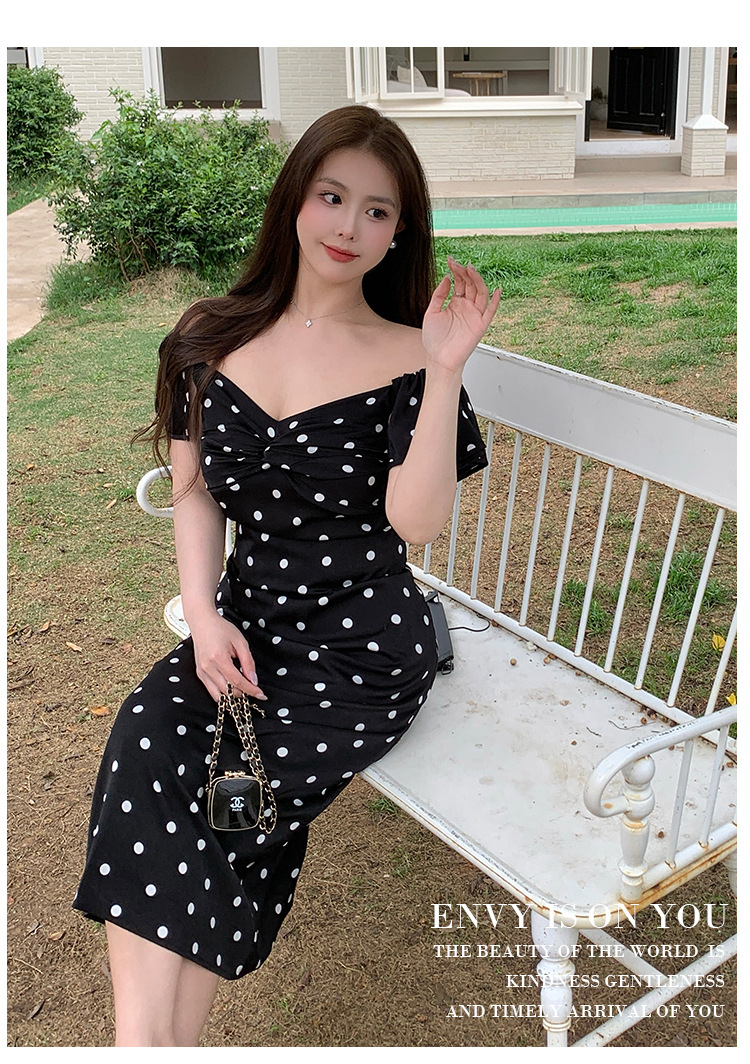 플러스 사이즈 여성 하이 엔드 착용 프렌치 레트로 우아한 블랙 폴로 도트 튜브 최고의 생일 원피스 원피스 2032