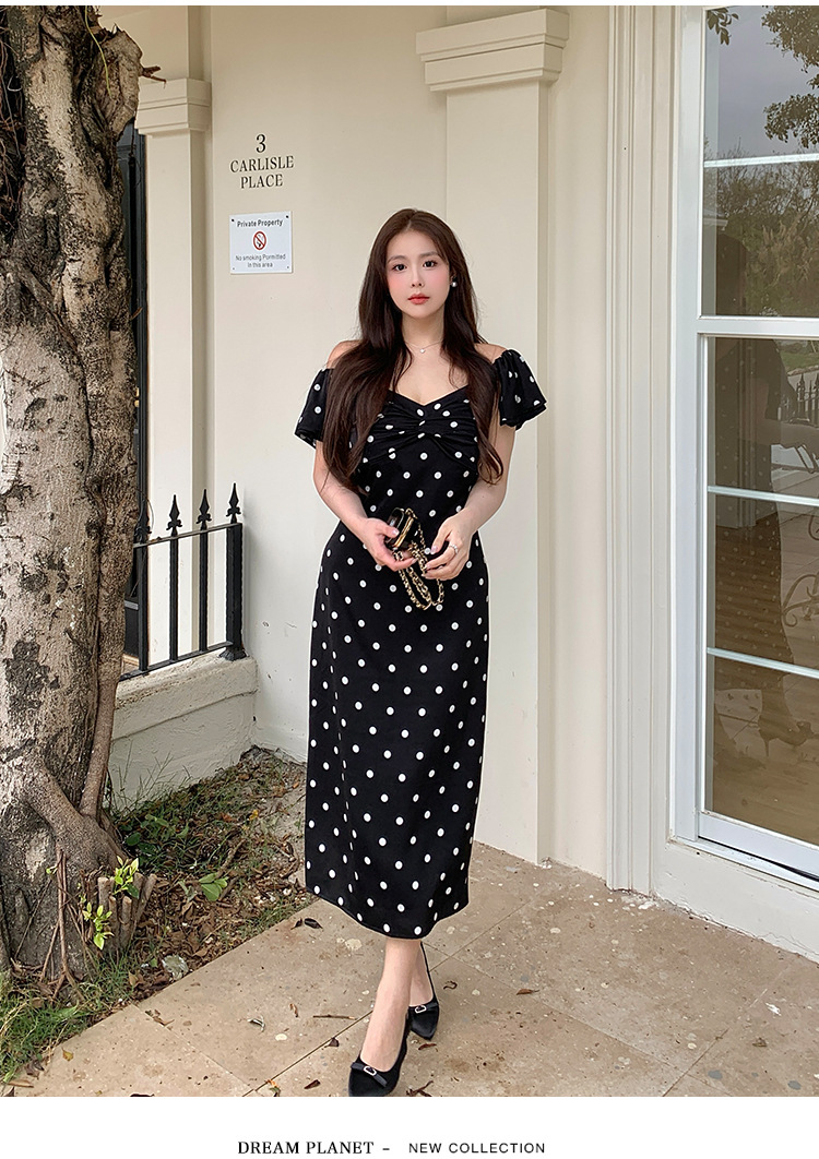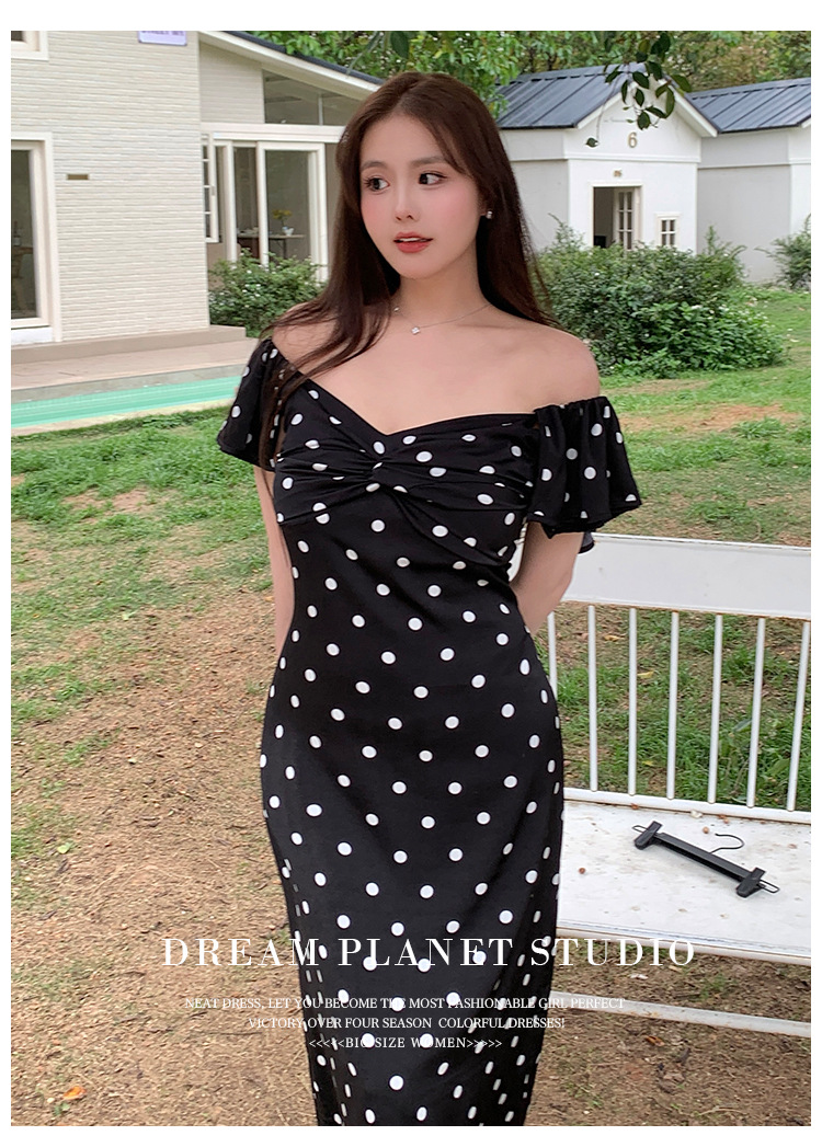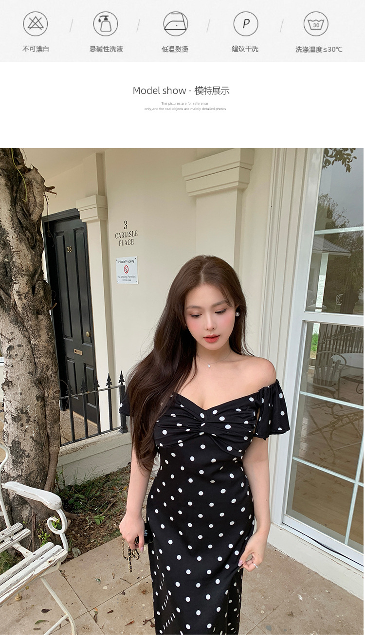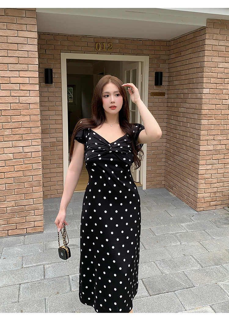 플러스 사이즈 여성 하이 엔드 착용 프렌치 레트로 우아한 블랙 폴로 도트 튜브 최고의 생일 원피스 원피스 2032스토어 가기