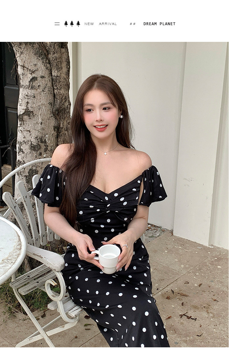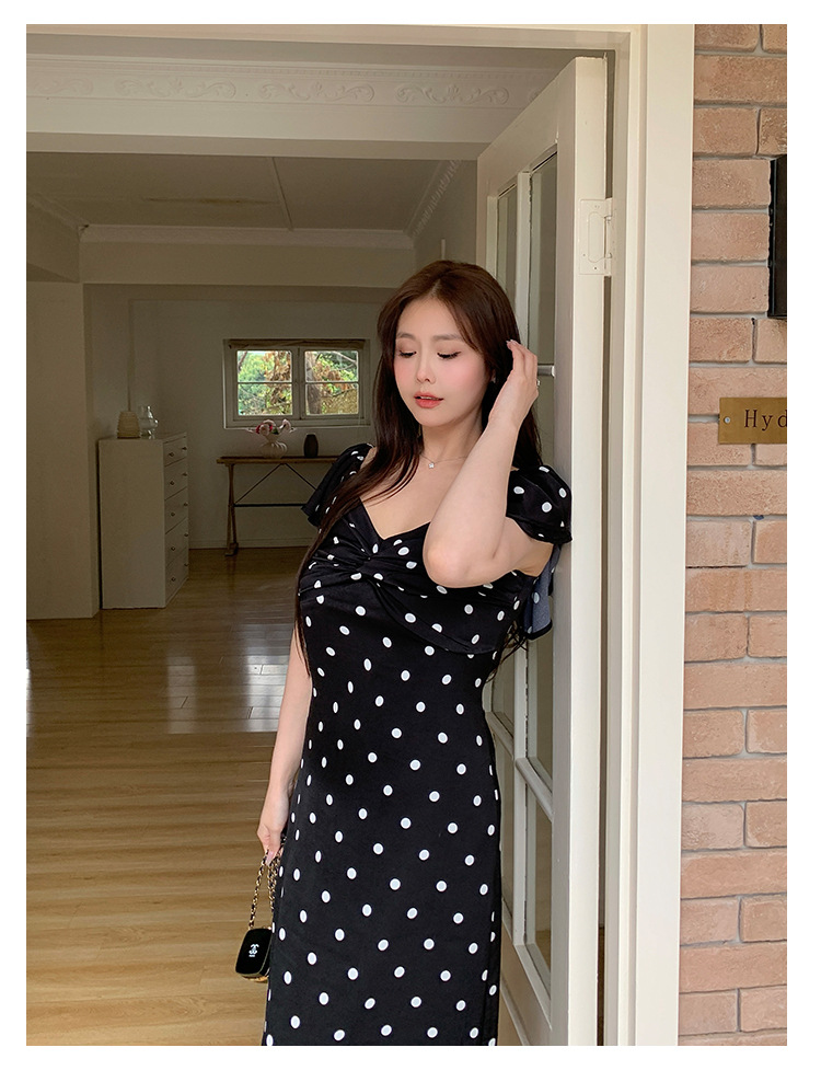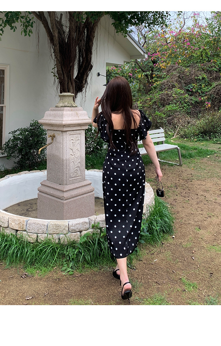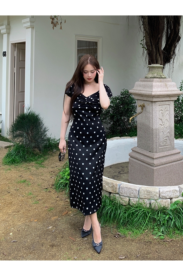 플러스 사이즈 여성 하이 엔드 착용 프렌치 레트로 우아한 블랙 폴로 도트 튜브 최고의 생일 원피스 원피스 2032스토어 가기
