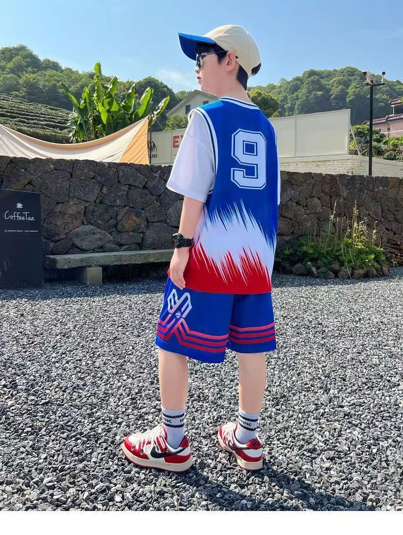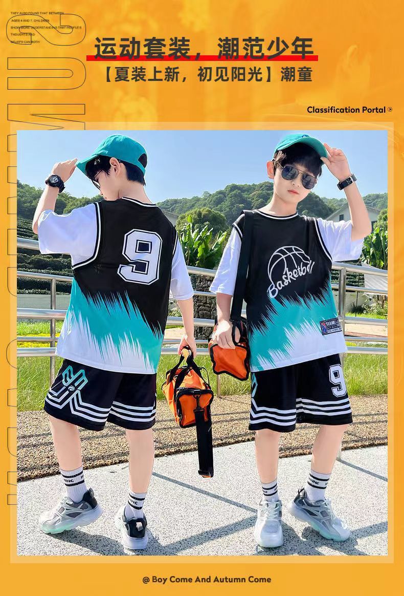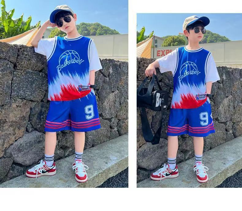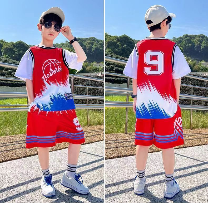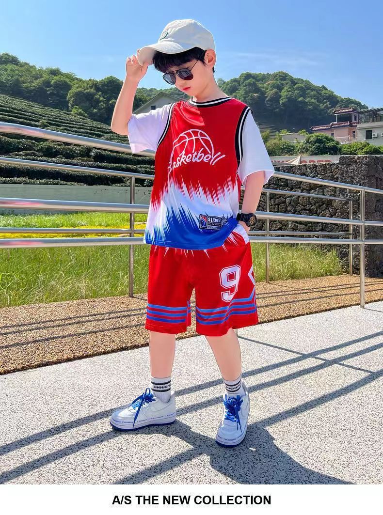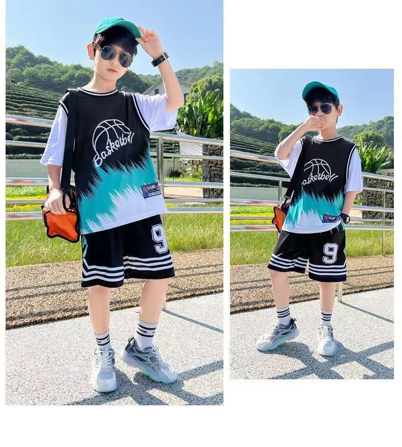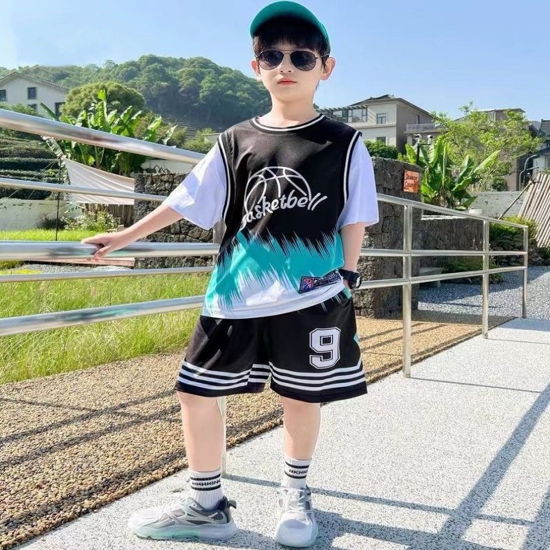소년 농구 옷 빠른 건조 세트 2025 새로운 여름 서양식 소년 여름 반팔 어린이 스포츠 저지스토어 가기