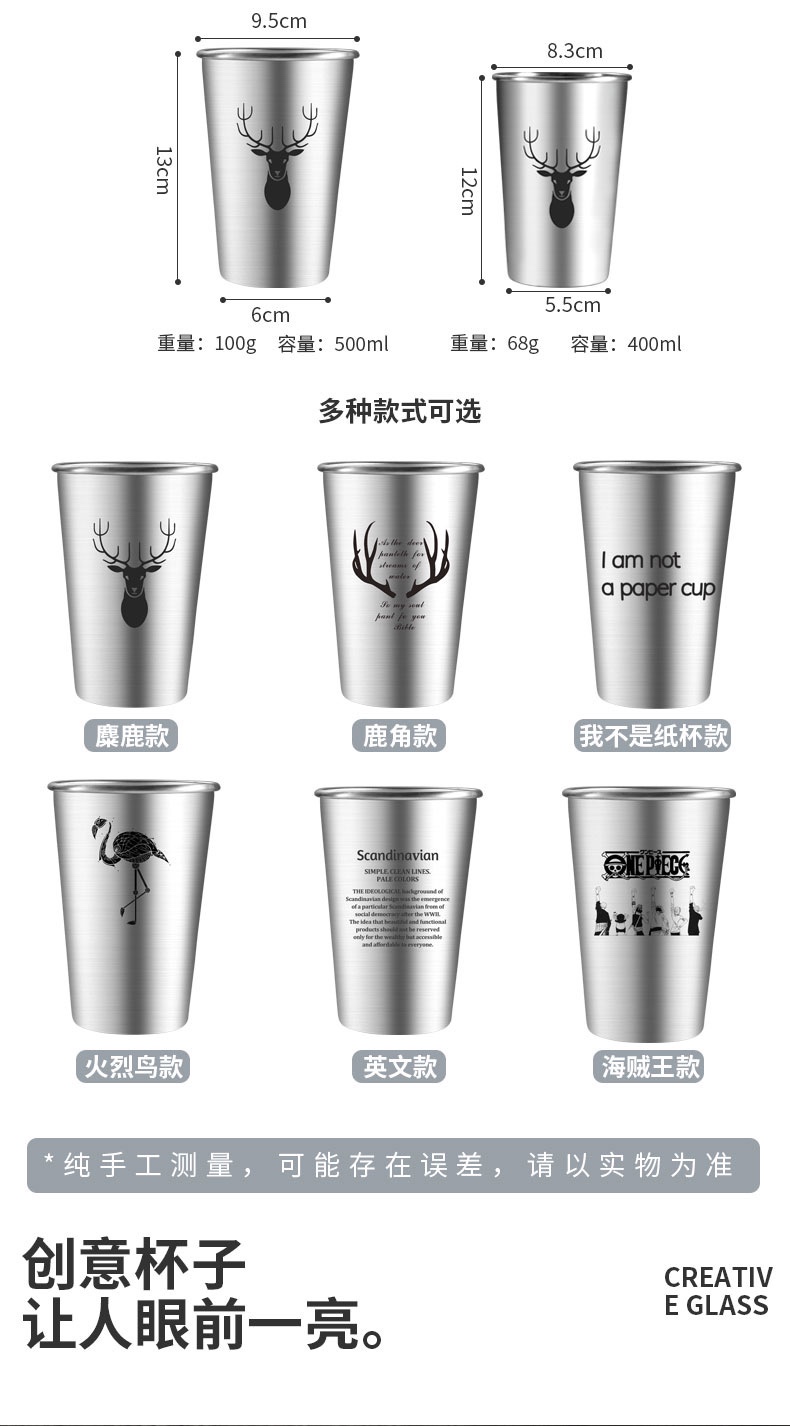 산업용 스타일 304 스테인레스 스틸 컵 맥주 컵 포인트 주스 컵 드롭 방지 컵 프리핸드 컵 커피 차가운 안전스토어 가기