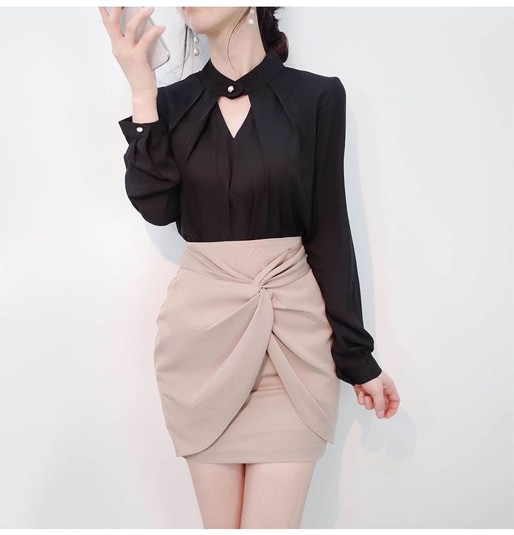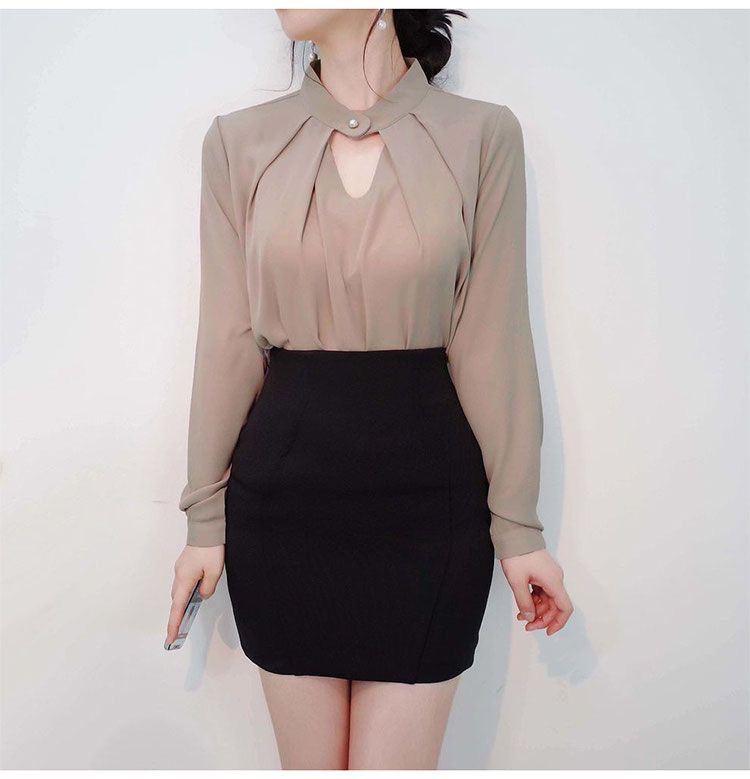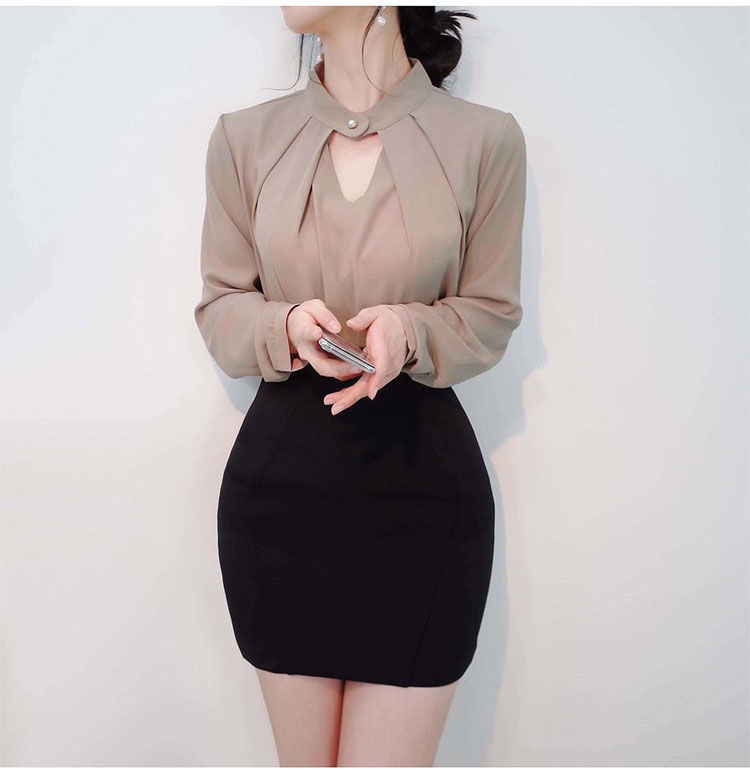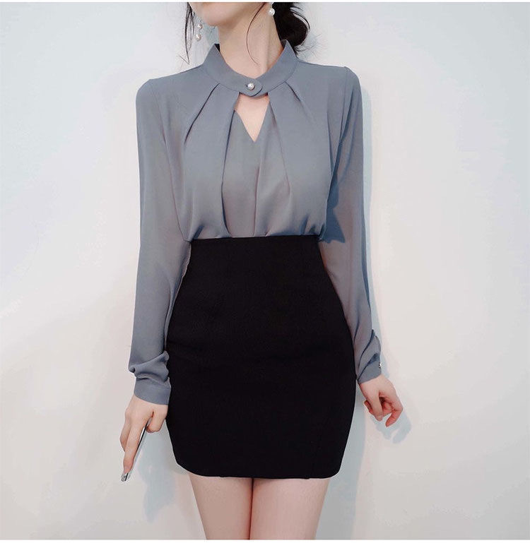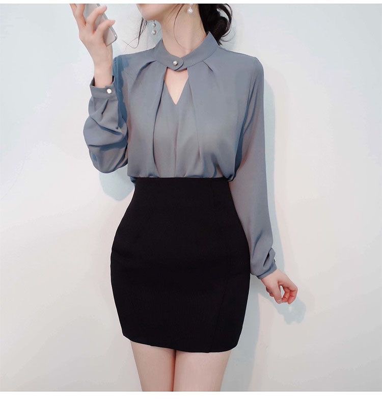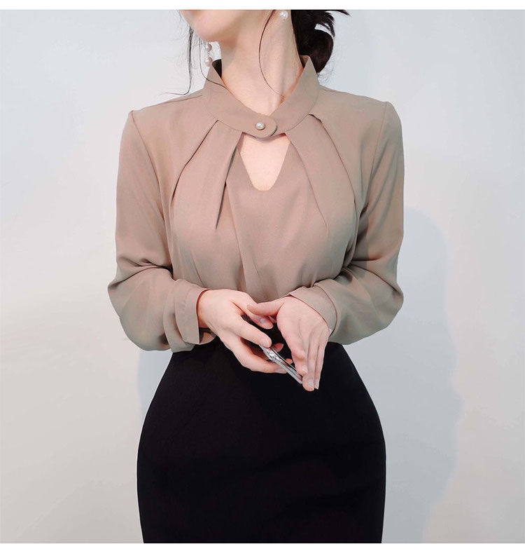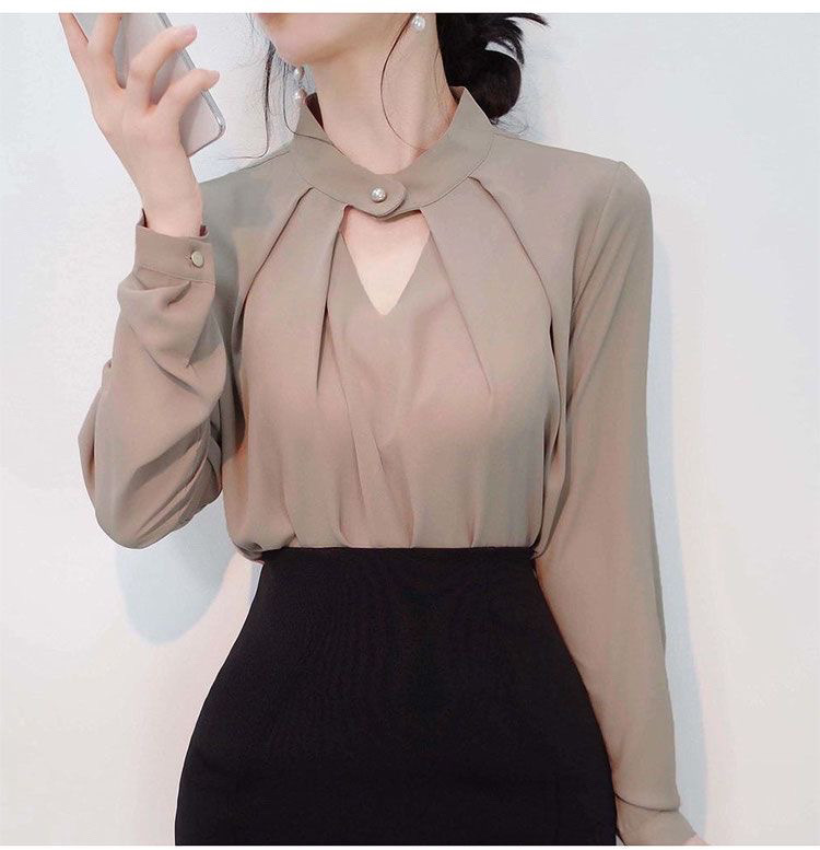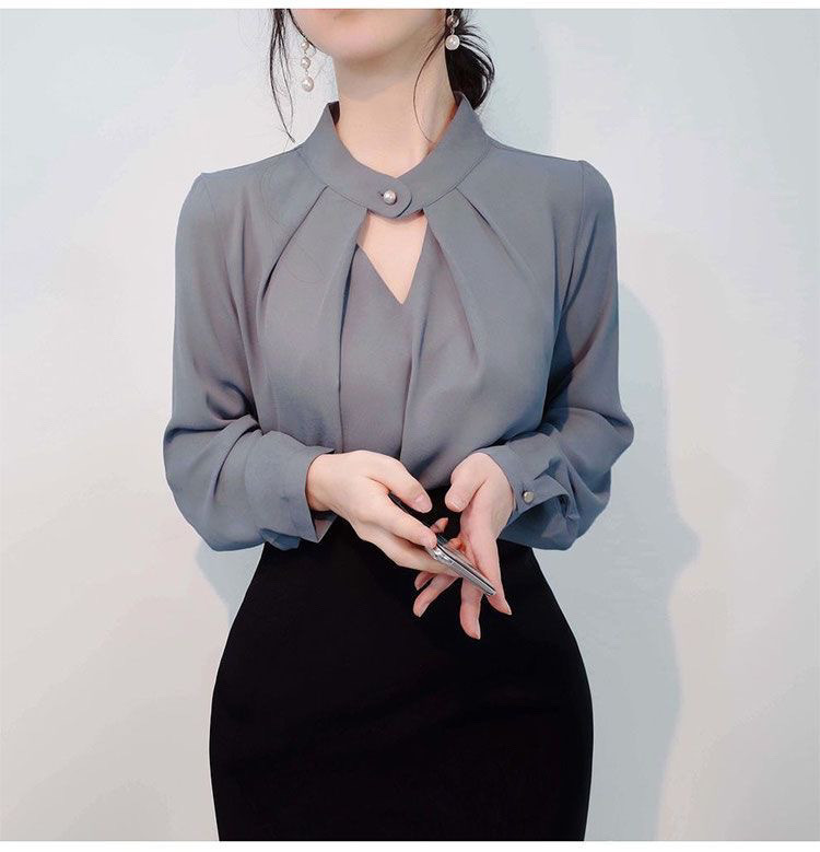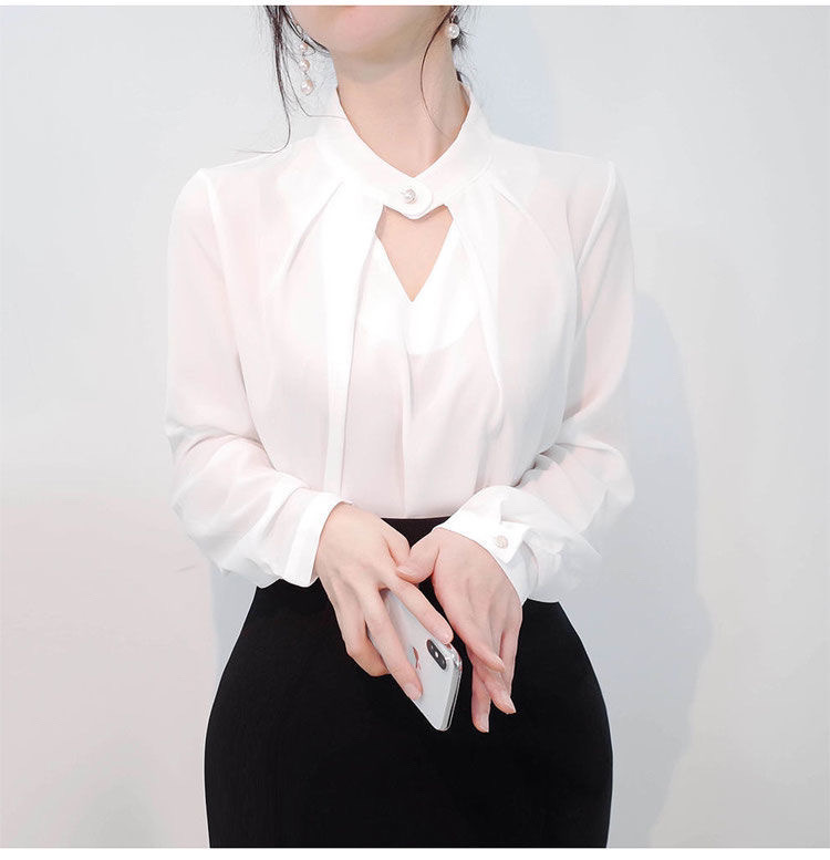 화이트 쉬폰 셔츠 여성용 긴팔 2025 새로운 하이 엔드 웨스턴 스타일 전문 OL 풀오버 우아한 V 넥 탑 여름