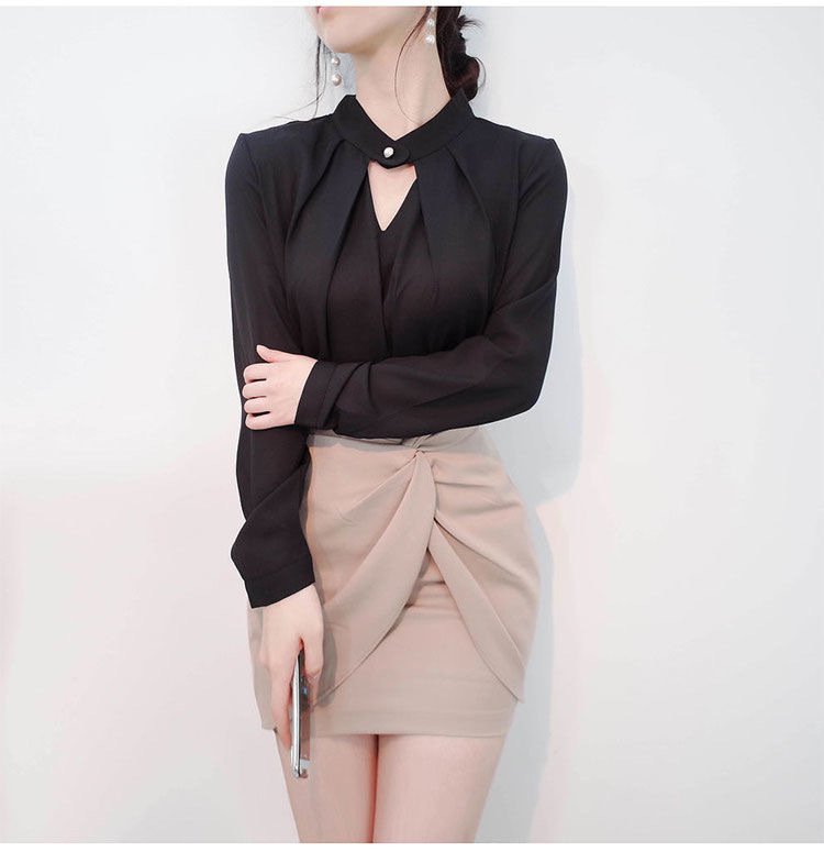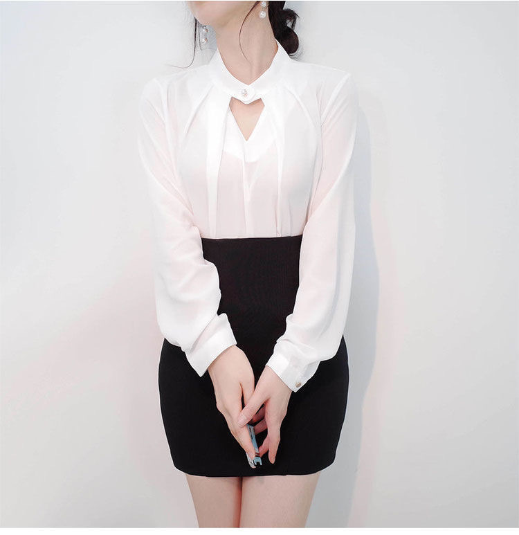 화이트 쉬폰 셔츠 여성용 긴팔 2025 새로운 하이 엔드 웨스턴 스타일 전문 OL 풀오버 우아한 V 넥 탑 여름스토어 가기