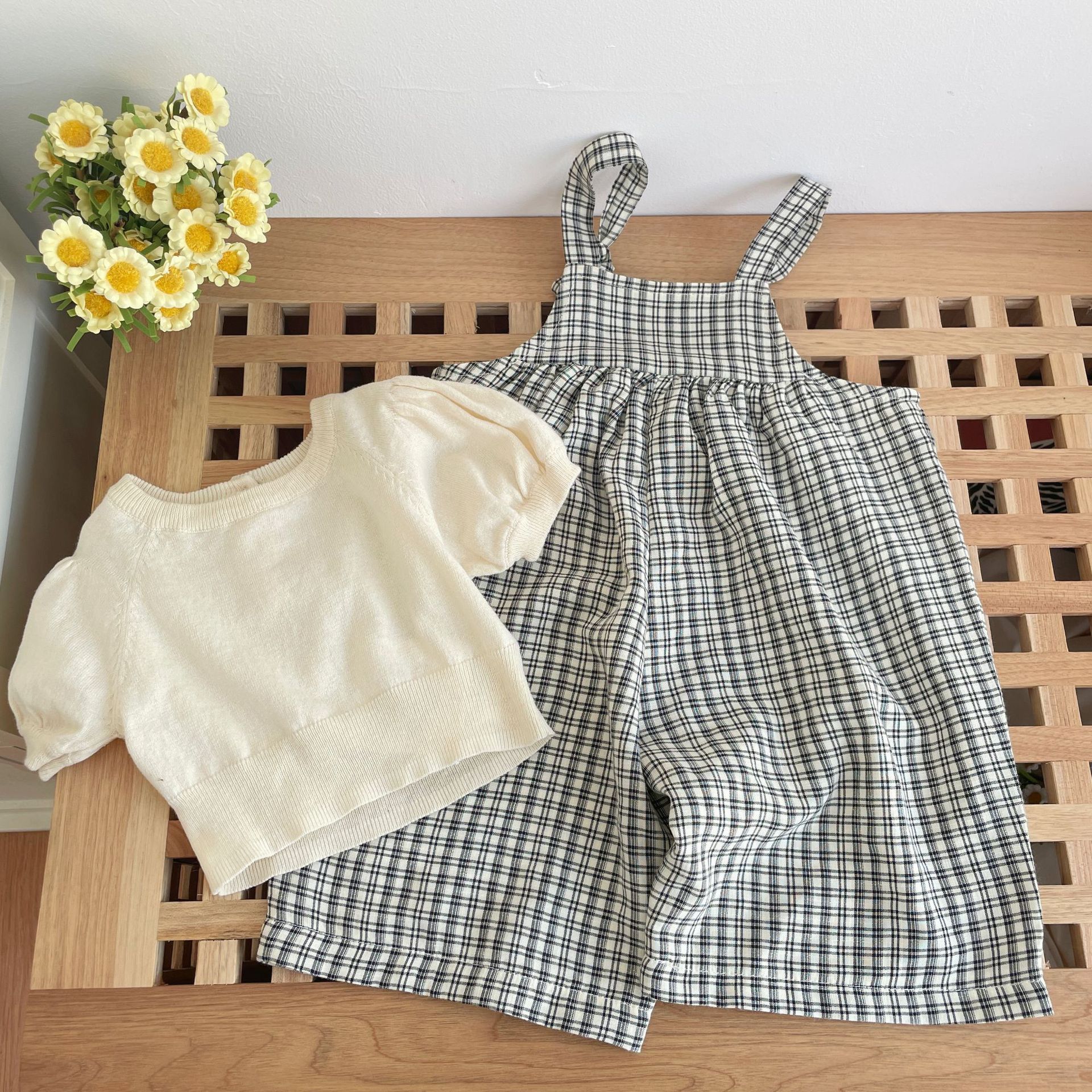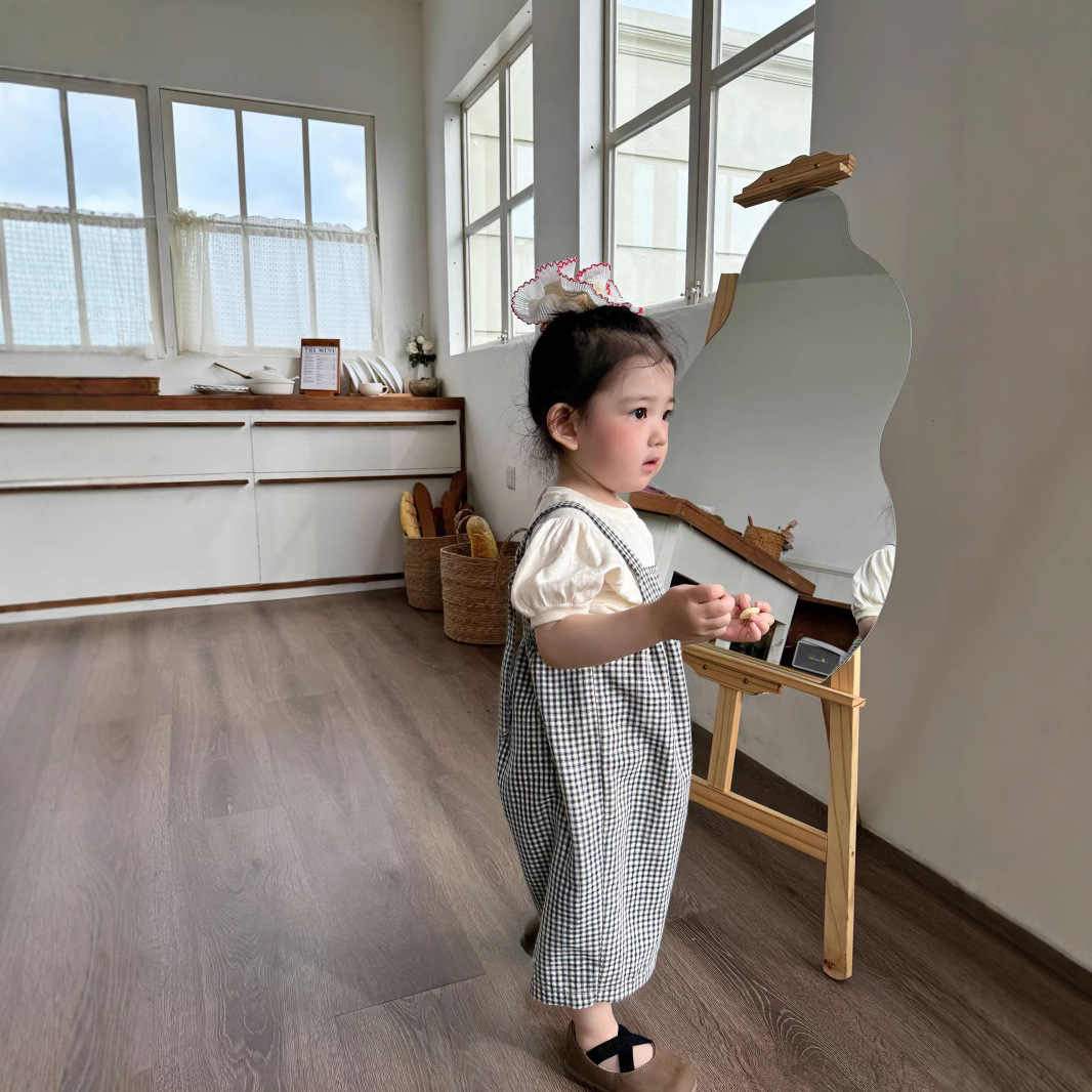 여름 스타일 2025 새로운 정장 소녀를위한 귀여운 외출복 한국 스타일 외국 스타일 바닥 셔츠 작업복 투피스 세트스토어 가기