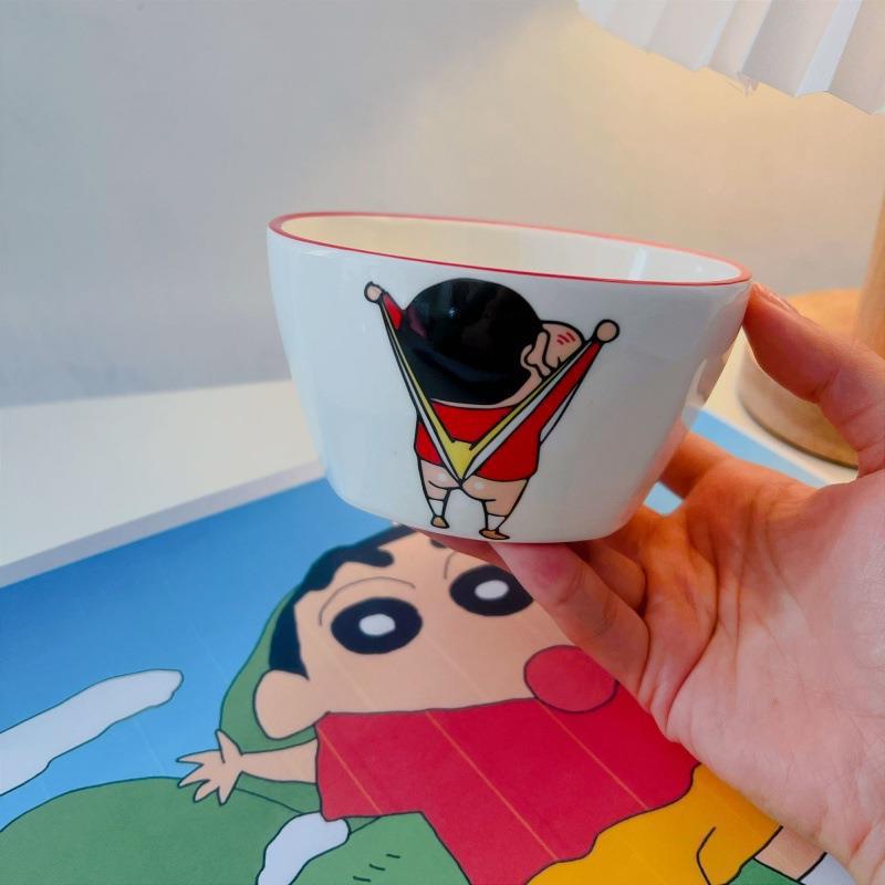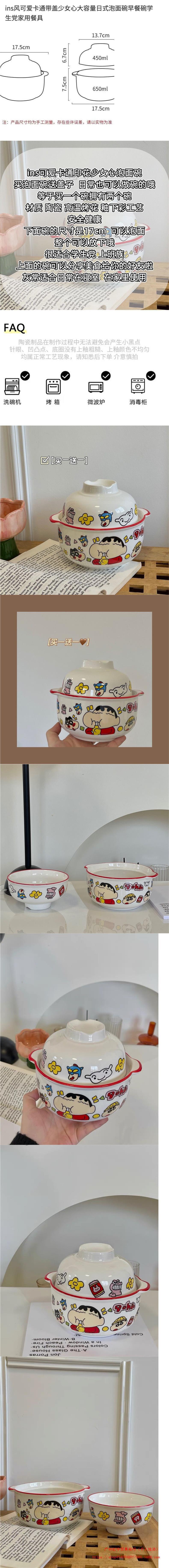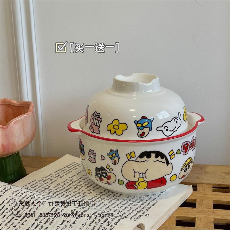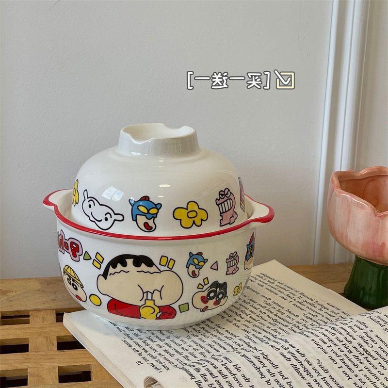 Crayon Xiaoxin 공동 디자인 인스턴트 국수 그릇 뚜껑 바이노럴 세라믹 국수 수프 그릇 가정용 식기 일본 만화 잘 생겼습니다.스토어 가기