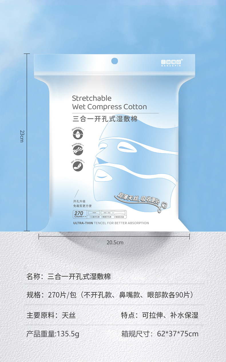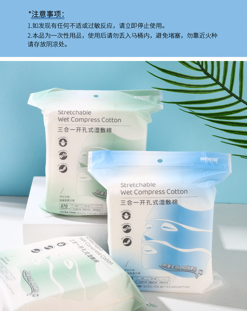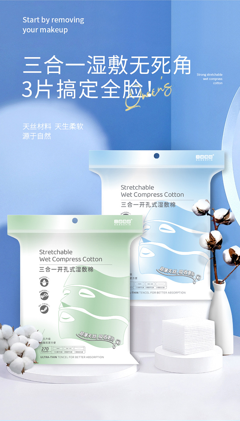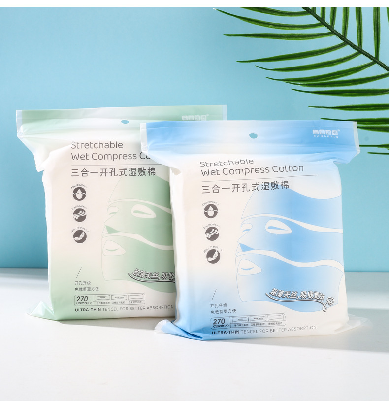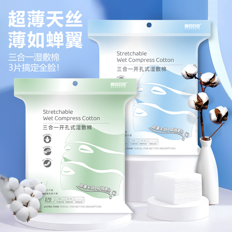3 대 1 오픈 홀 웨트 압축 면 스트레치 가능 시트 얼굴 응용 프로그램 특수 코 및 눈 열기 젖은 메이크업 코튼 여성용